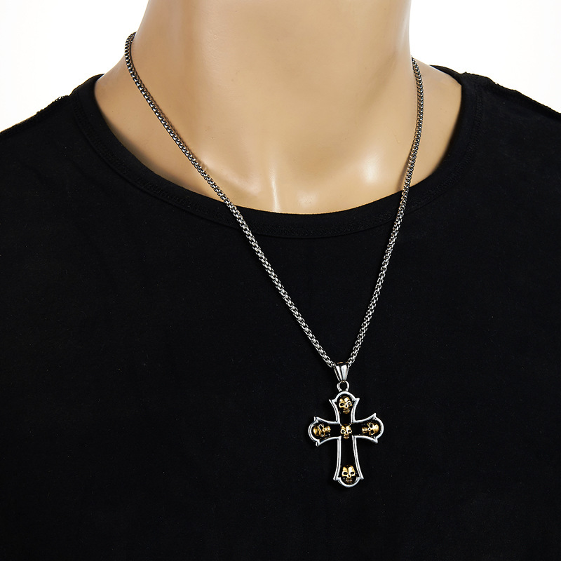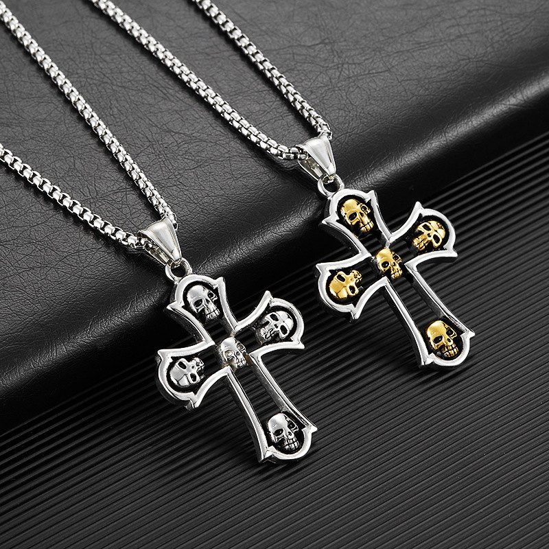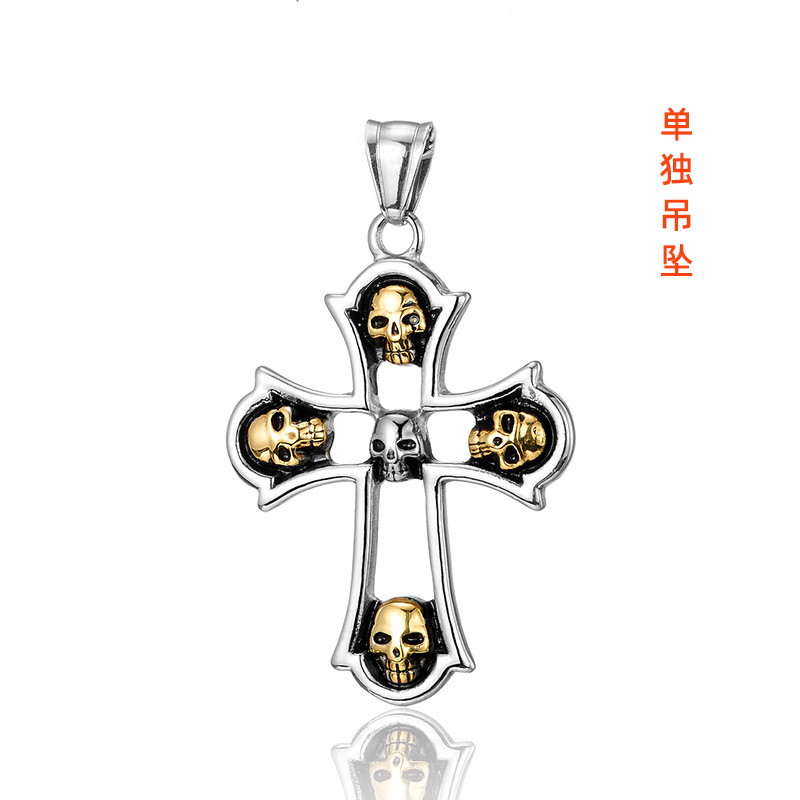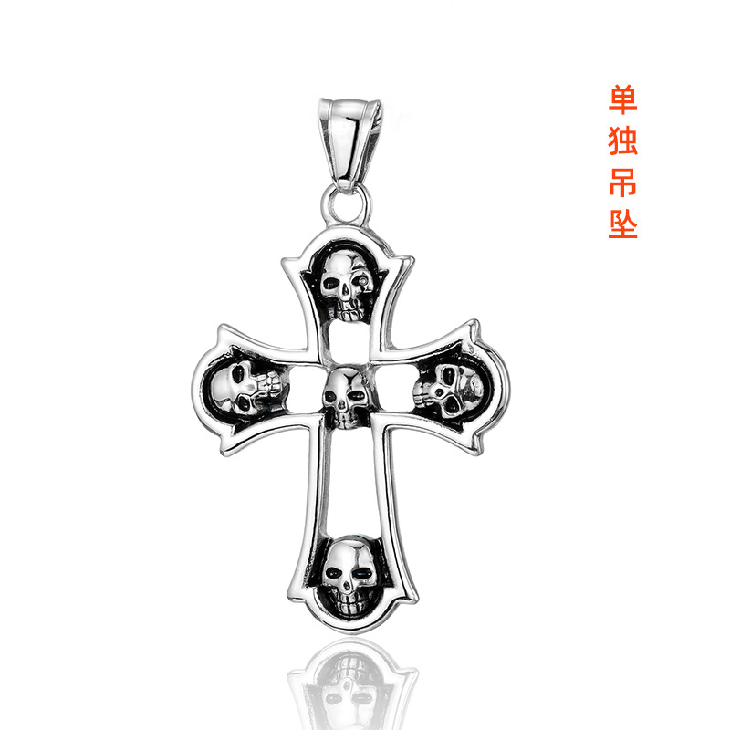 欧美骷髅鬼头十字架不锈钢吊坠项链 男士嘻哈霸气钛钢项链厂家批