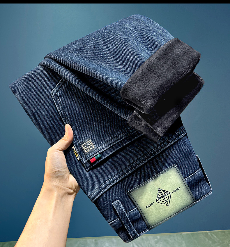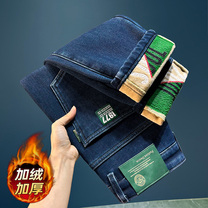 男士牛仔裤2023秋冬加绒加厚新款韩版潮牌休闲直筒男式长裤男装