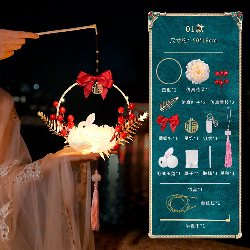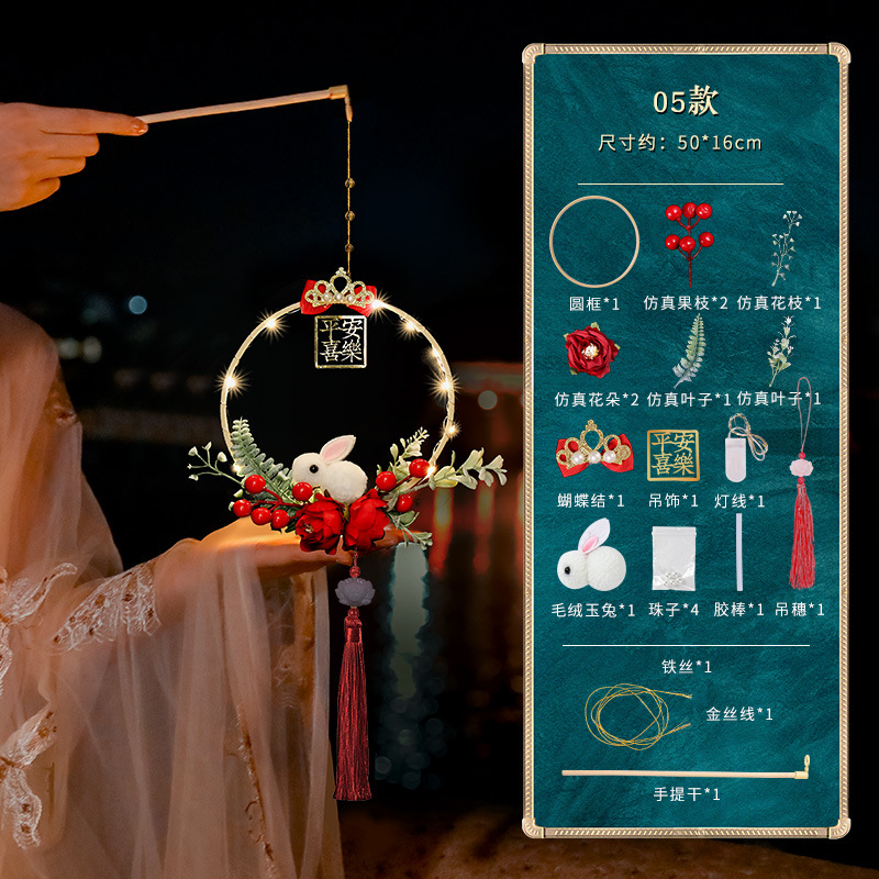 春节古风儿童昙花手提发光灯笼diy手工材料包中式发光玉兔荷花灯