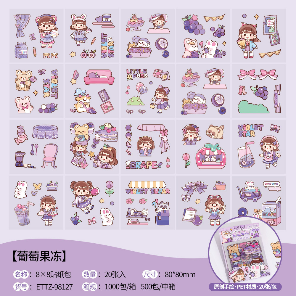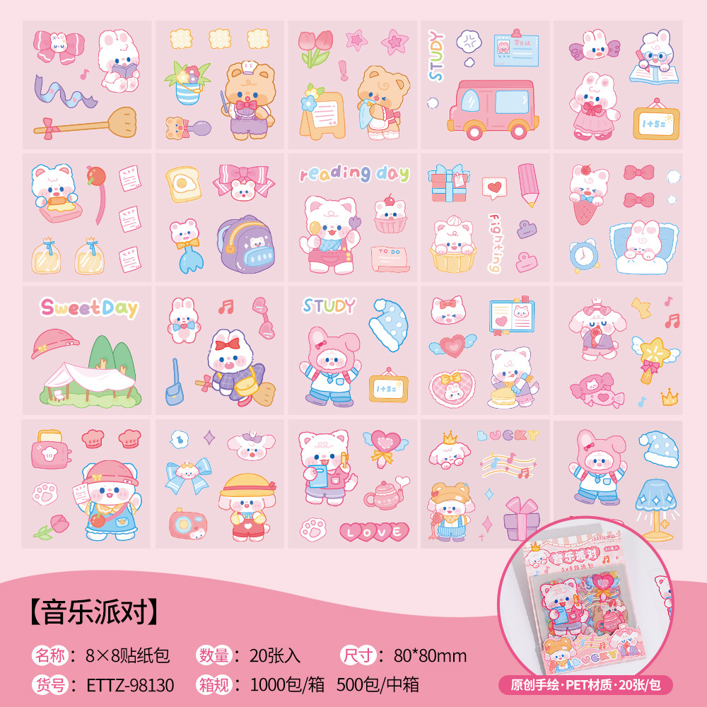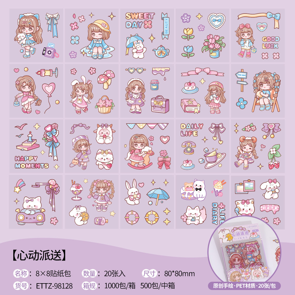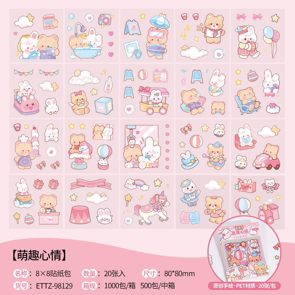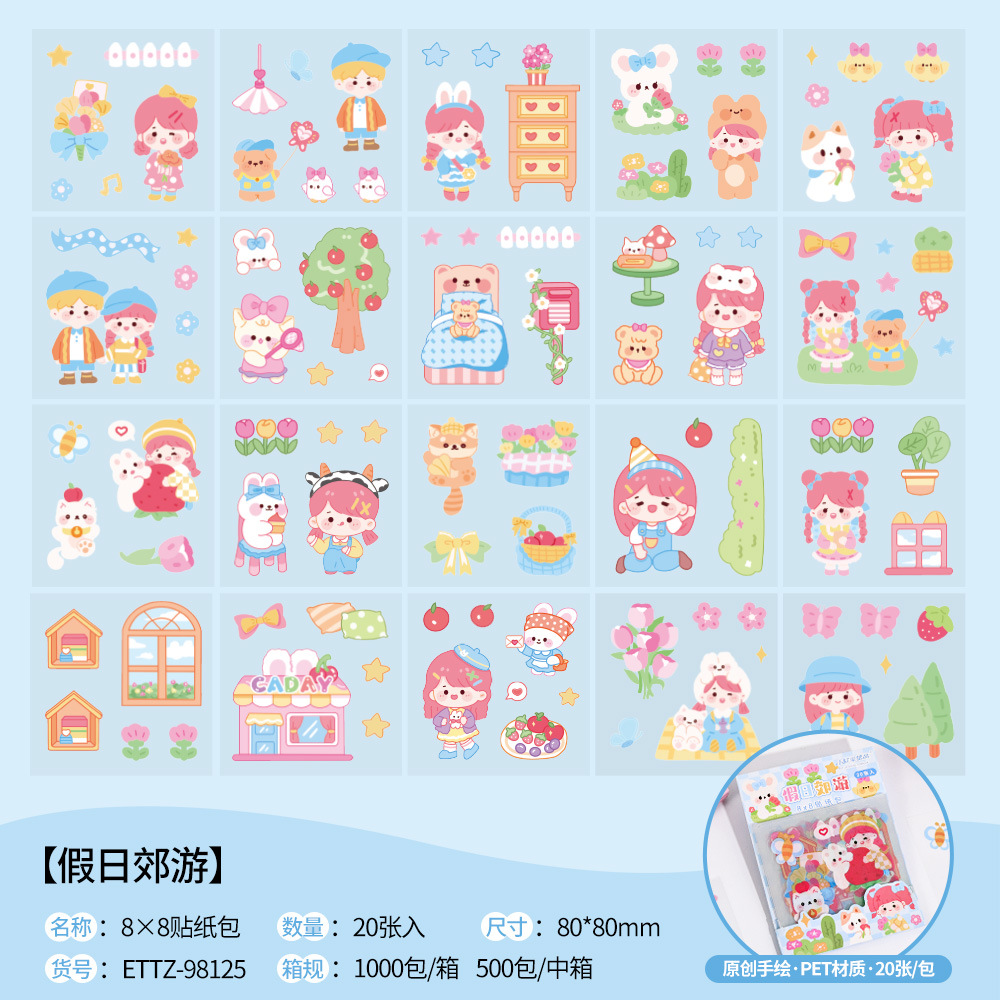 20入张pet卡通可爱贴纸包ins手账素材贴画防水手帐贴纸批发