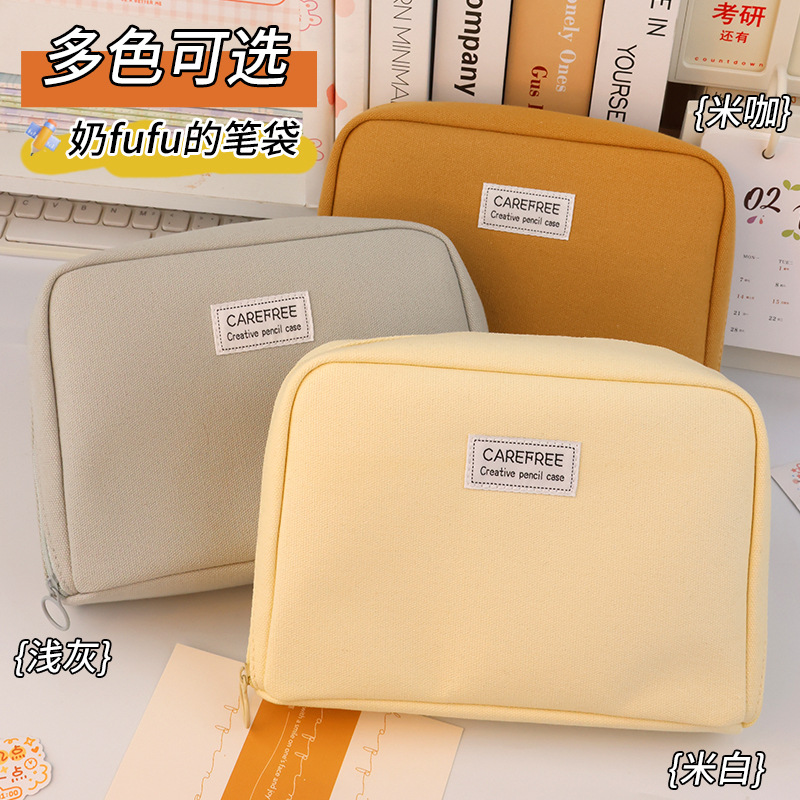 风高颜值帆布笔袋大容量简约透明文具袋学生小众铅笔盒