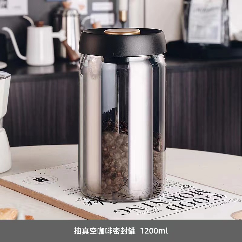 透明高硼硅玻璃真空密封罐多规格家用咖啡豆储存罐一键防潮收纳罐