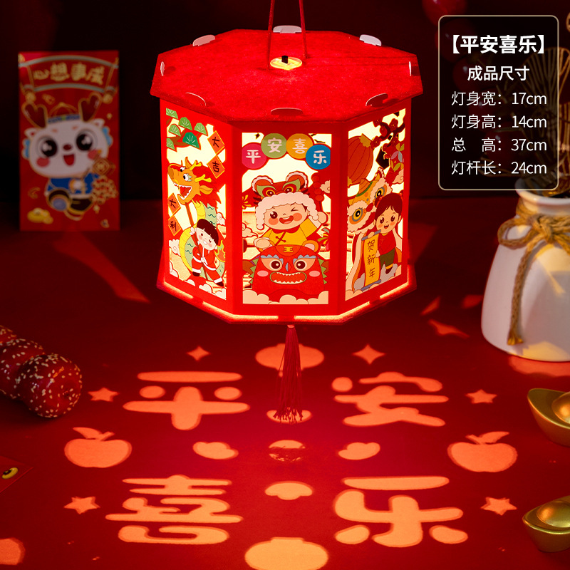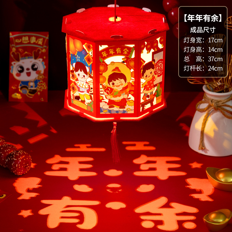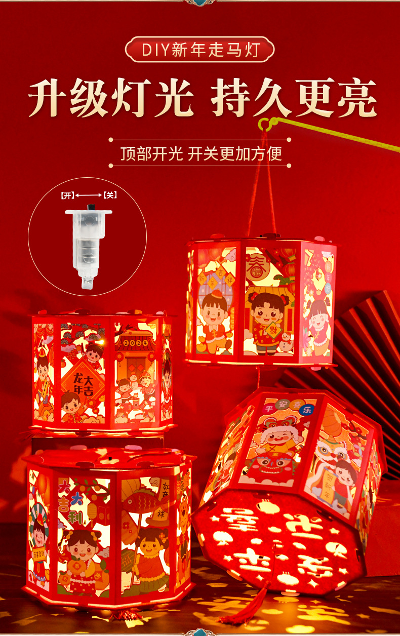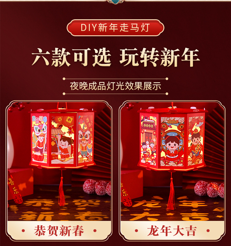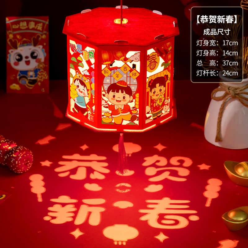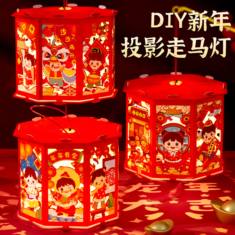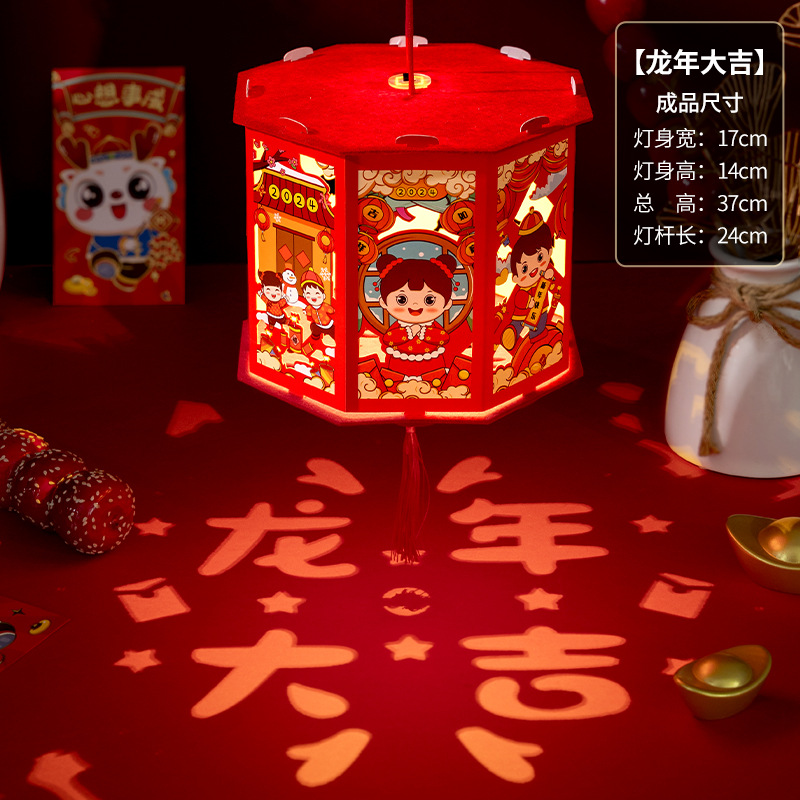 春节灯笼儿童手工diy龙年投影走马灯幼儿园手提发光新年灯笼批发