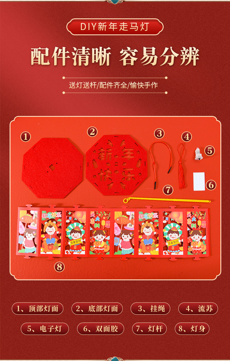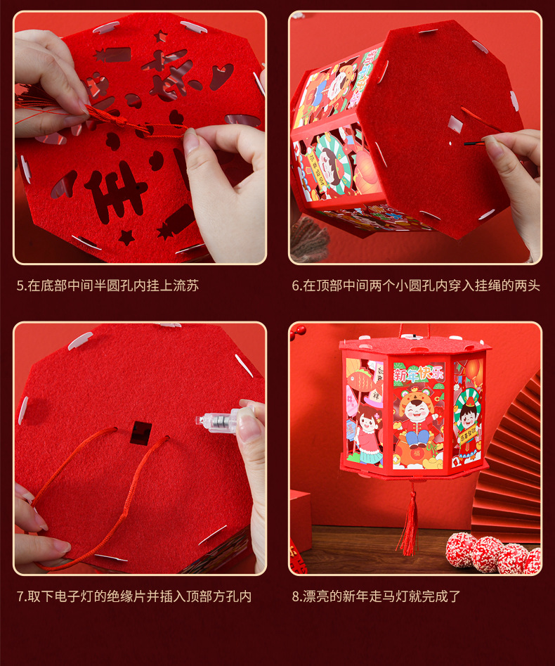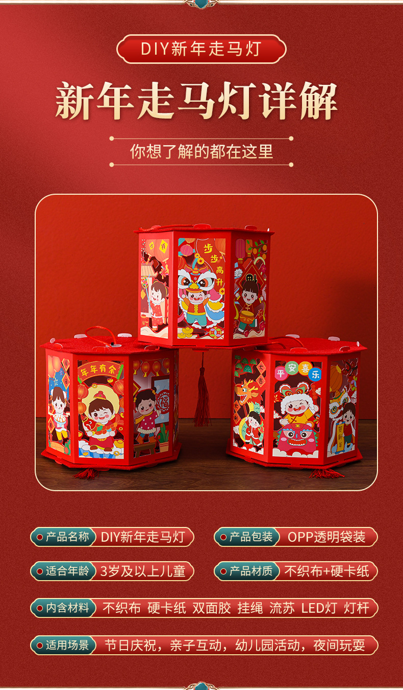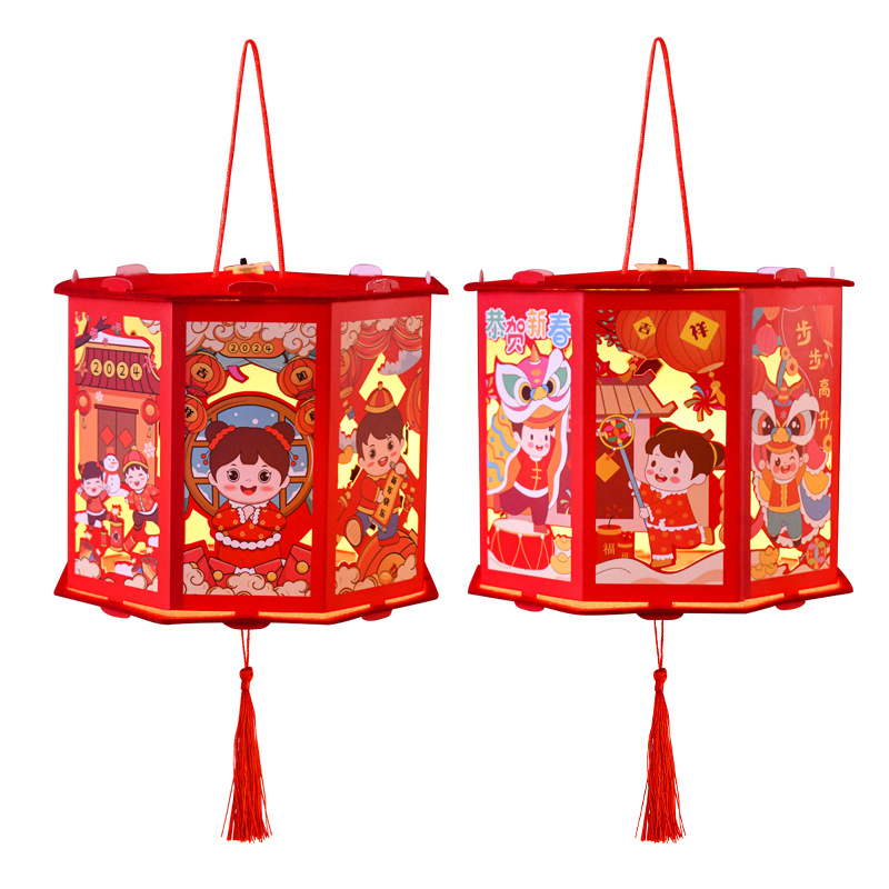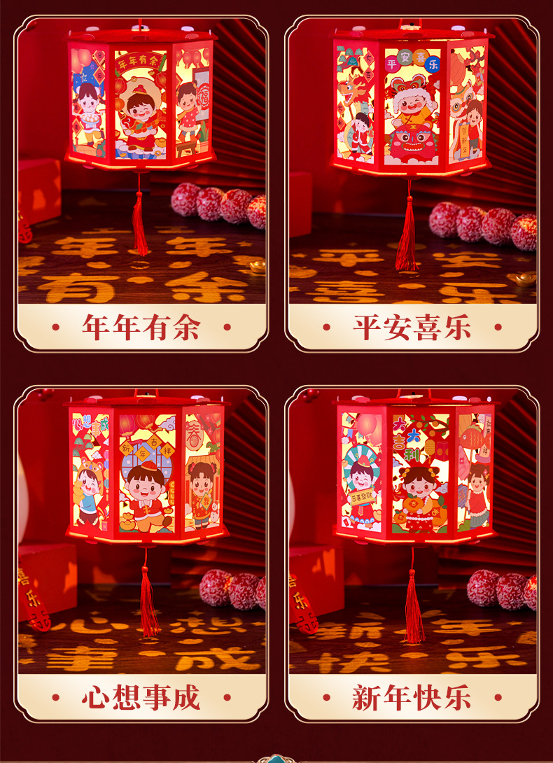 春节灯笼儿童手工diy龙年投影走马灯幼儿园手提发光新年灯笼批发