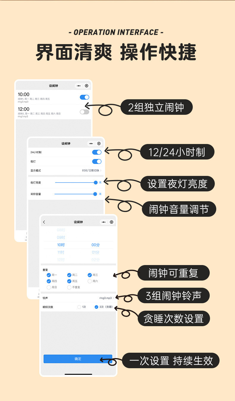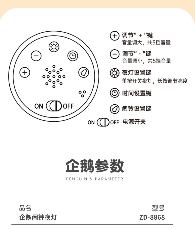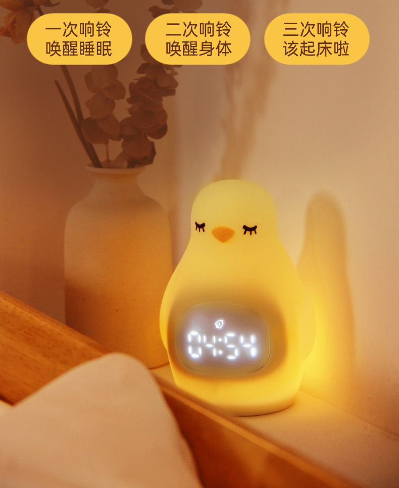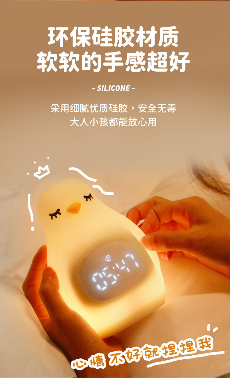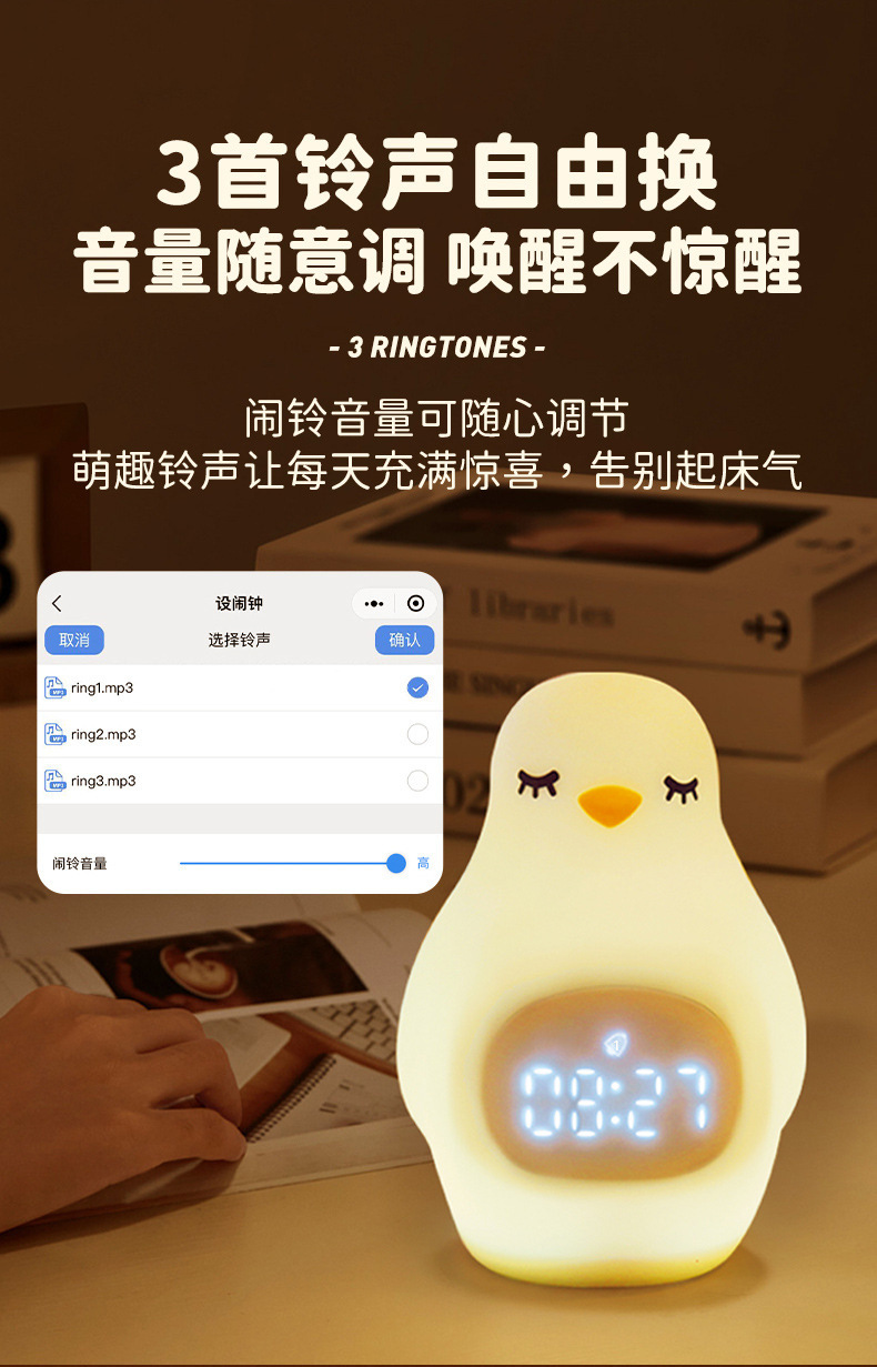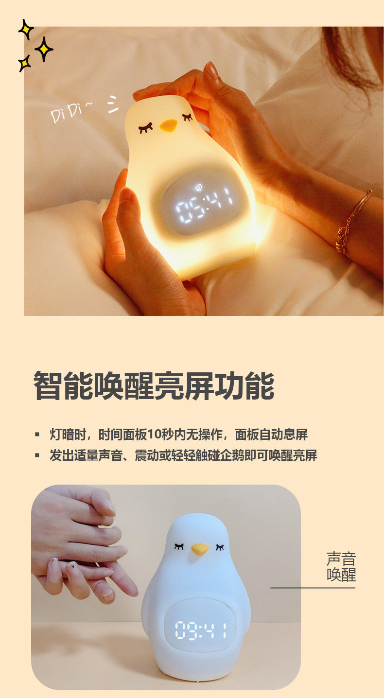 外贸专供企鹅闹钟夜灯小程序多功能电子闹钟床头迷你卡通闹钟