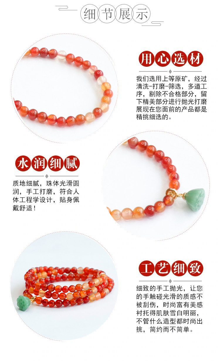 眷钰天然红玛瑙多圈手串莲蓬流苏diy玉髓手链珠宝直播代发2050507