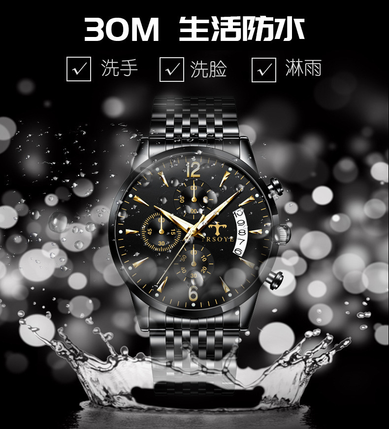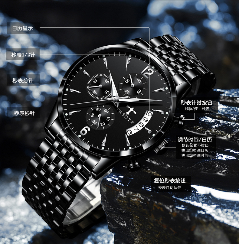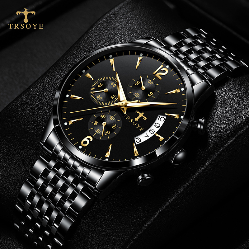 2022新款日历指针多功能夜光防水石英表潮流时尚腕表男士运动手表