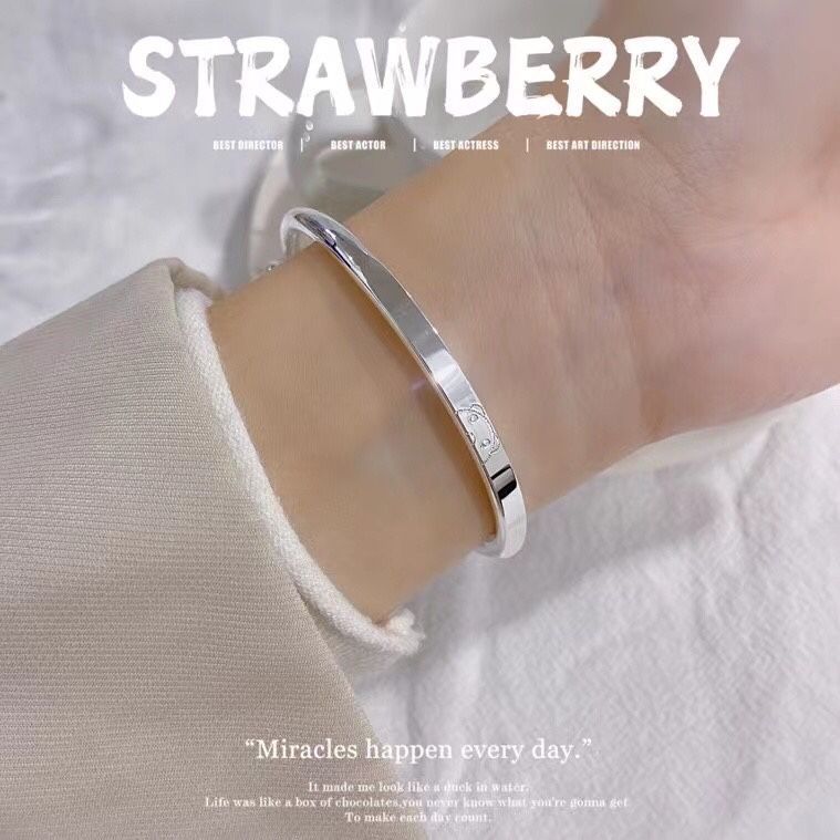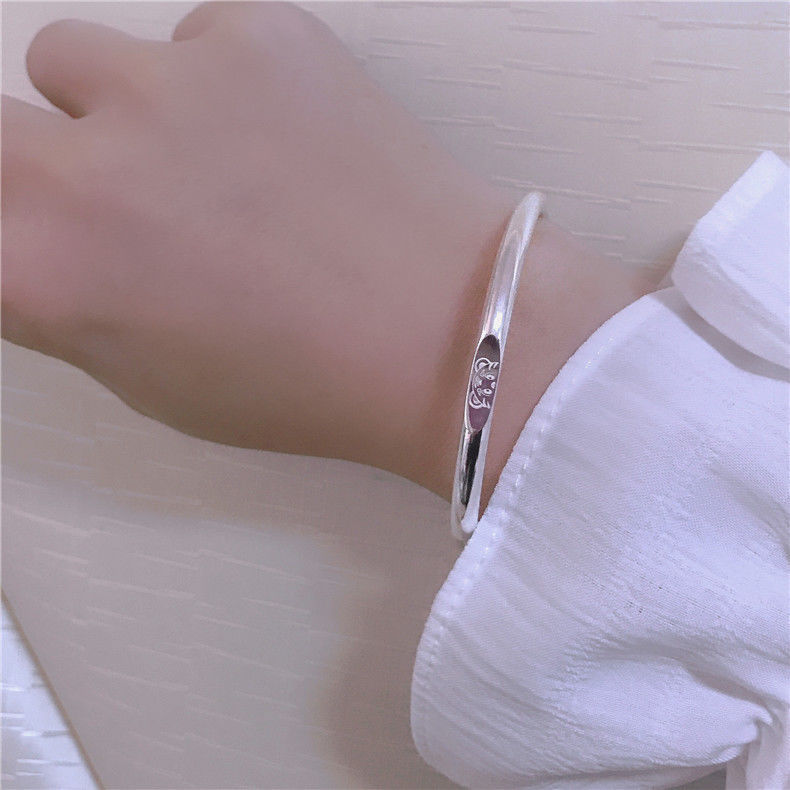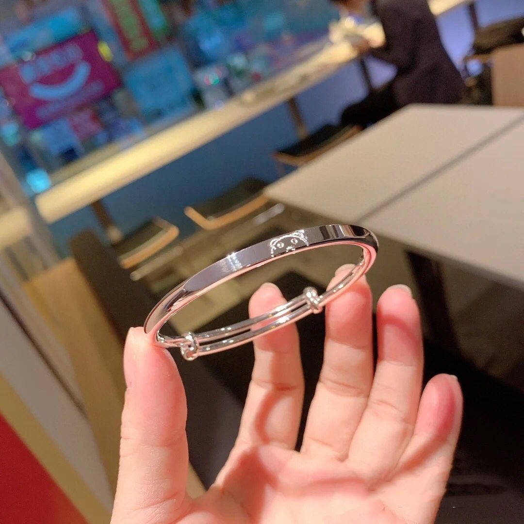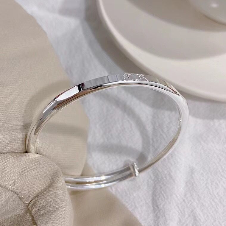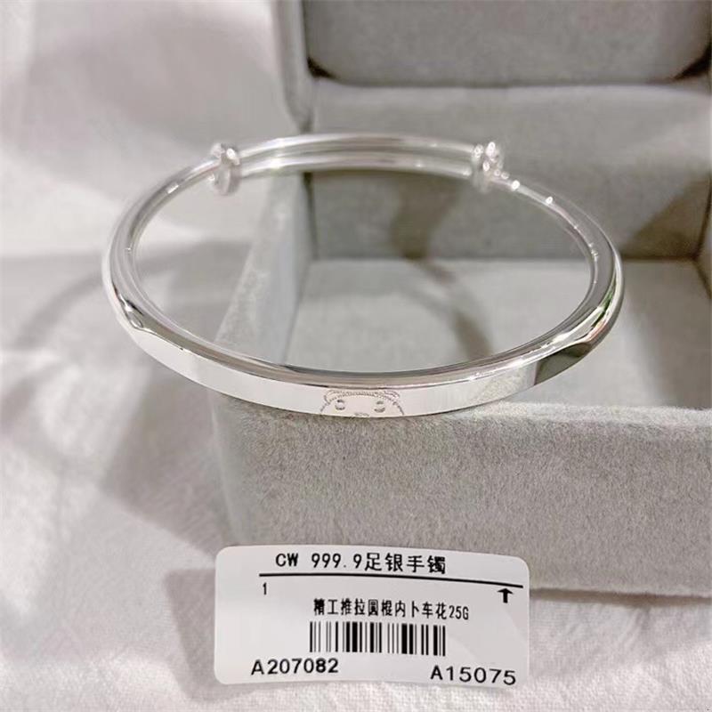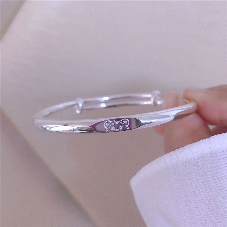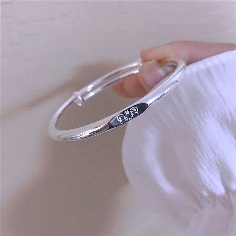 香港s999纯银小熊手镯可爱简约年轻少女款足银实心推拉送女友礼物