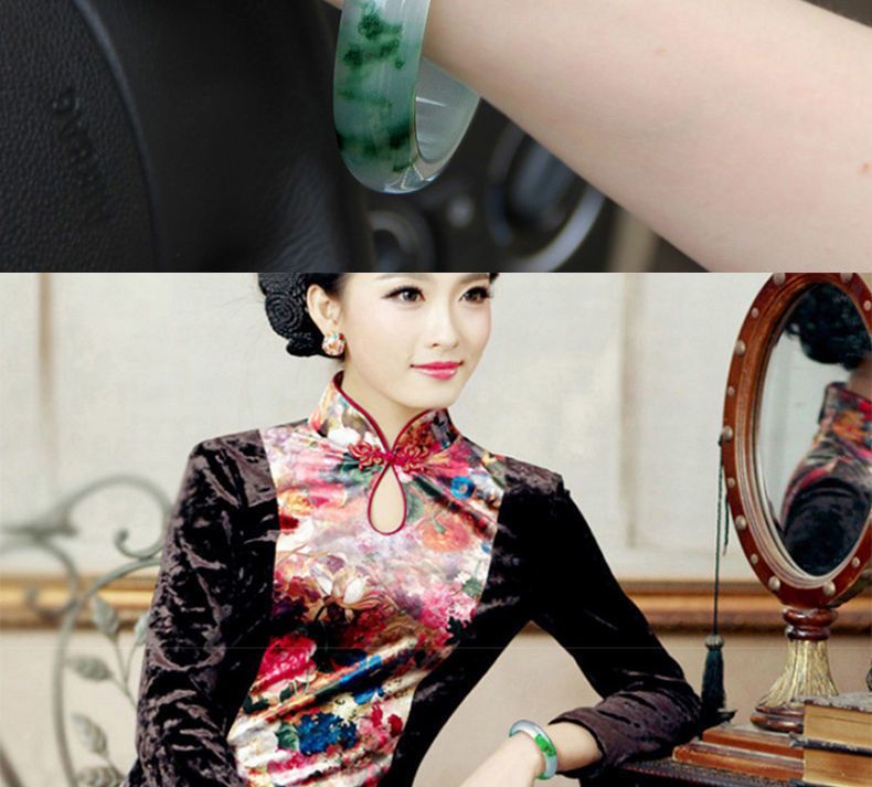 正品天然翡翠色手镯 冰种飘蓝花缅甸a货玉镯子正圈镯飘花玉手镯女
