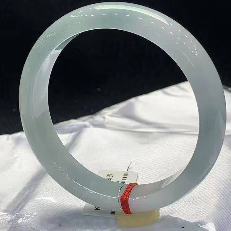缅甸天然翡翠冰种玉手镯女款浅绿色冰透玉镯翡翠色手镯正圈贵妃镯
