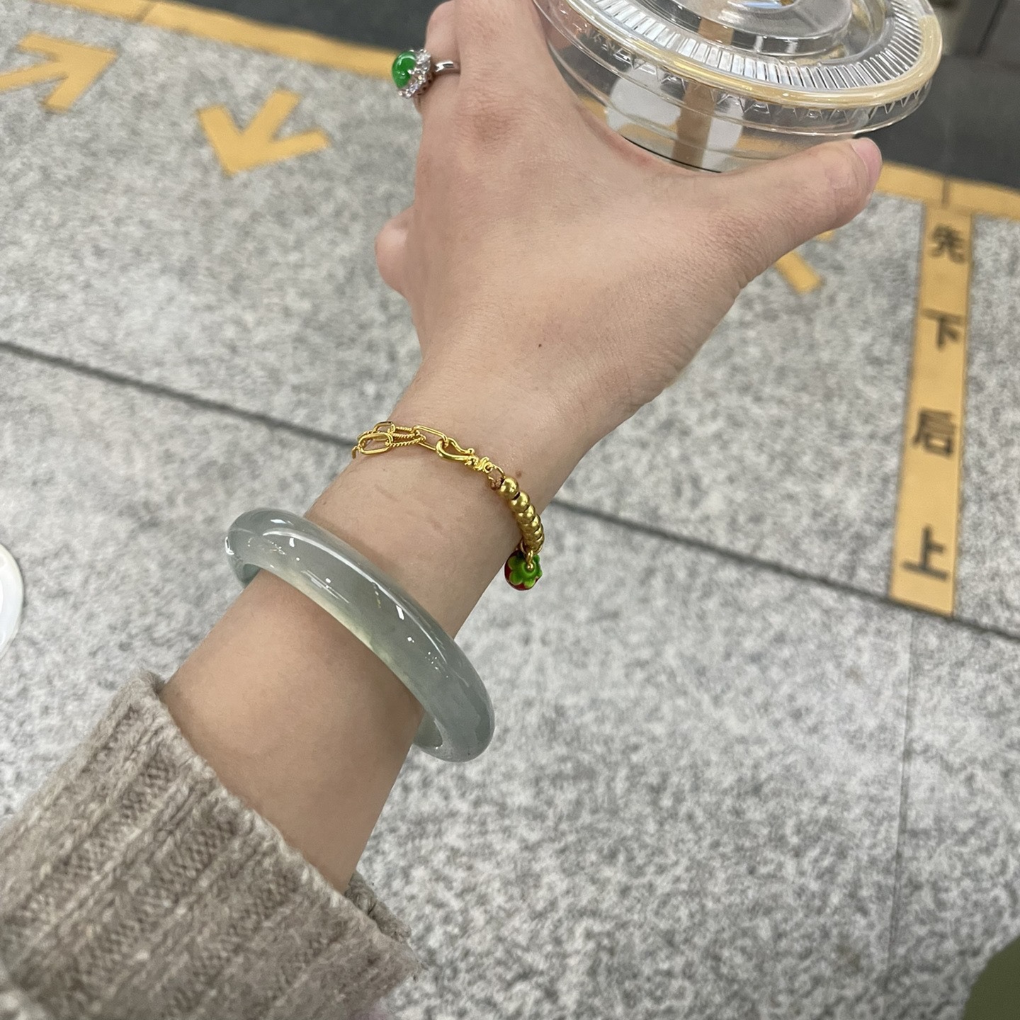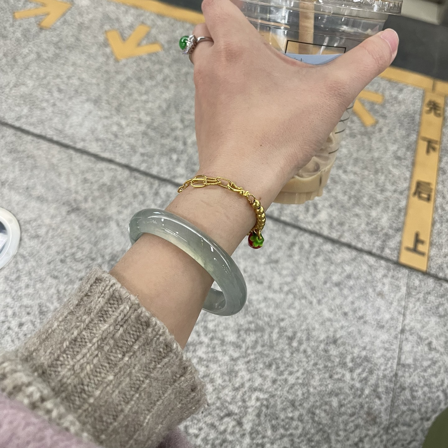缅甸翡翠手镯冰种飘绿玉手镯翡翠色玉镯子少女款浅绿飘花手镯送礼
