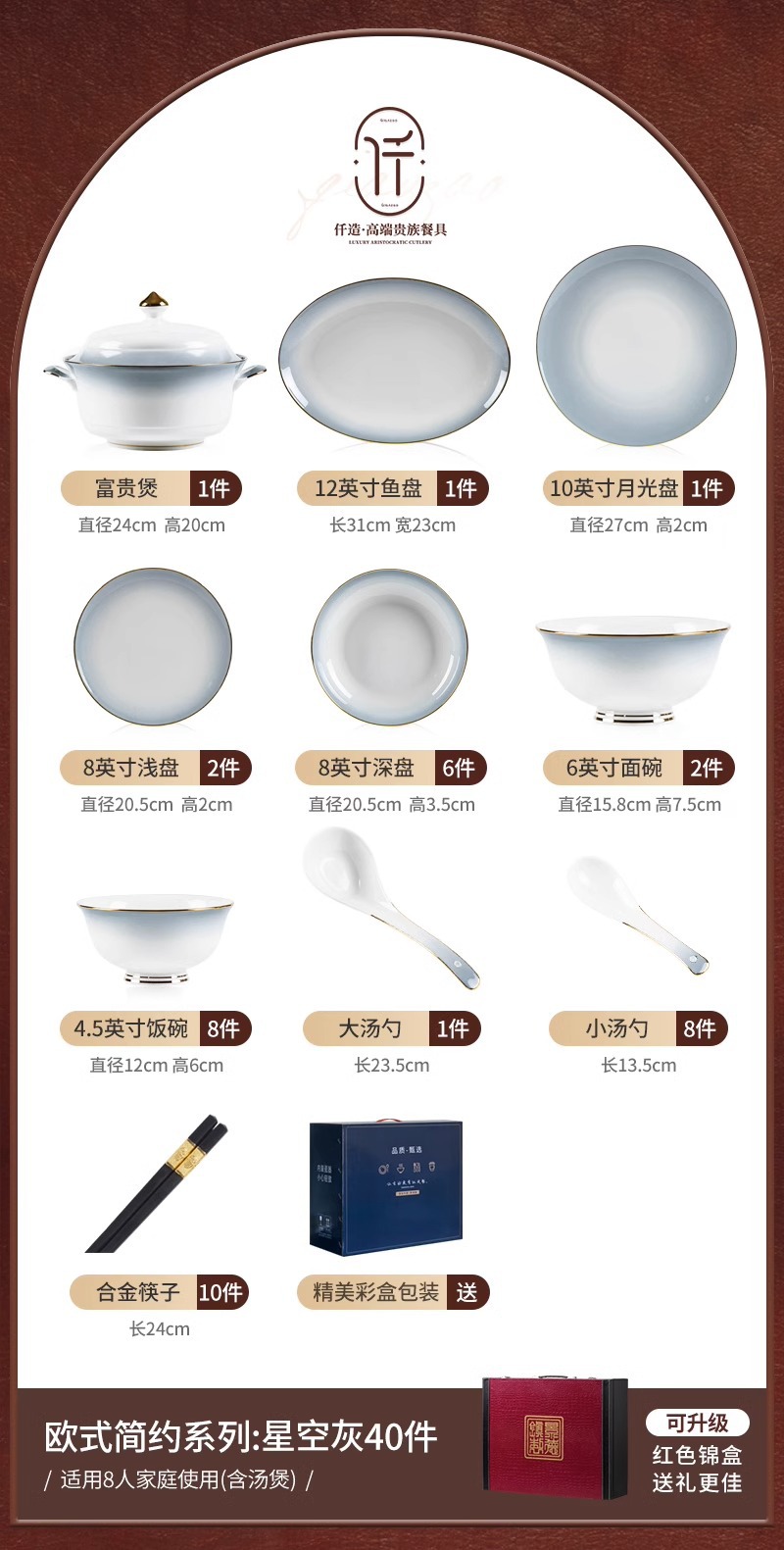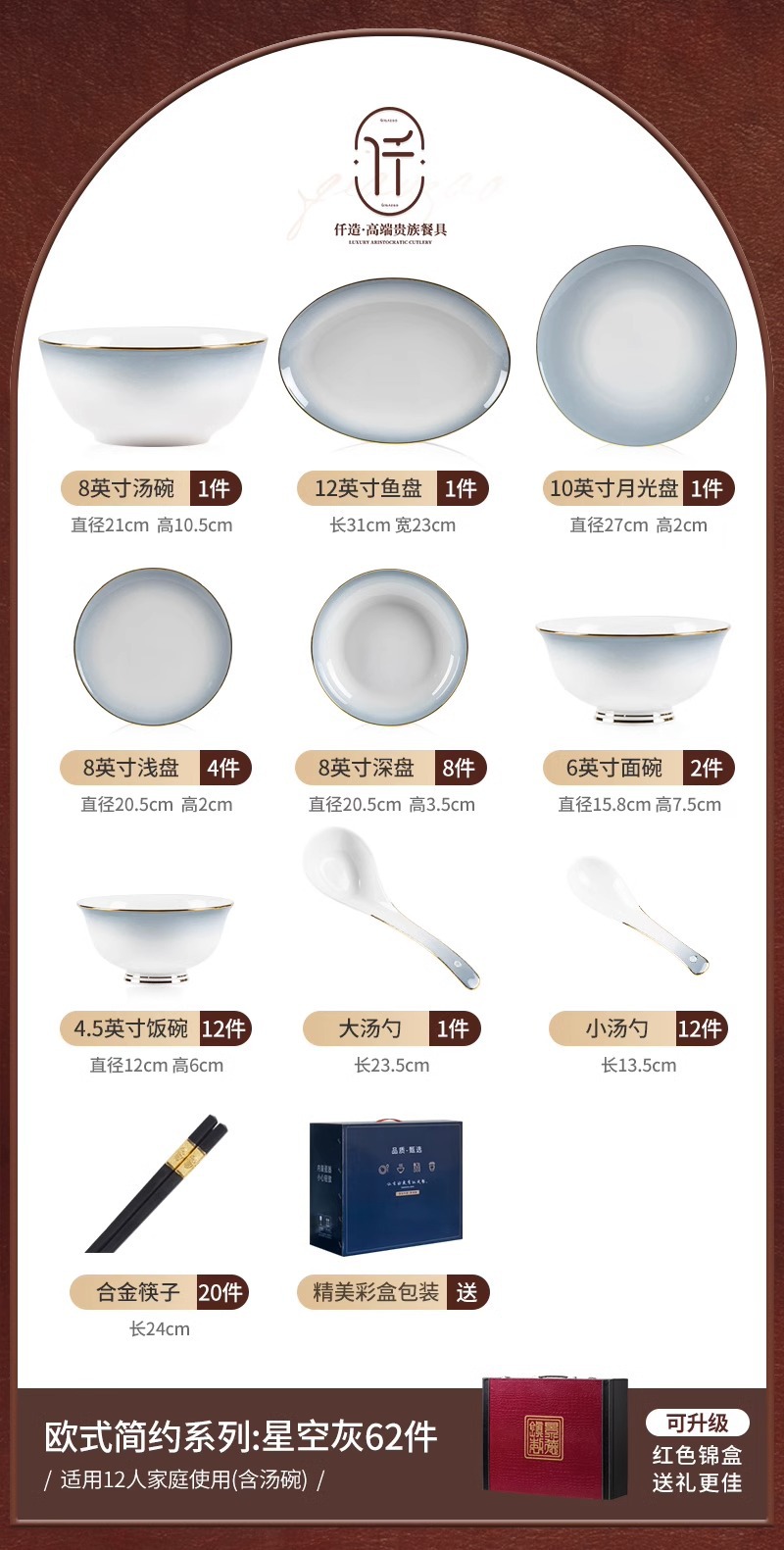 景德镇骨瓷餐具碗碟套装碗盘子组合家用金边轻奢乔迁礼品批发