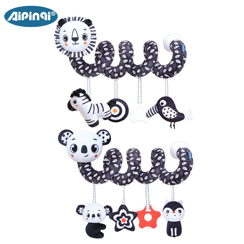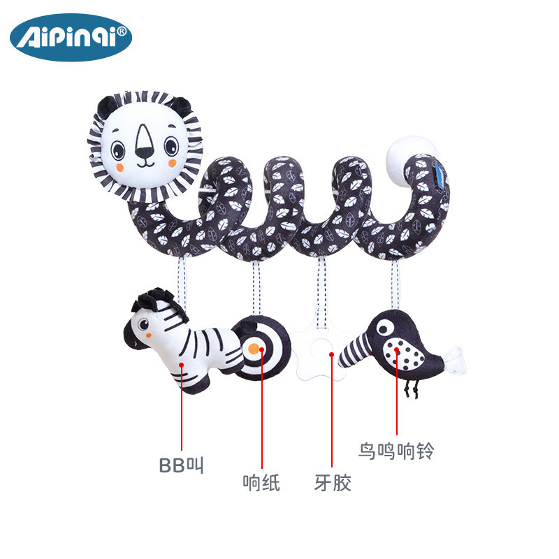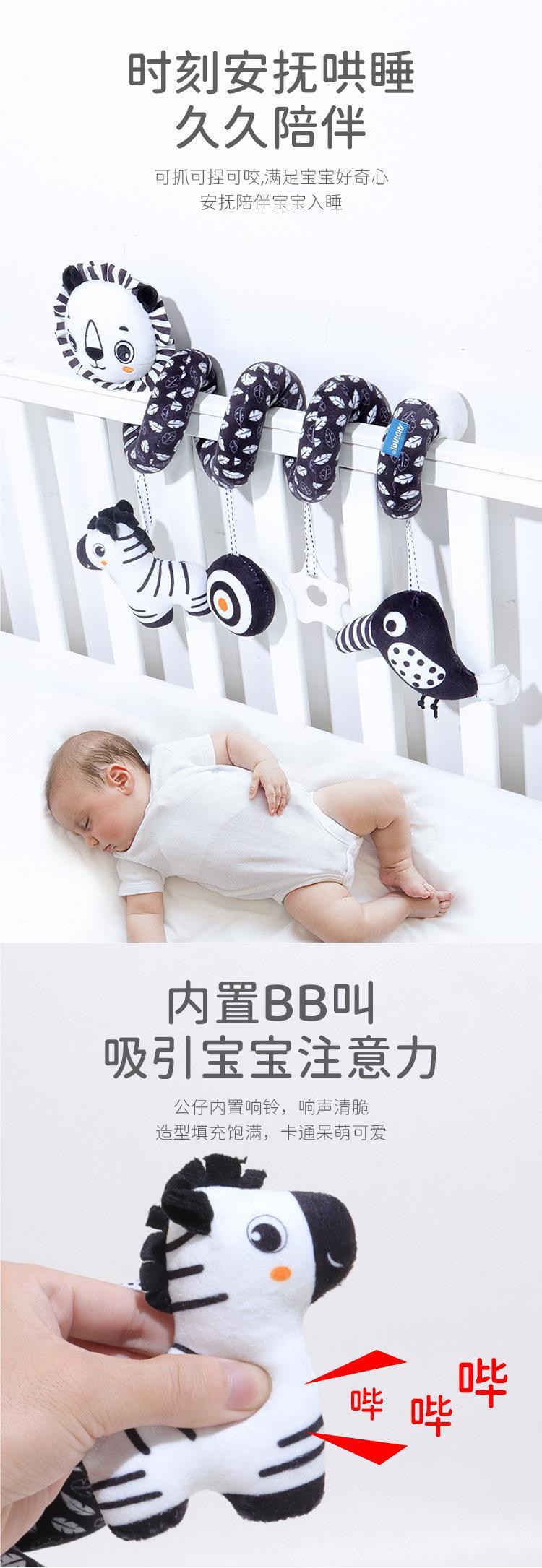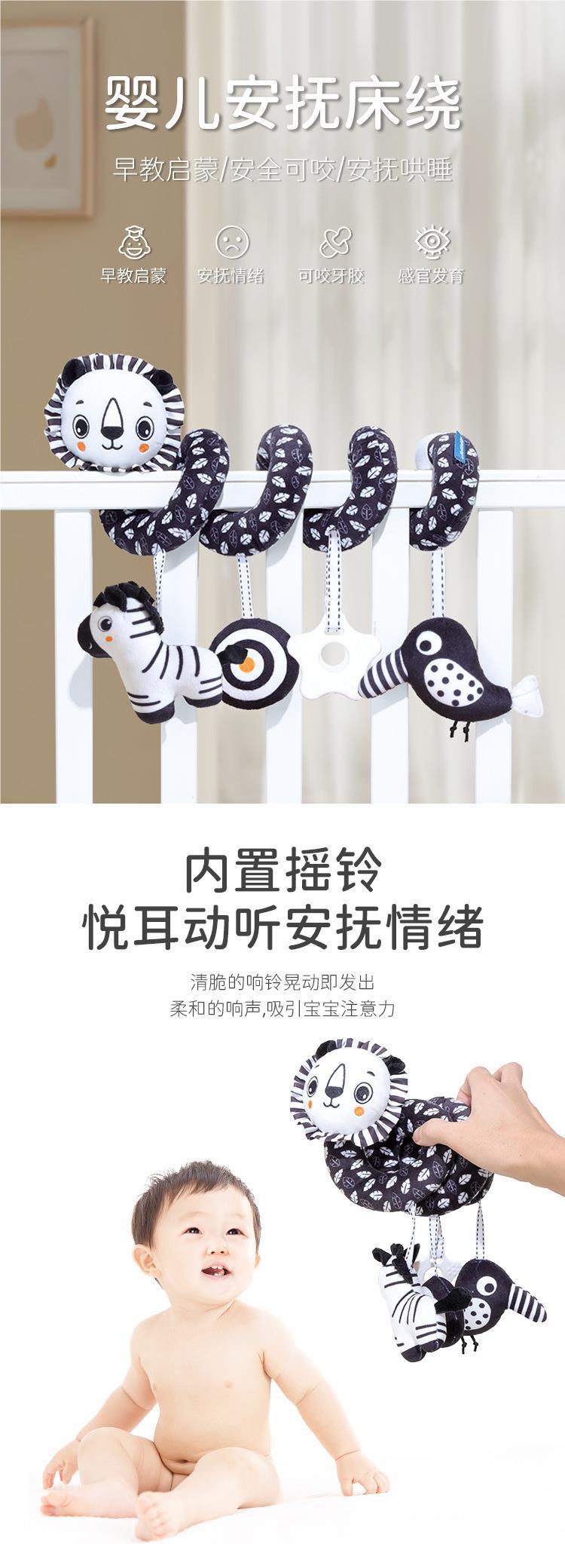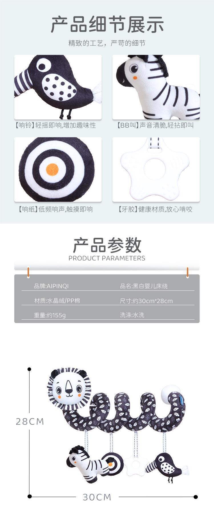 新生宝宝多功能黑白动物车挂饰床绕婴儿毛绒安抚益智玩具