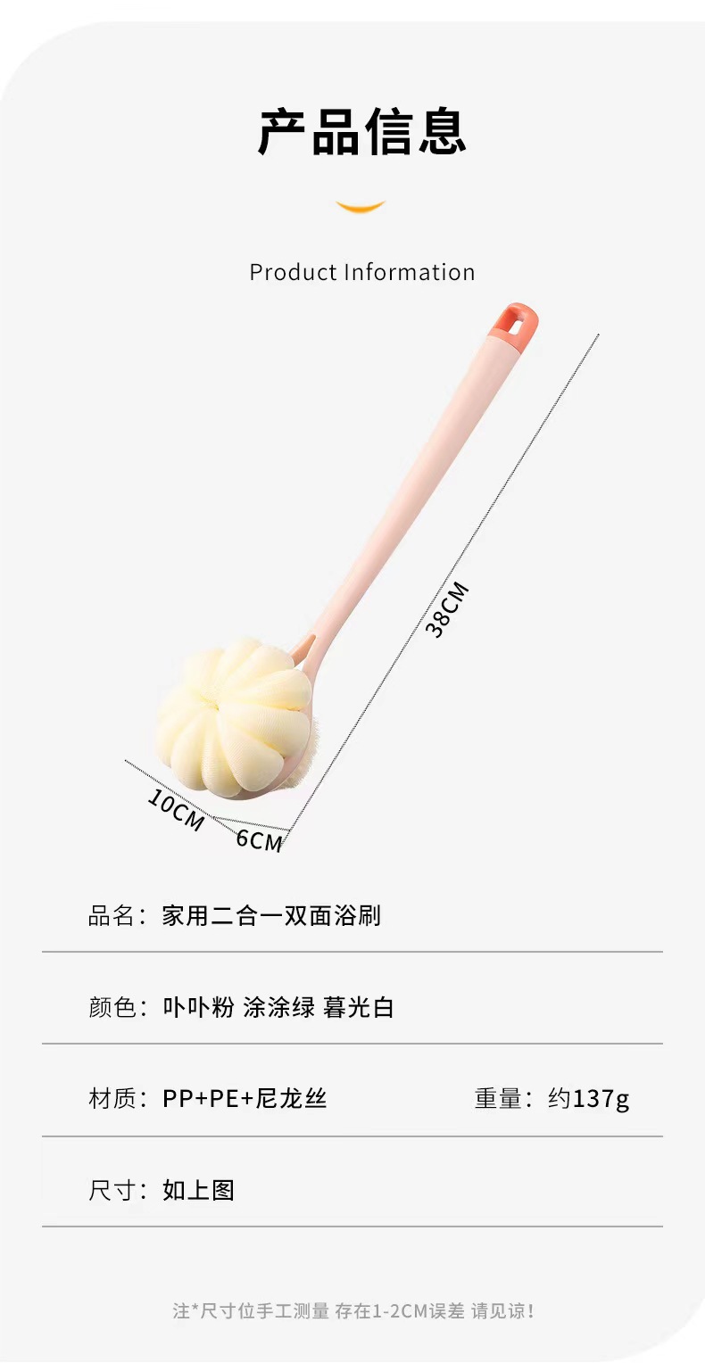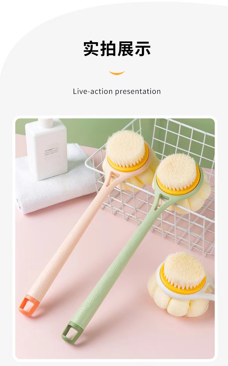 长柄双面洗澡刷沐浴刷搓背搓澡神器软毛尼龙沐浴刷二合一洗澡刷子
