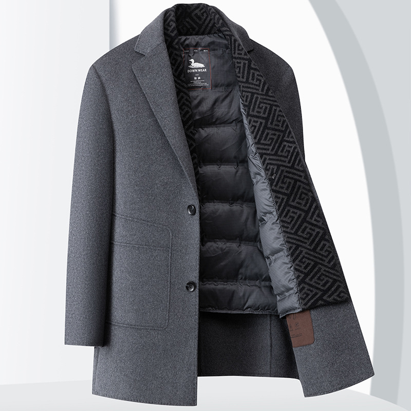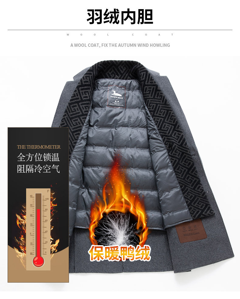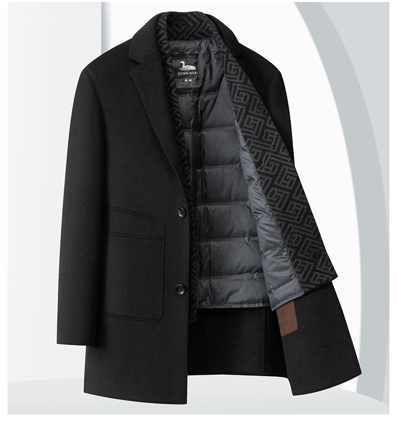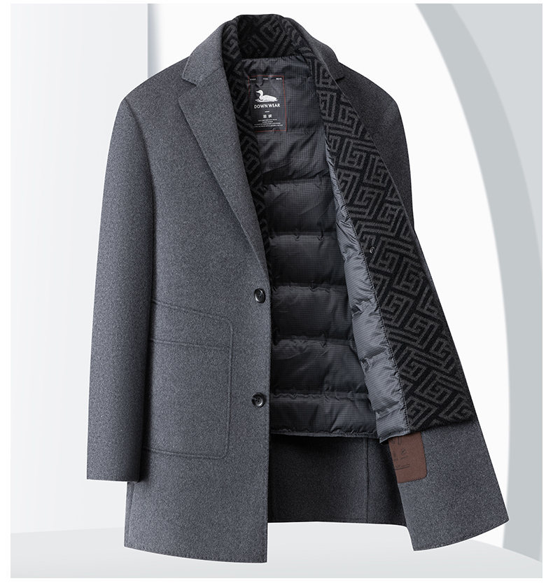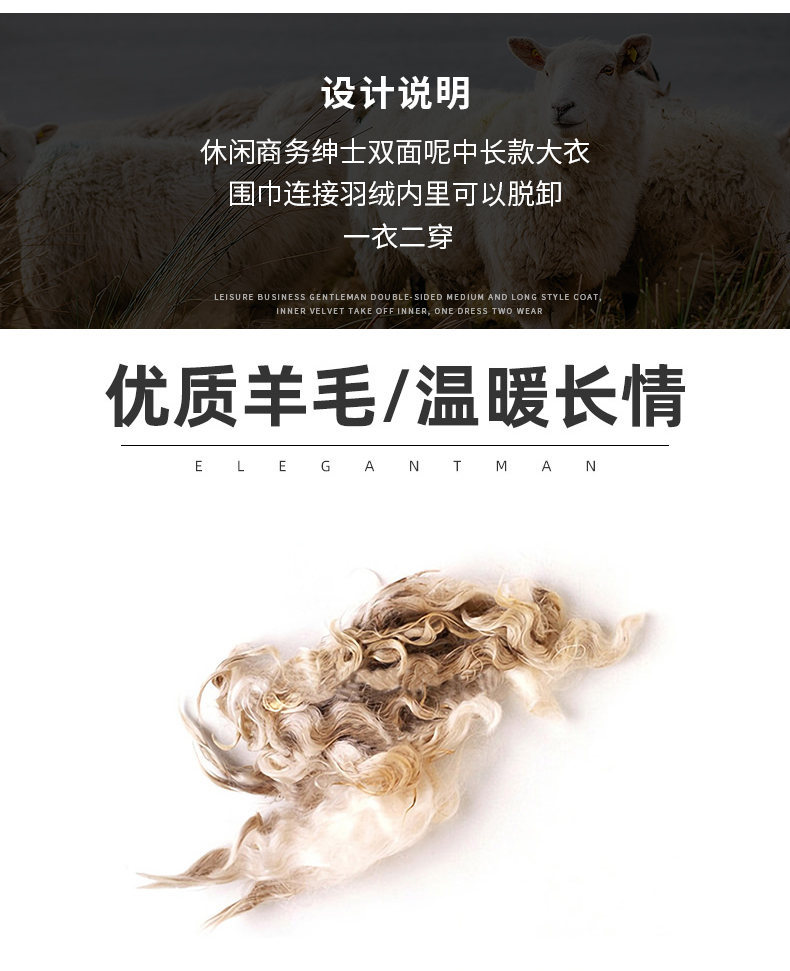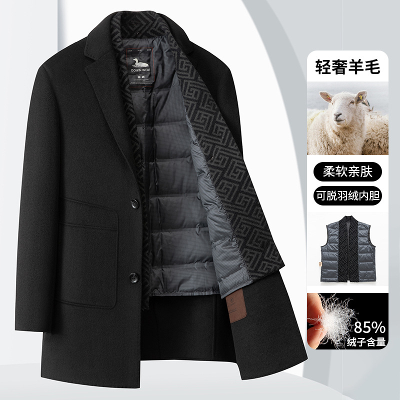 双面呢大衣男秋冬季新款脱卸羽绒马甲围巾商务绅士中长款男士外套