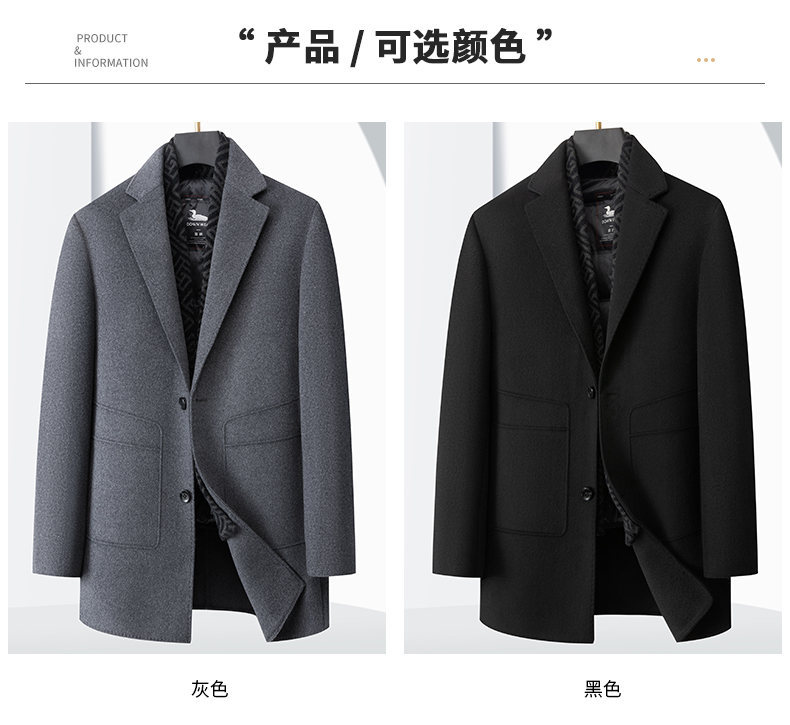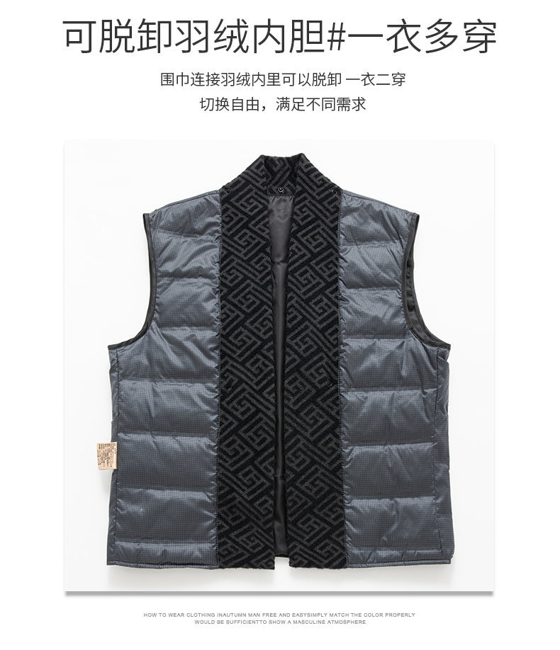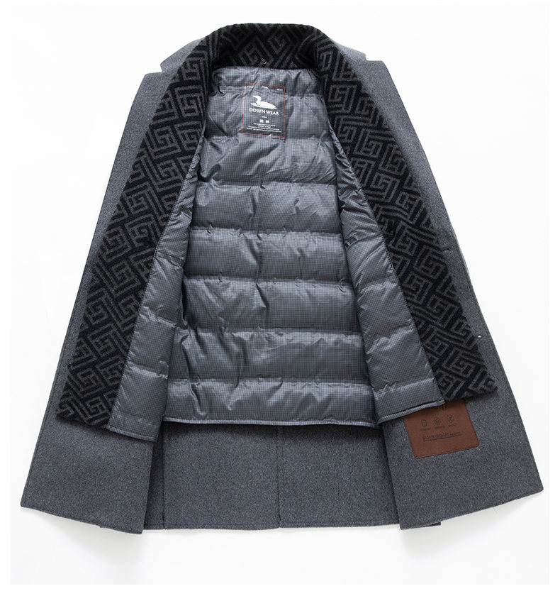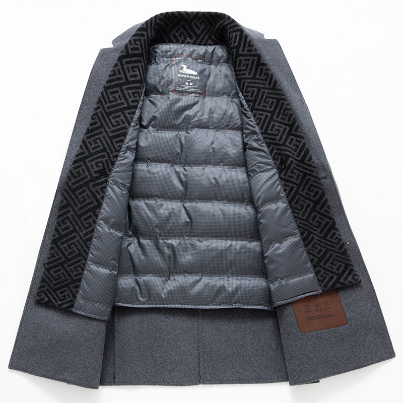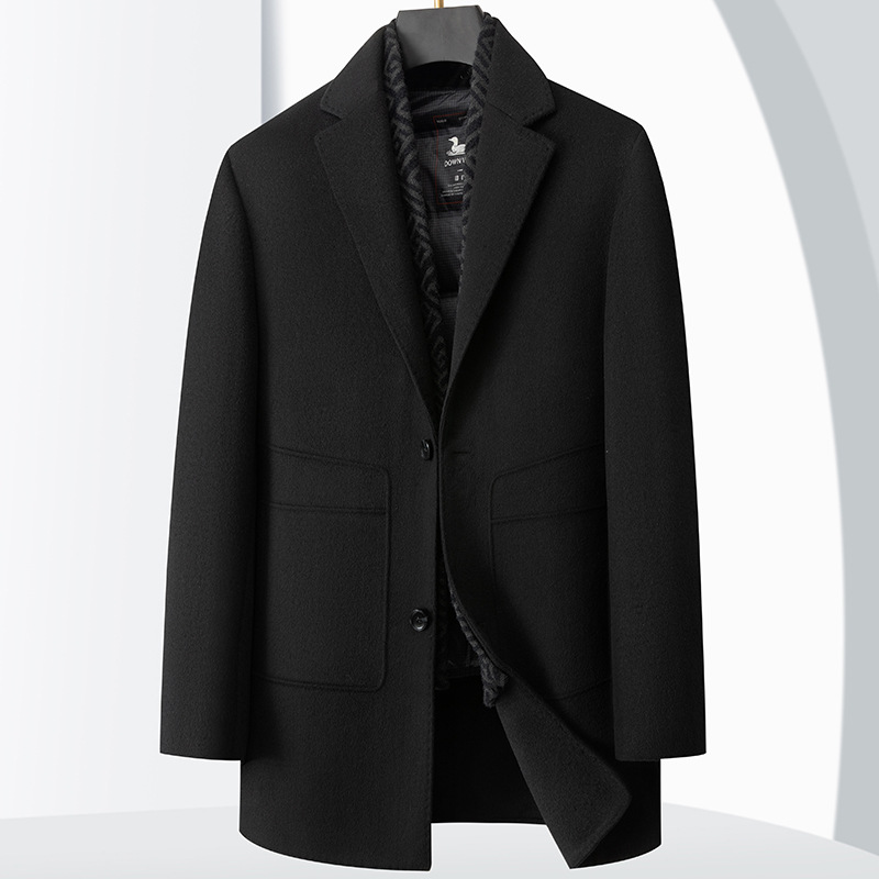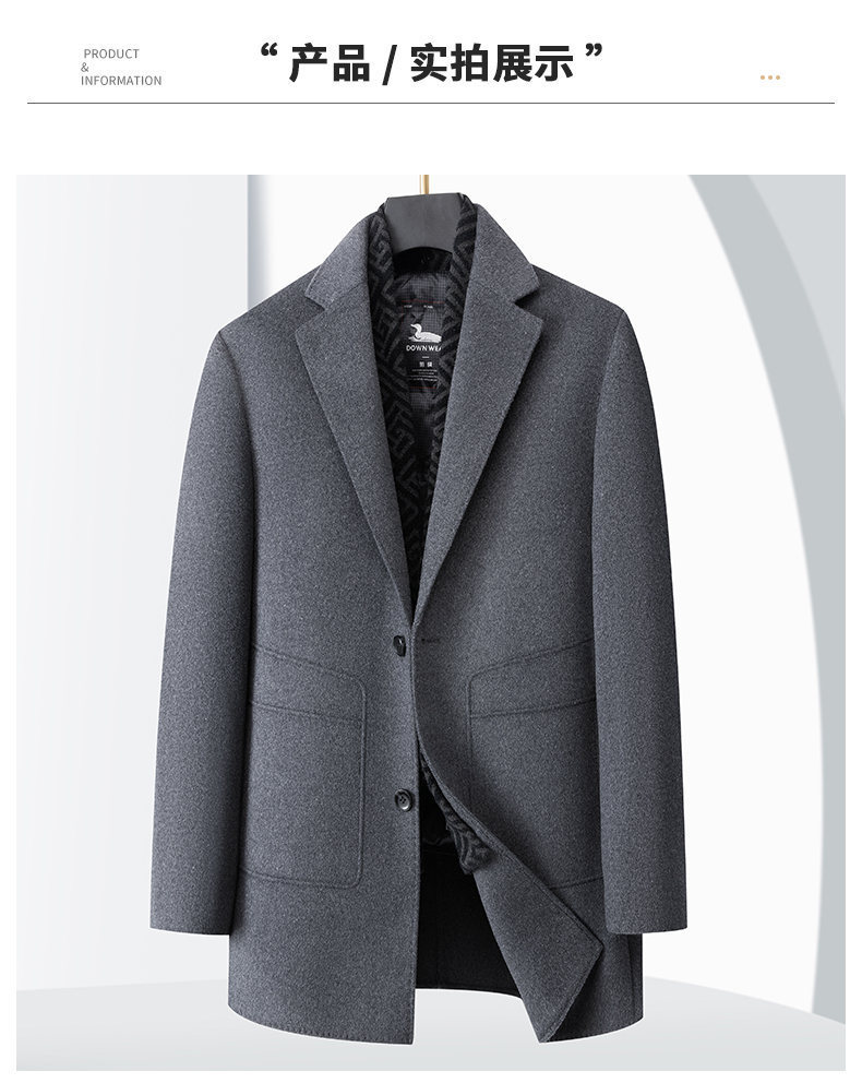 双面呢大衣男秋冬季新款脱卸羽绒马甲围巾商务绅士中长款男士外套