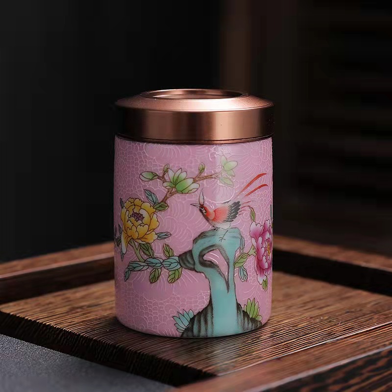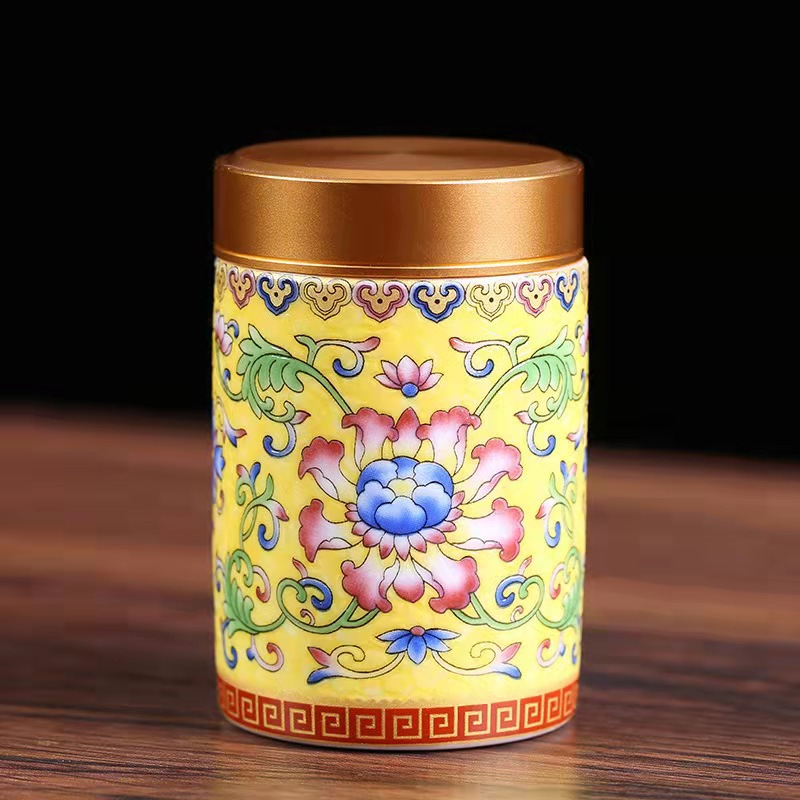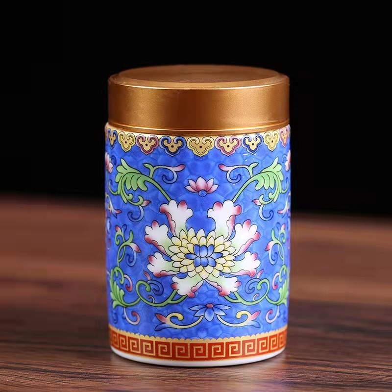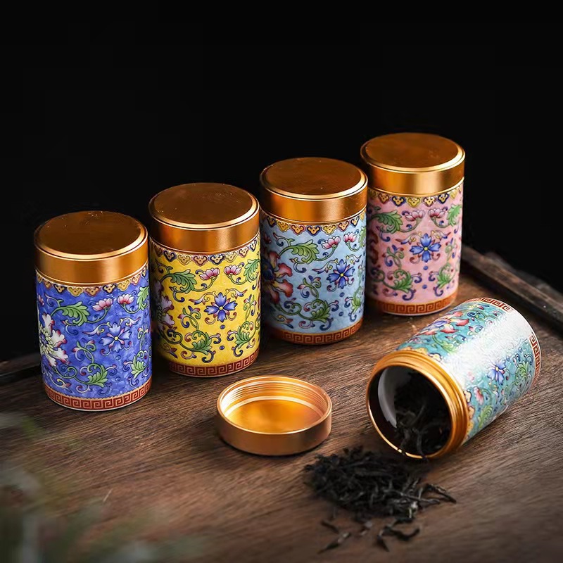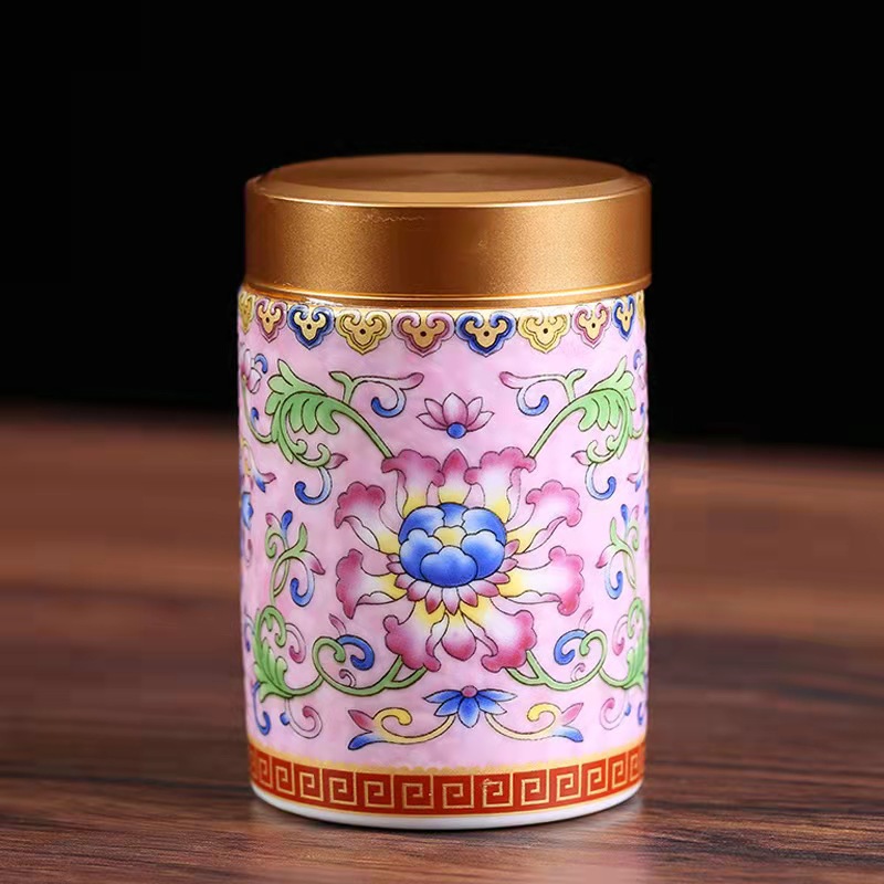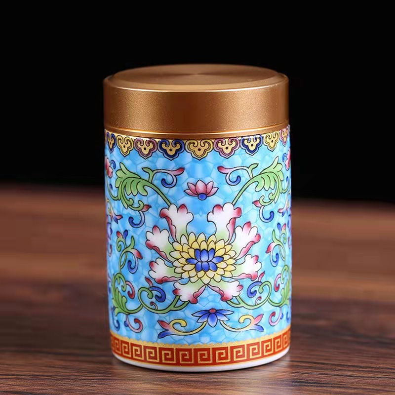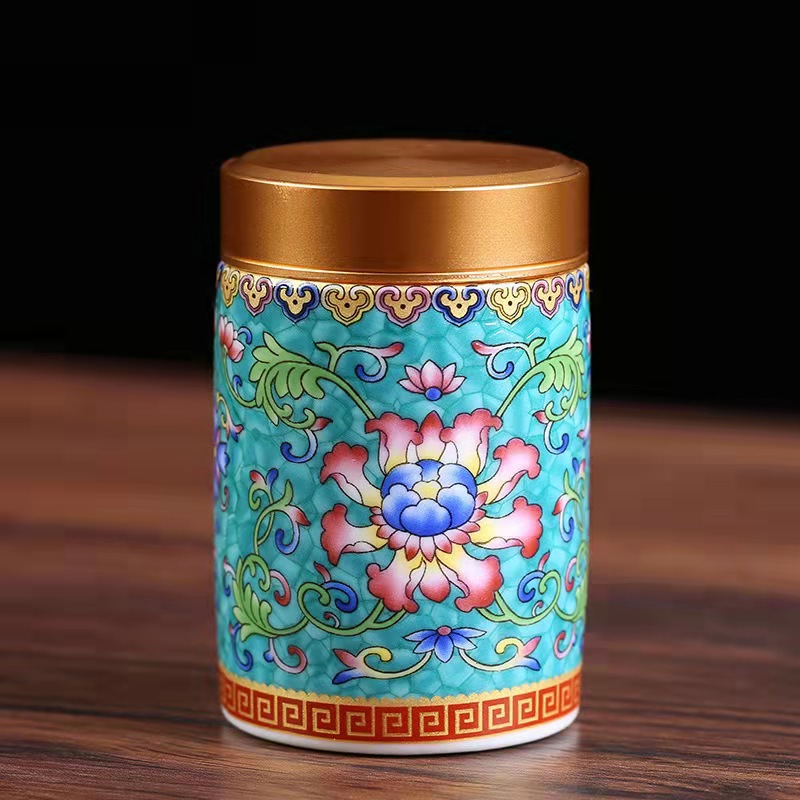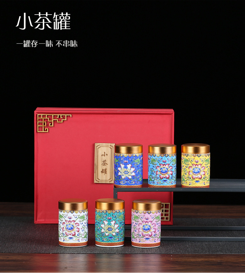 厂家直供珐琅彩陶瓷茶叶罐密封罐便携小号迷你茶罐小茶罐礼盒logo