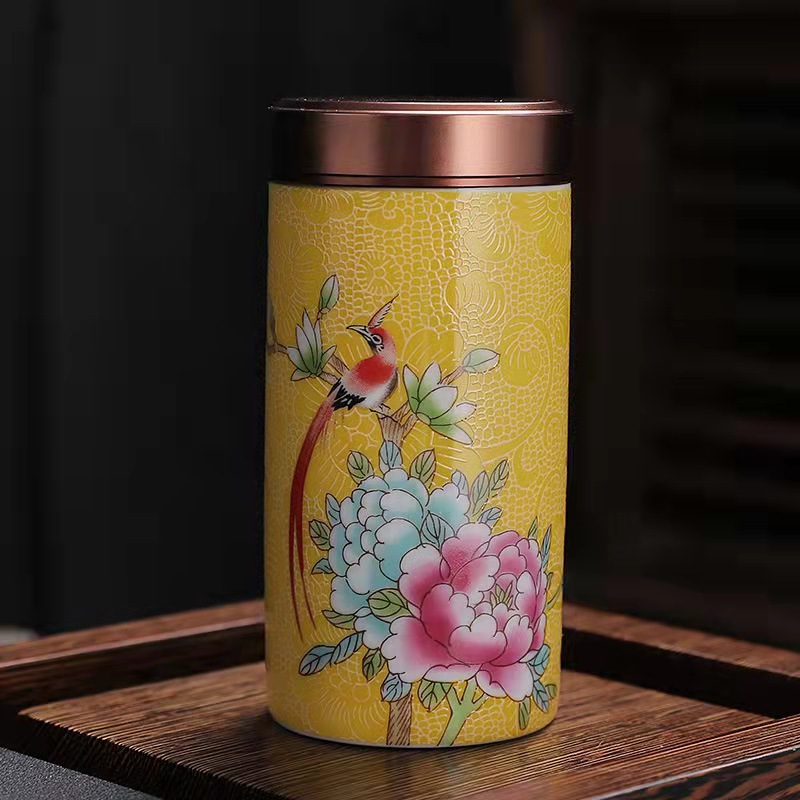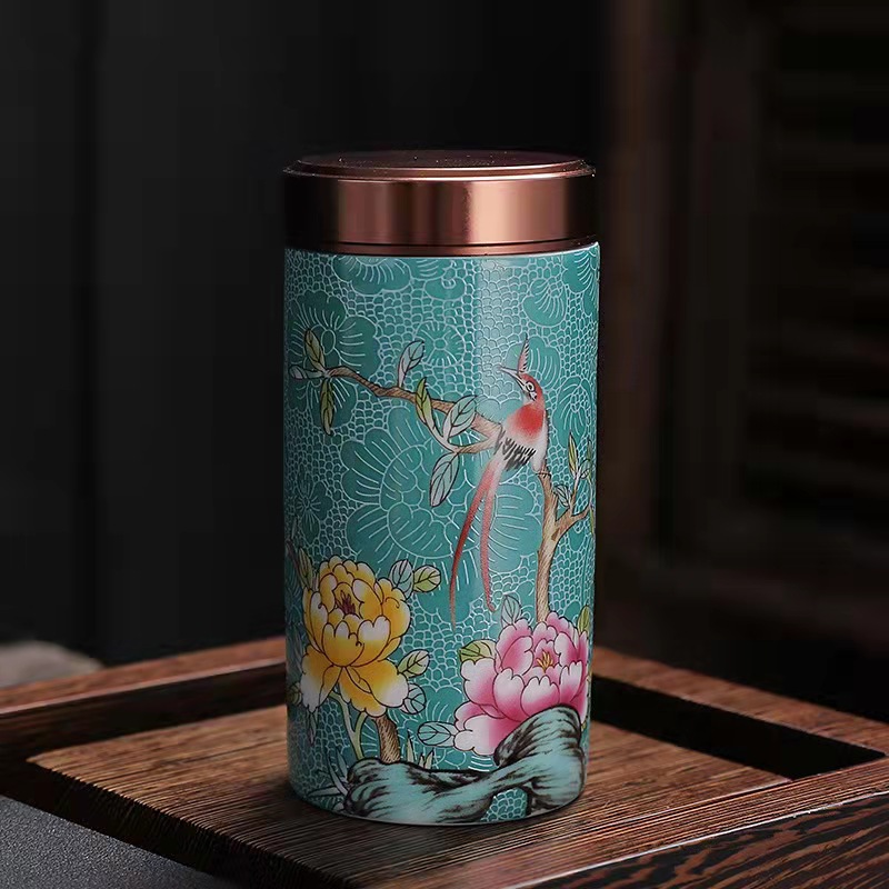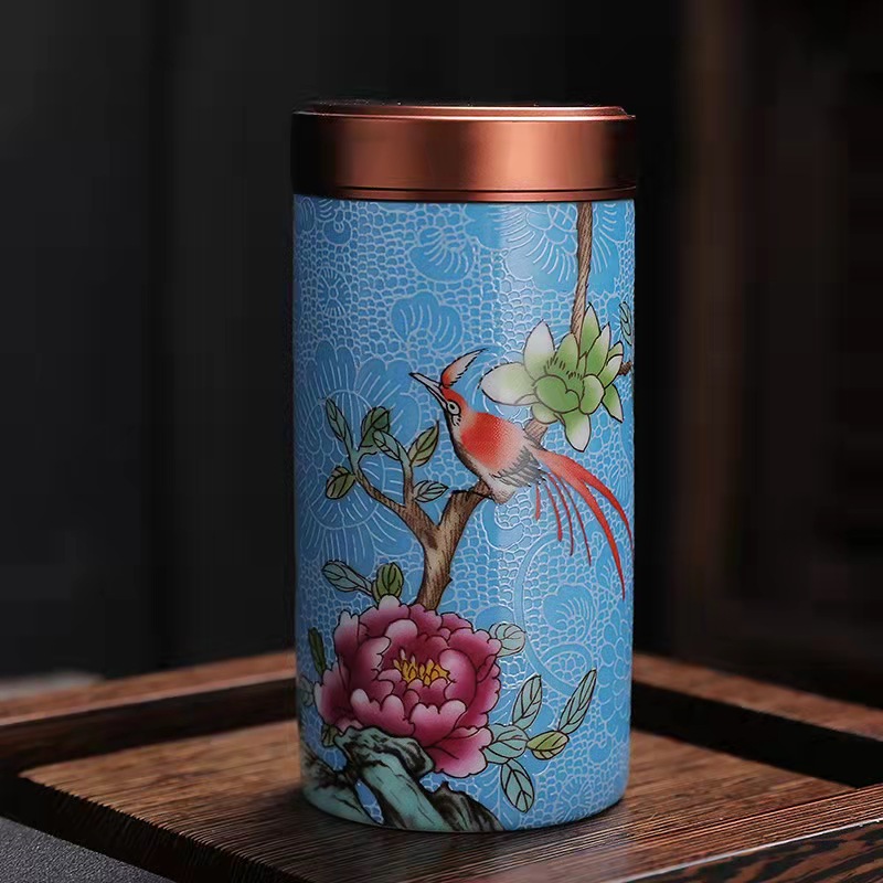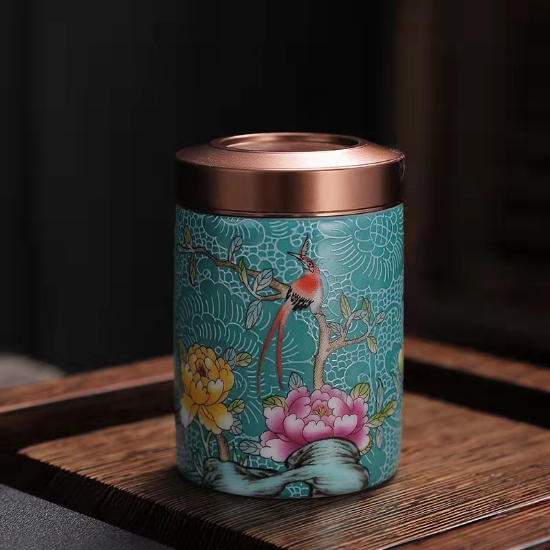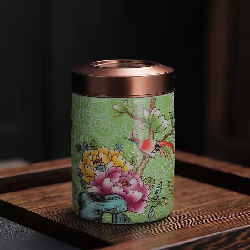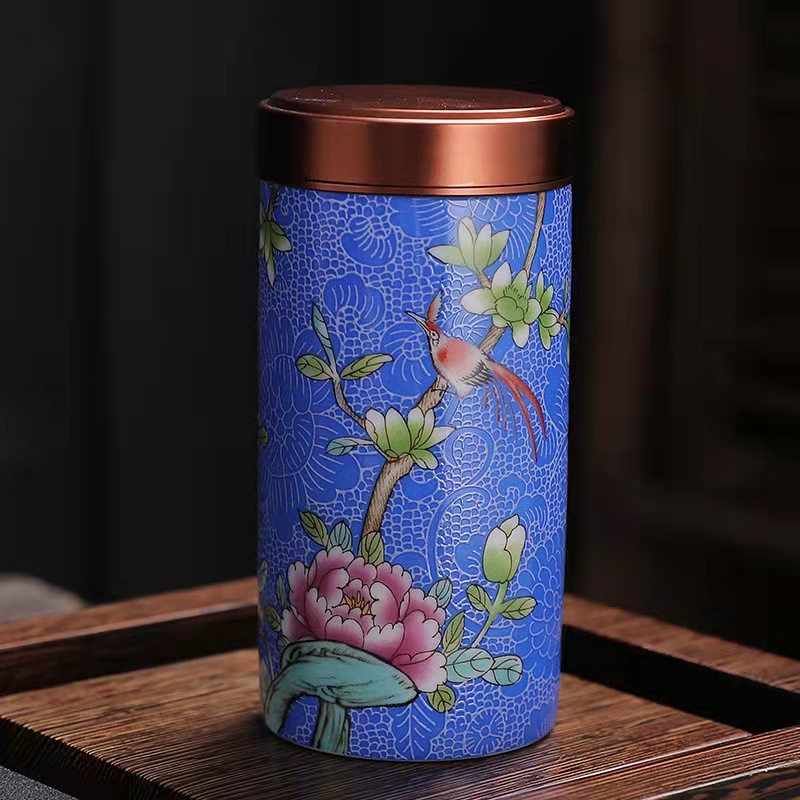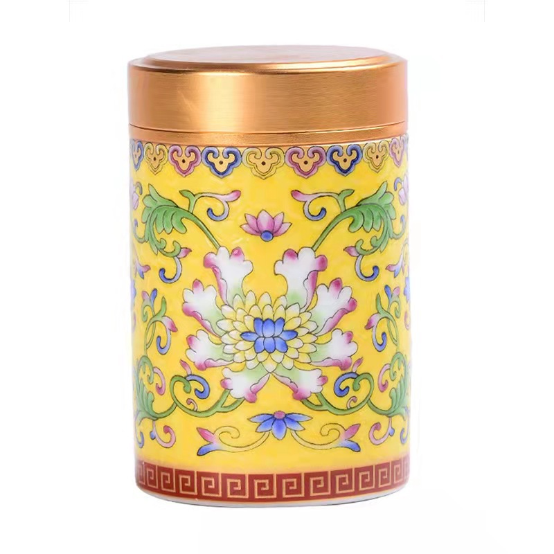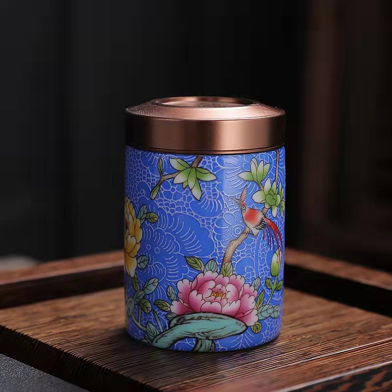 厂家直供珐琅彩陶瓷茶叶罐密封罐便携小号迷你茶罐小茶罐礼盒logo