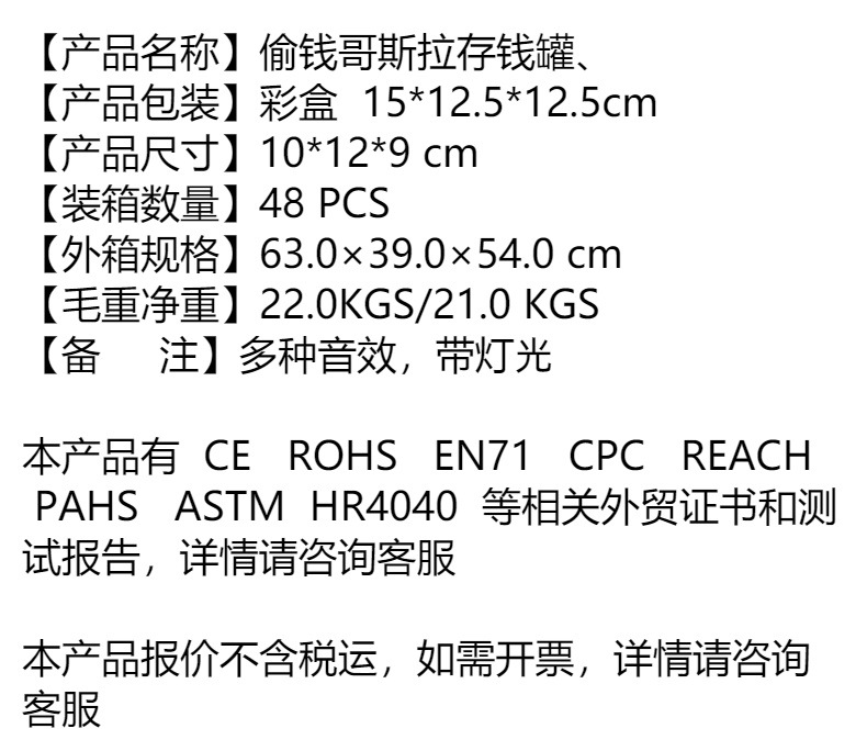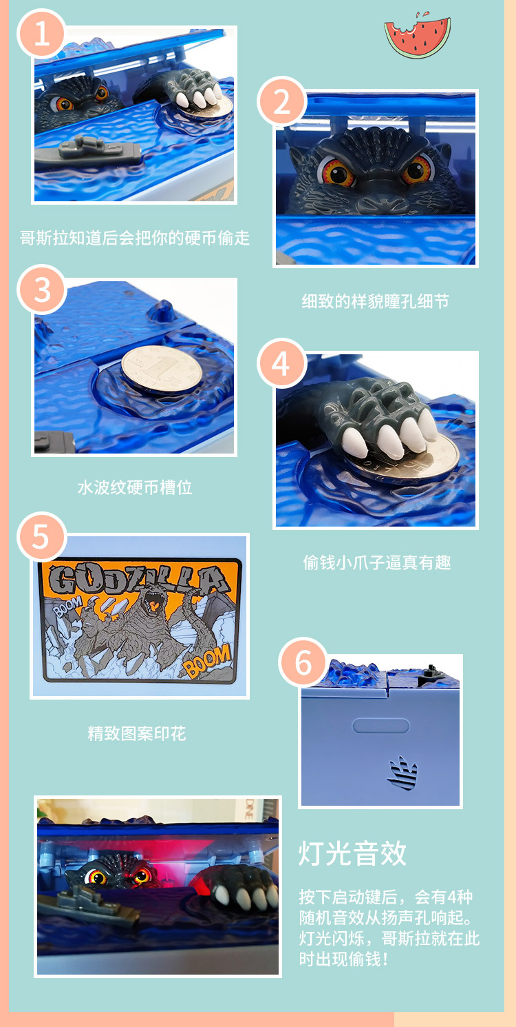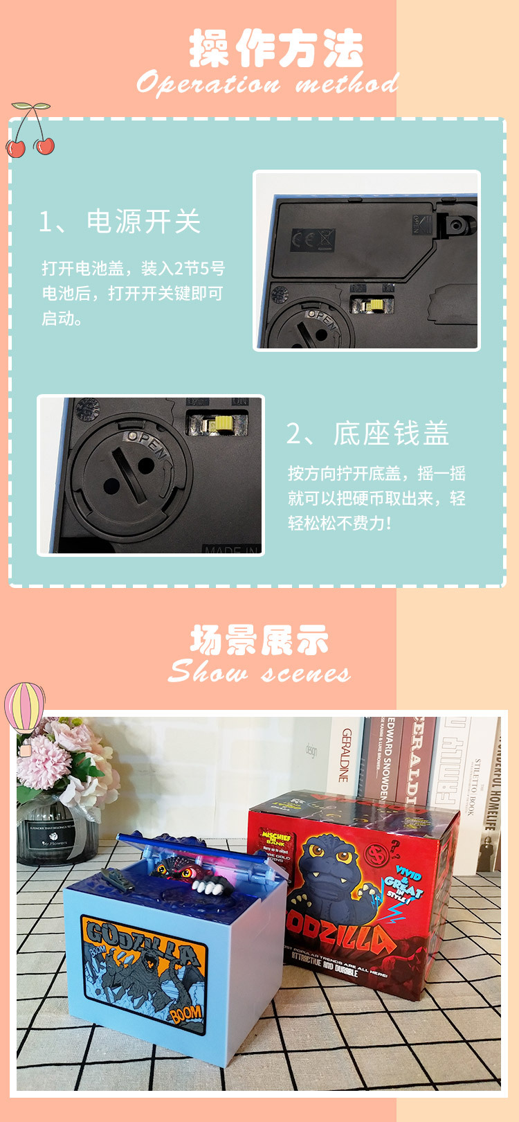 哥斯拉恐龙存钱罐 新款卡通偷钱猫电动音乐储蓄罐玩具外贸跨境