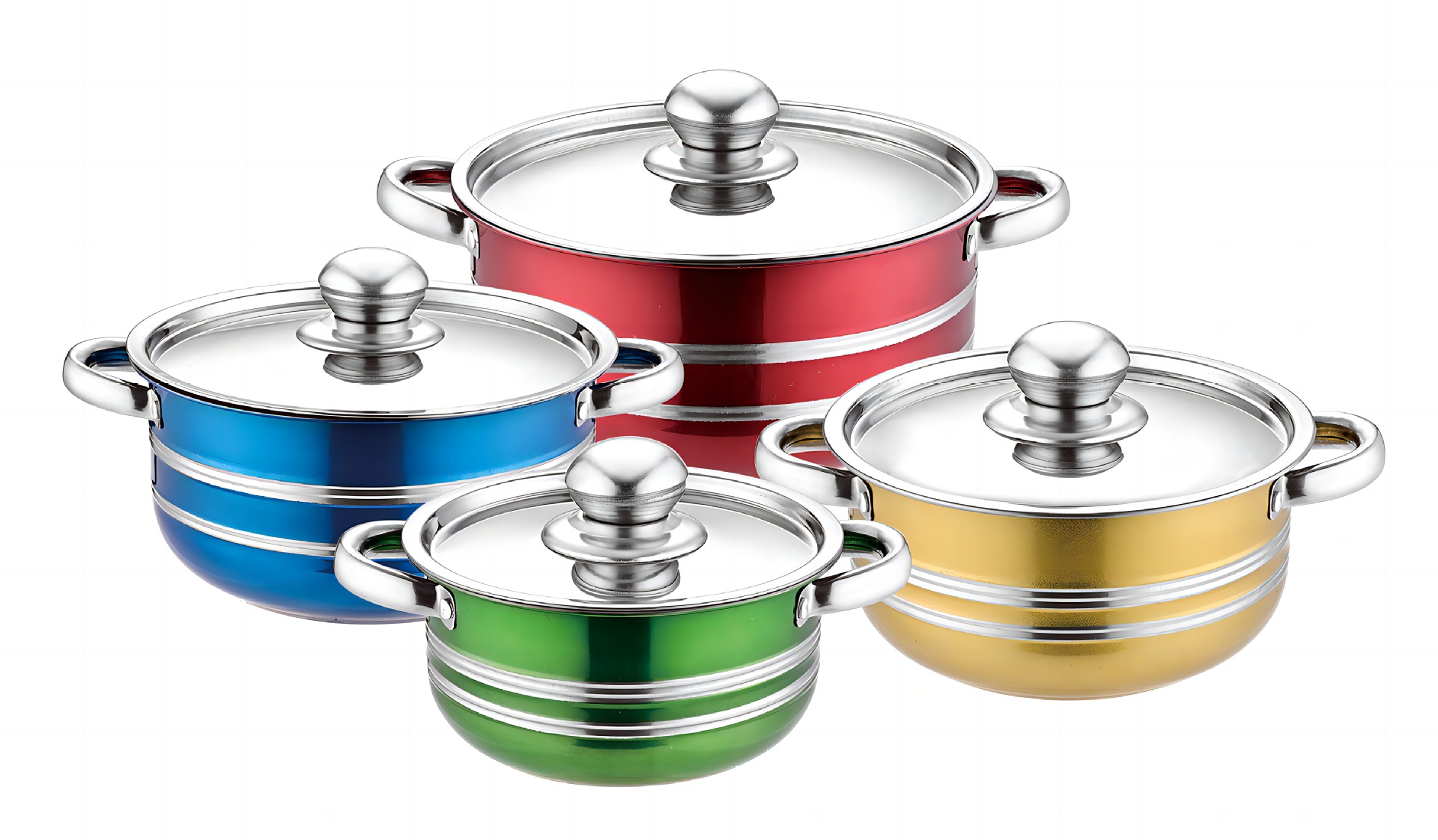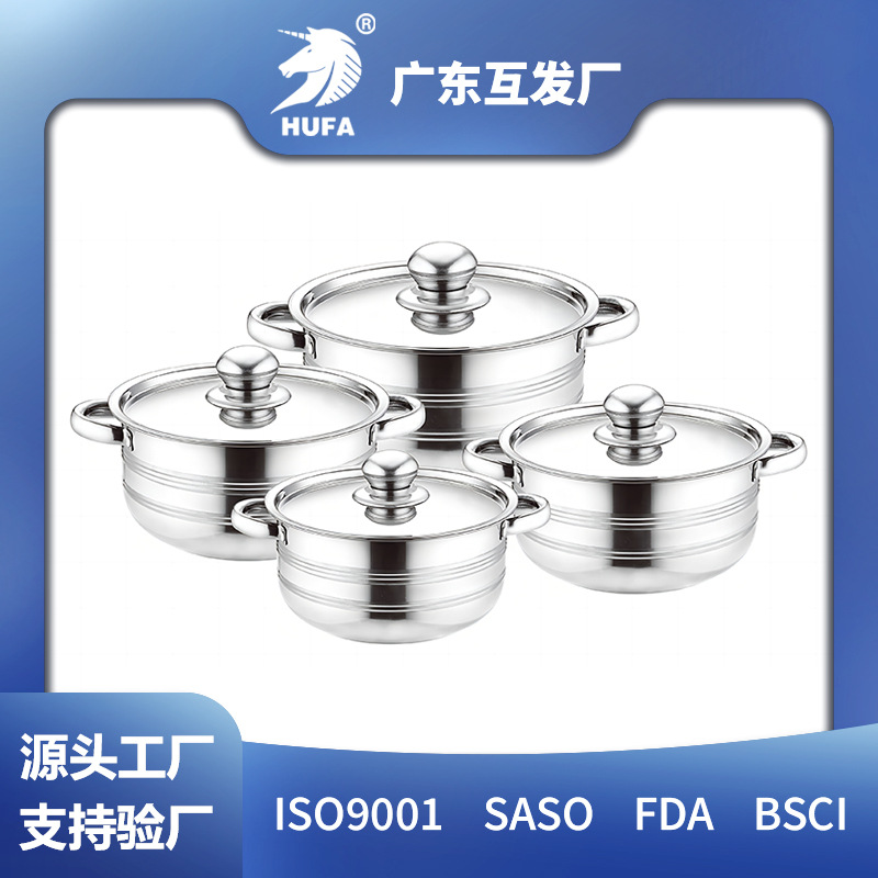 锅具管耳热卖四件套三件套本色腰线套锅4pcs不锈钢套锅外贸爆款