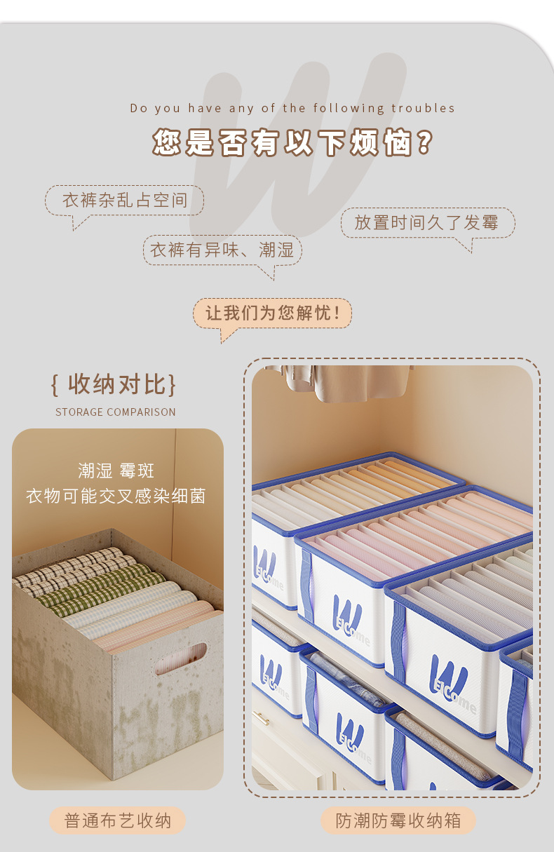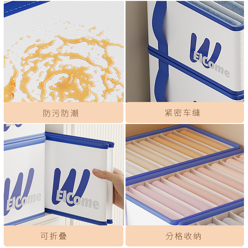 新款衣服折叠收纳盒家用衣物整理收纳防潮裤子分格收纳筐批发