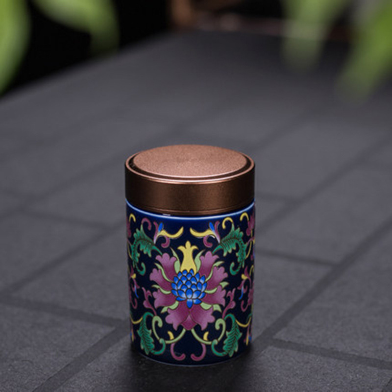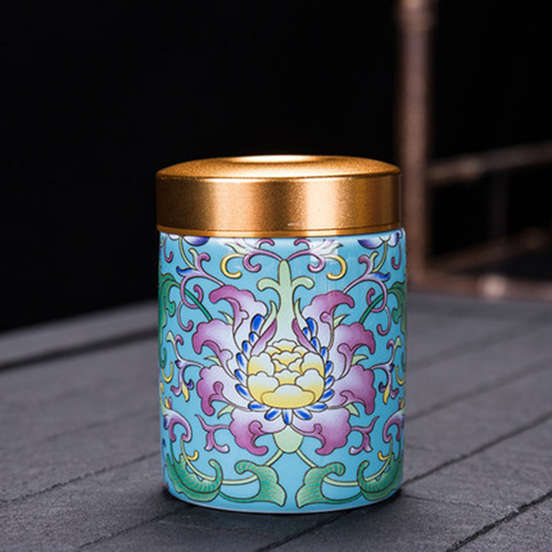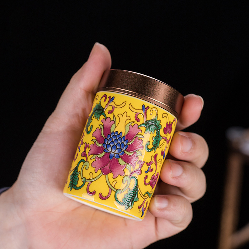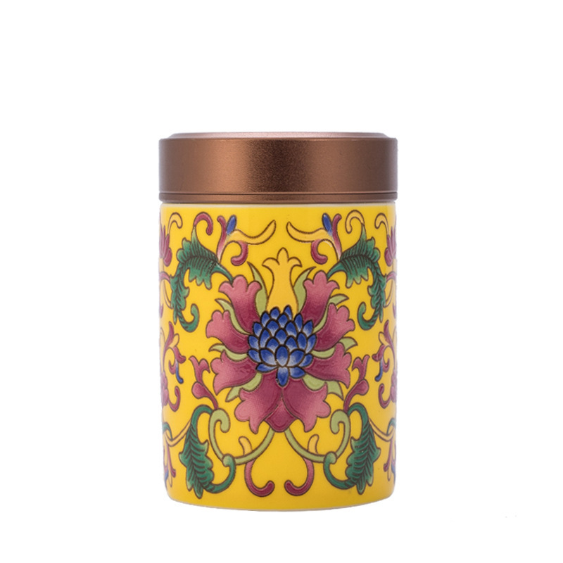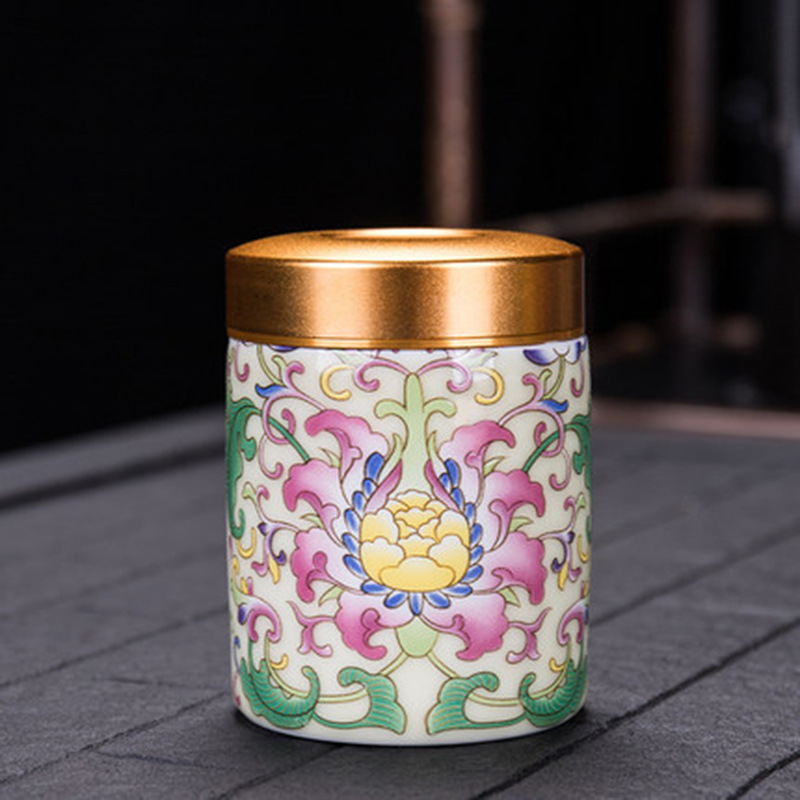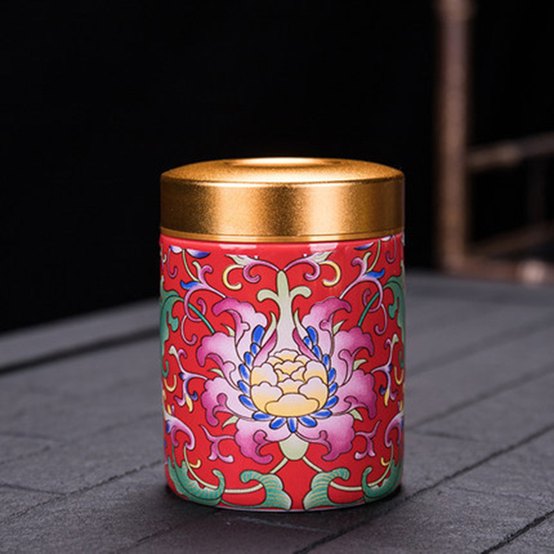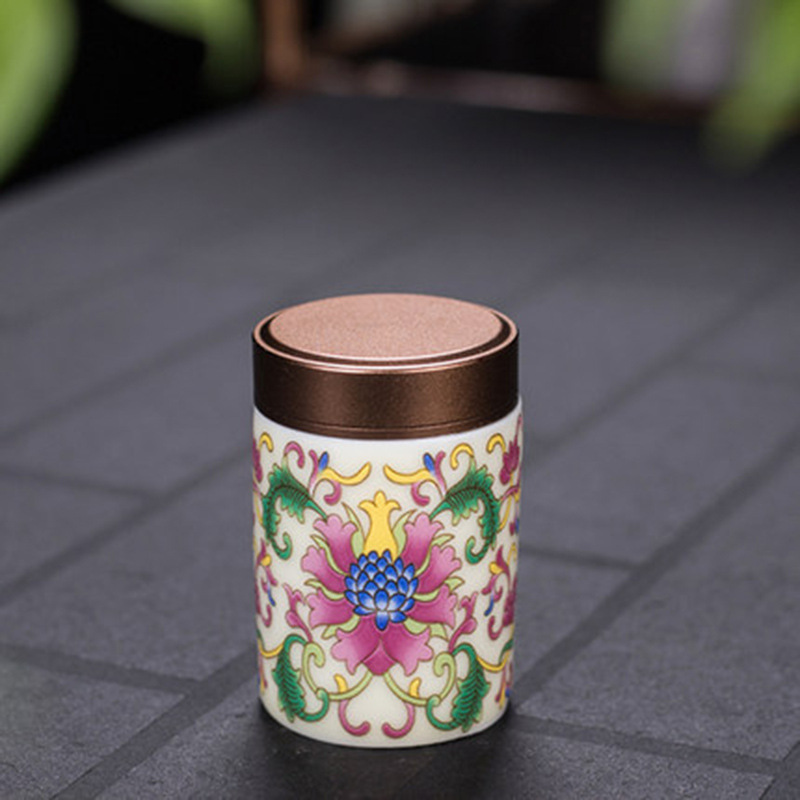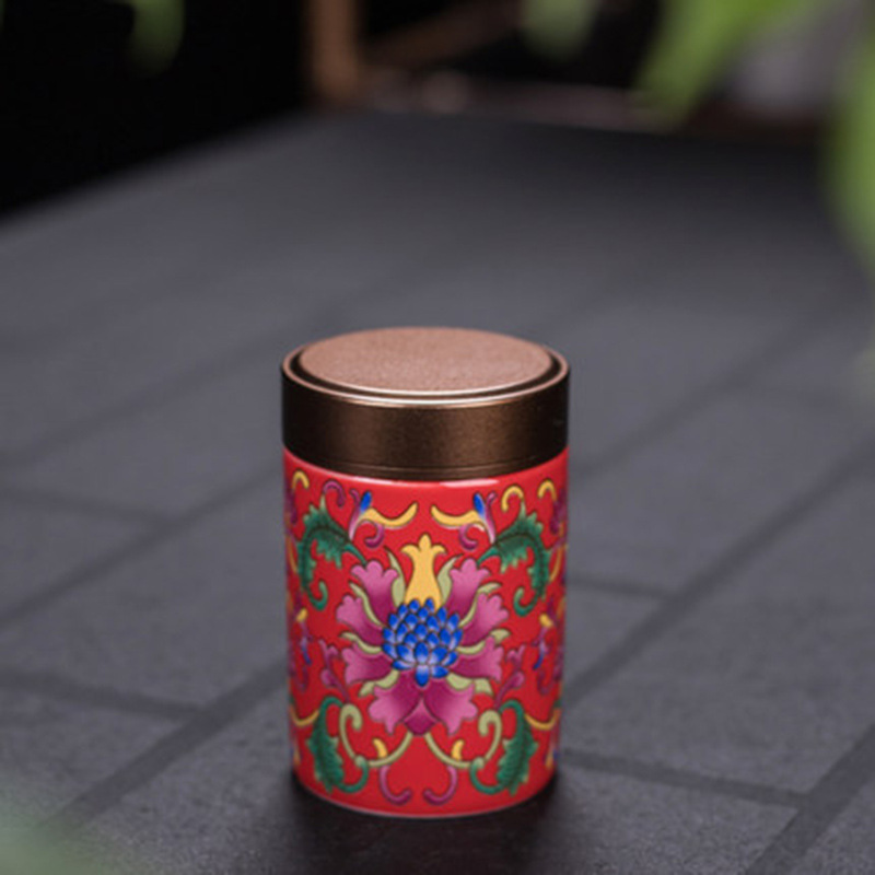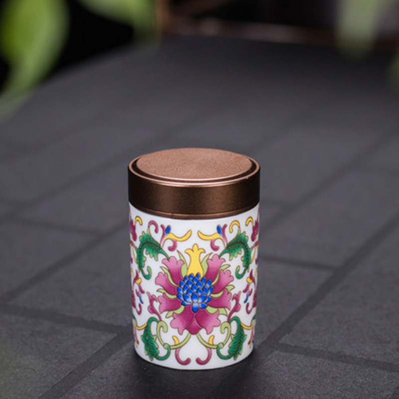 珐琅彩迷你小号小瓷罐茶叶盒陶瓷小号便携随身旅行金属密封储物罐