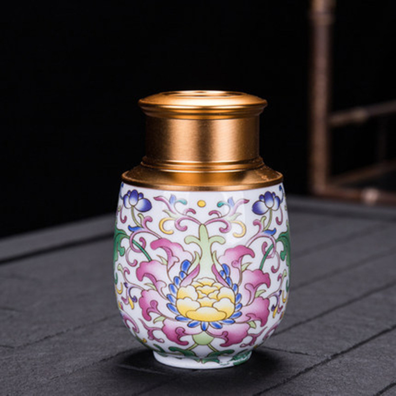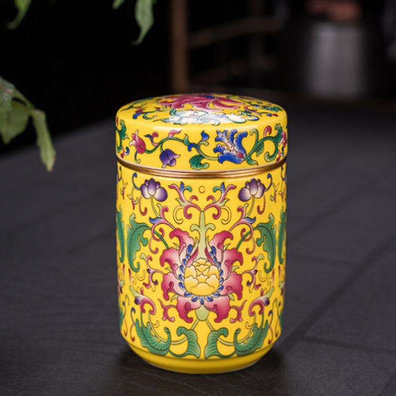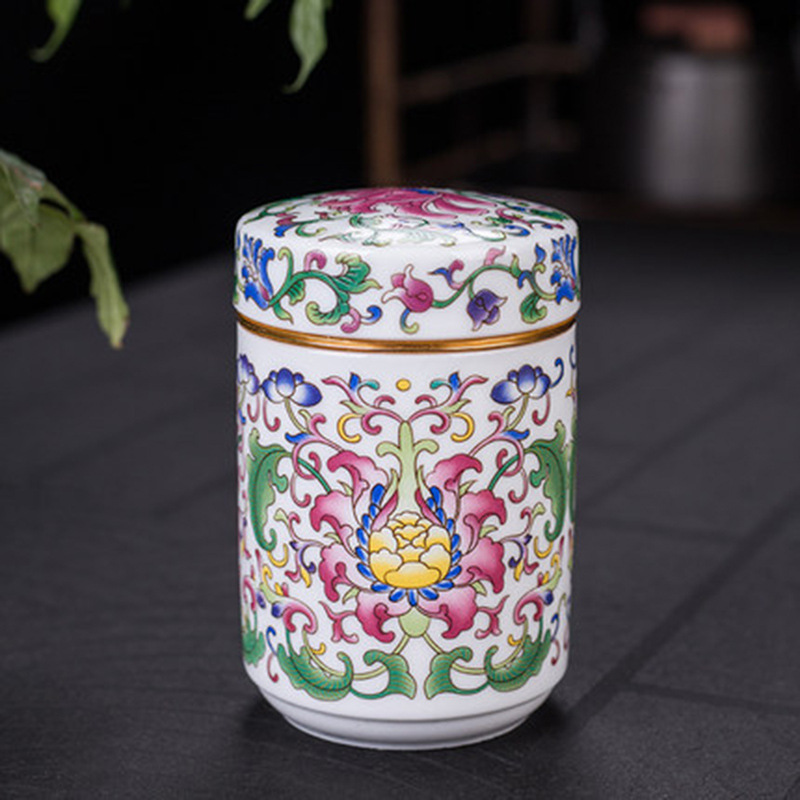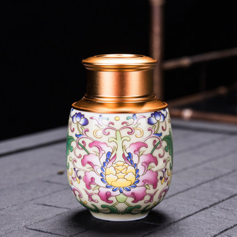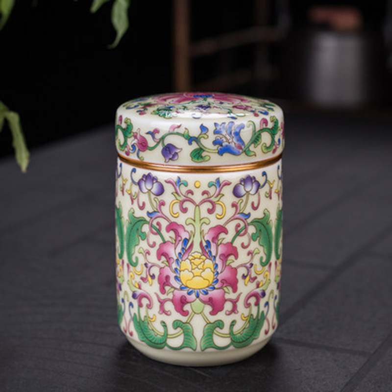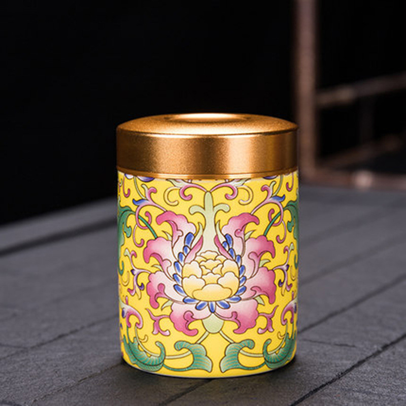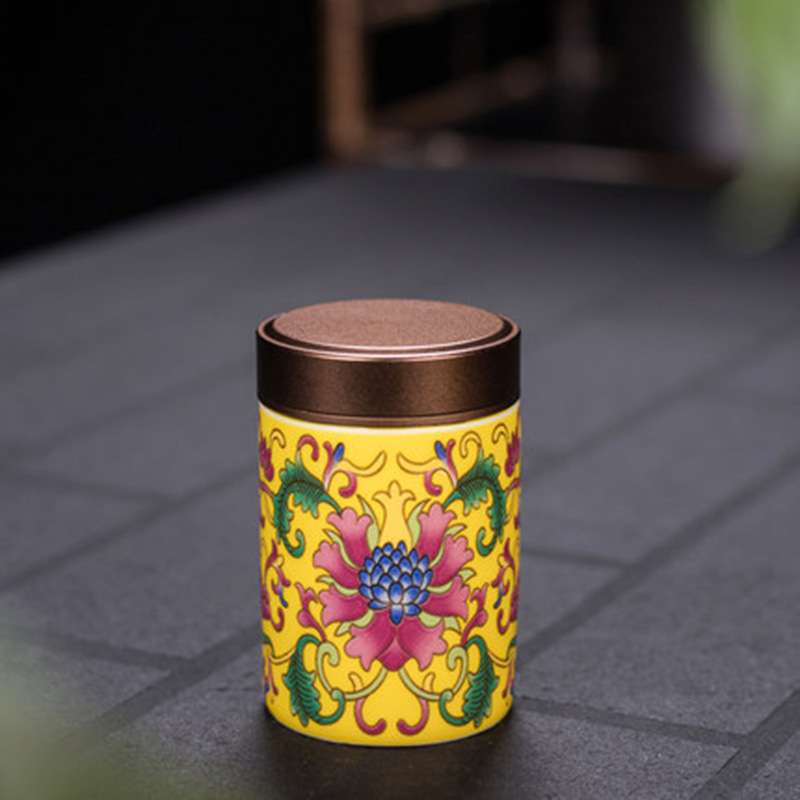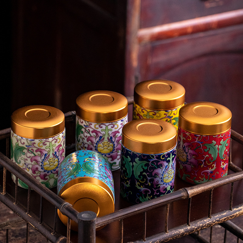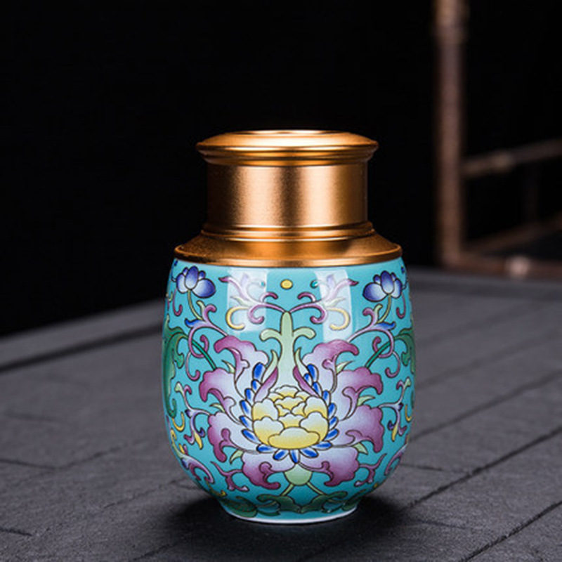 珐琅彩迷你小号小瓷罐茶叶盒陶瓷小号便携随身旅行金属密封储物罐