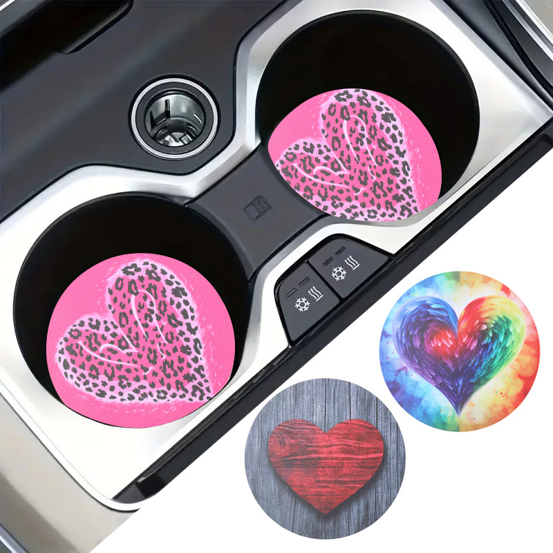 跨境情人节情侣款爱心图案耐磨圆形皮革杯垫速卖通亚马逊