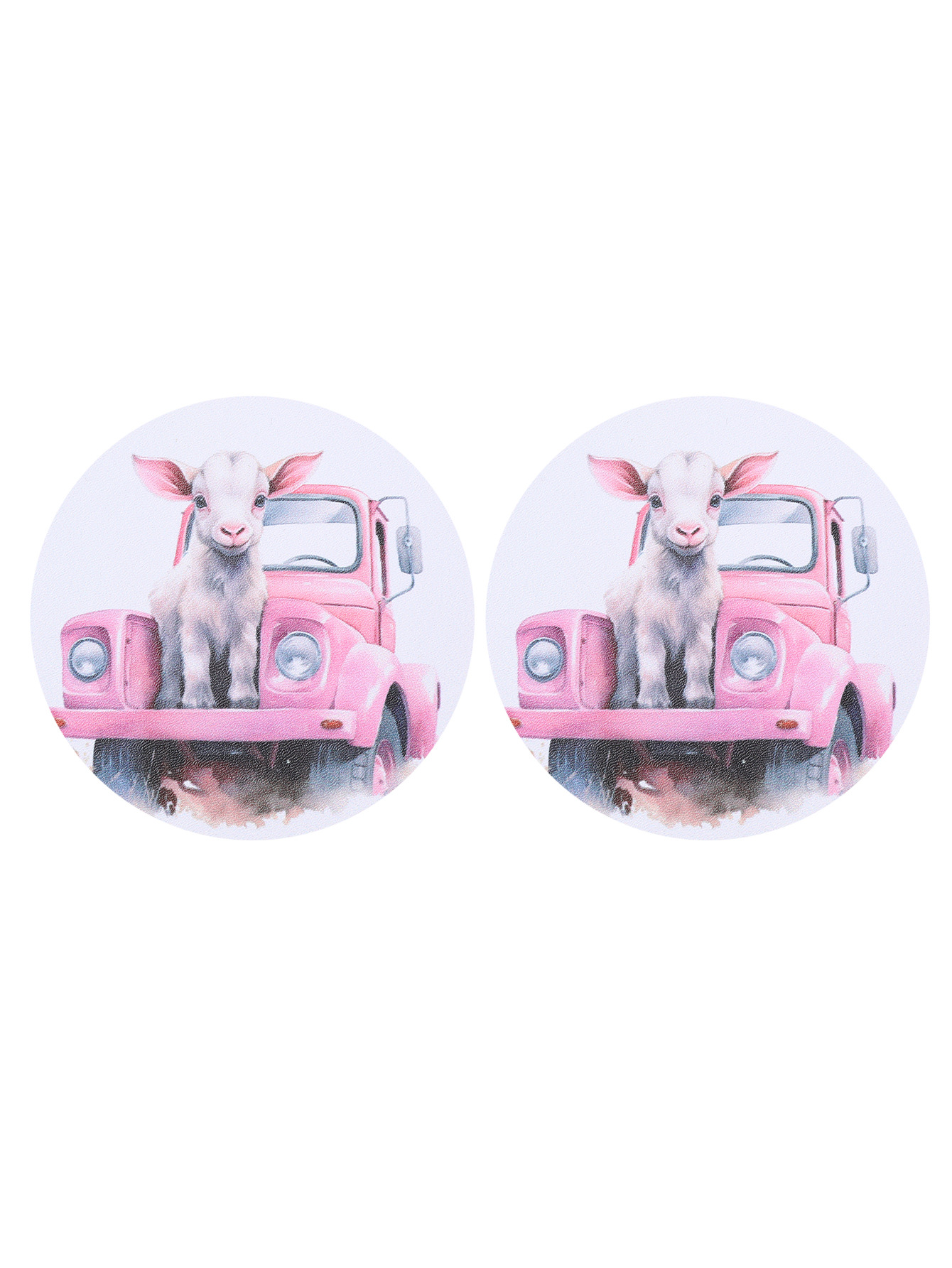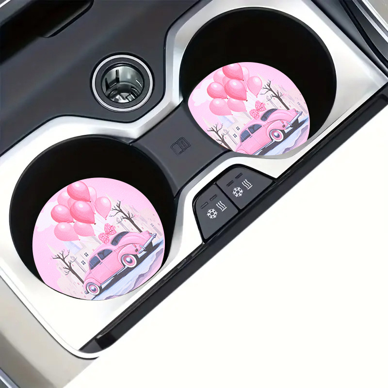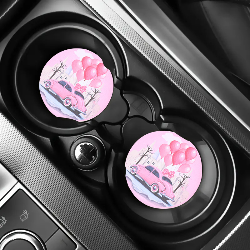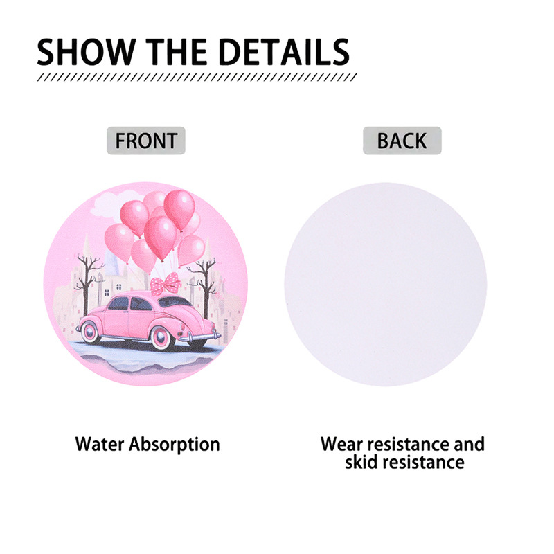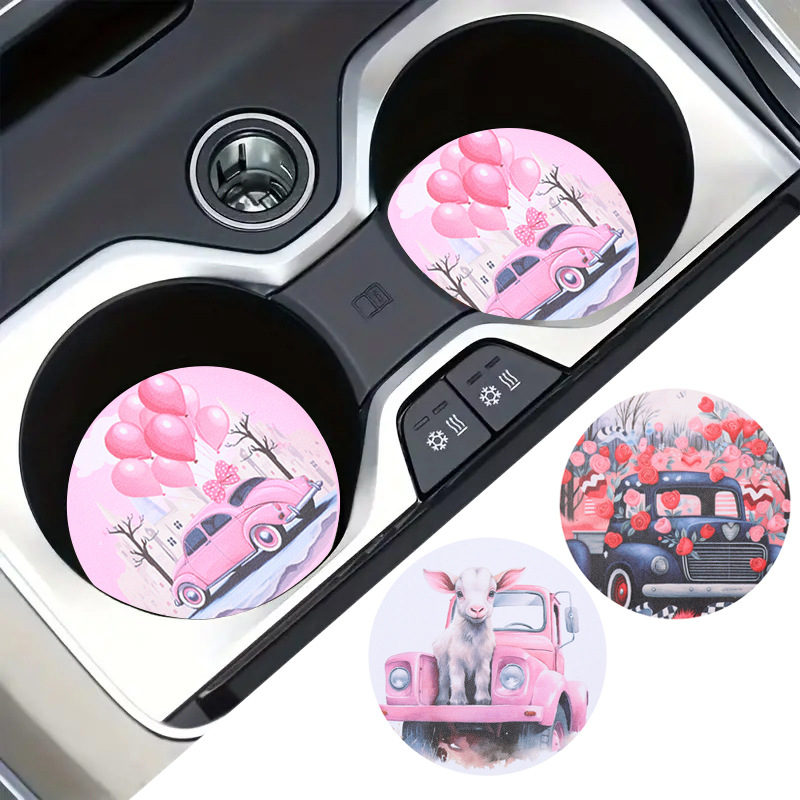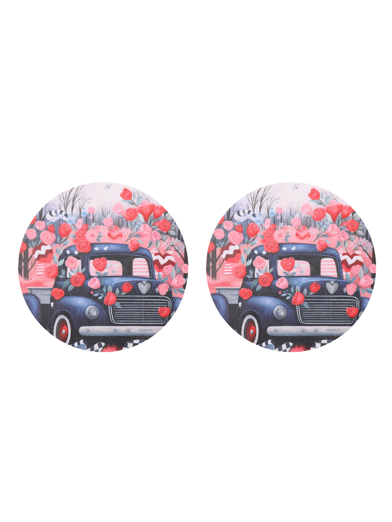 跨境情人节情侣款气球爱心汽车小羊图案皮革杯垫速卖通亚马逊
