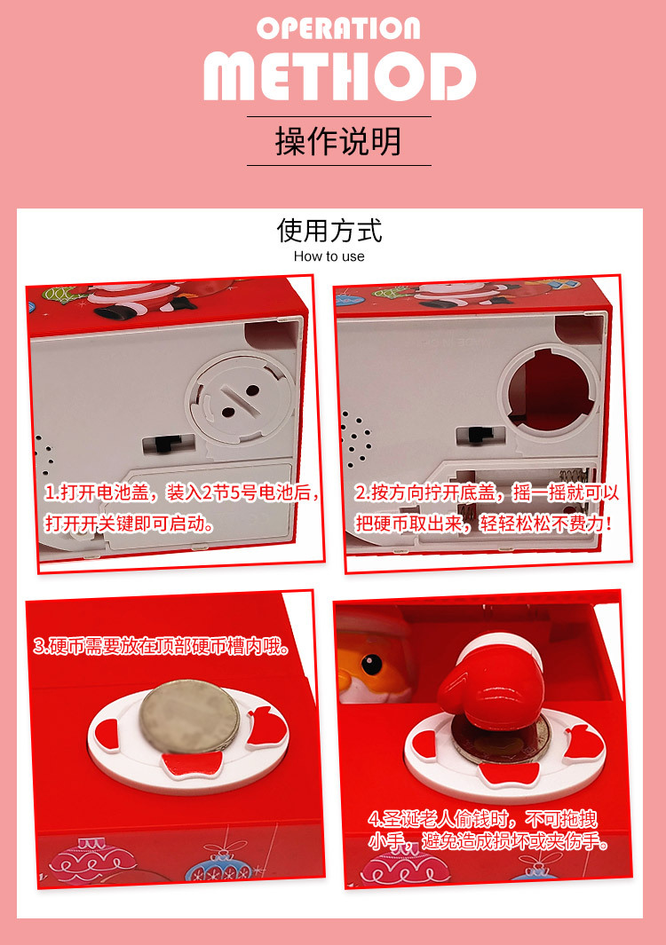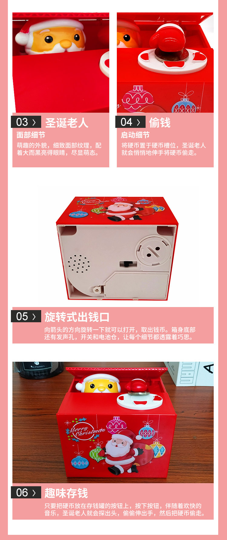 亚马逊偷钱圣诞老人存钱罐儿童卡通硬币圣诞节盒子音乐储蓄罐跨境