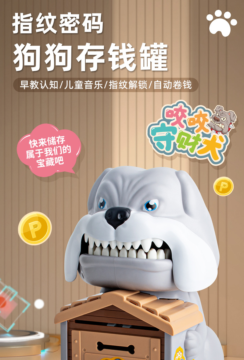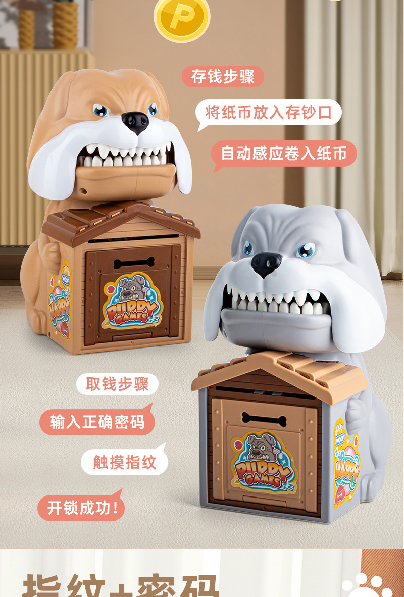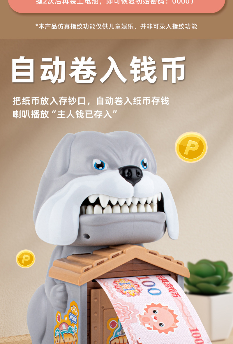 新款吃钱狗储蓄存钱罐电动卷币储蓄罐密码箱咬手恶犬儿童玩具礼物