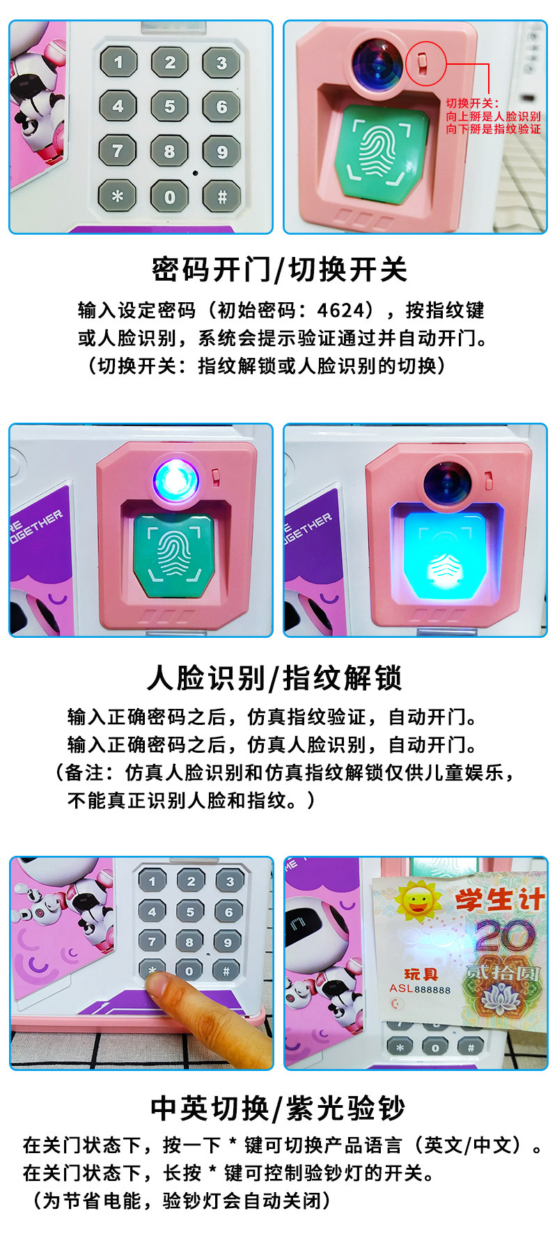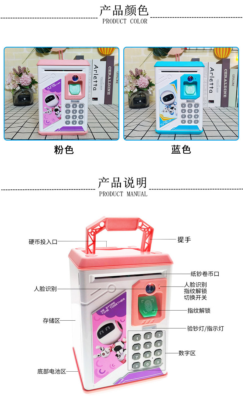 人脸识别atm语音可存可取储蓄罐儿童电动音乐卷币机器卫士存钱罐