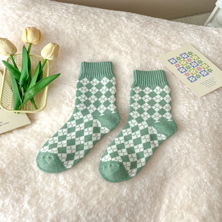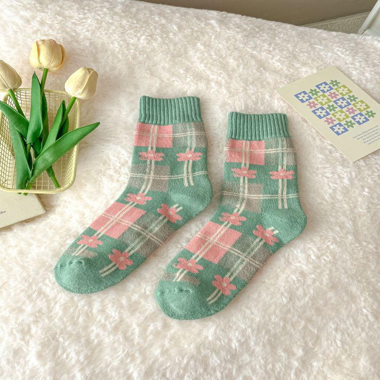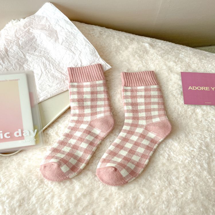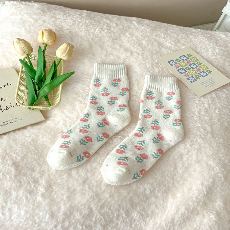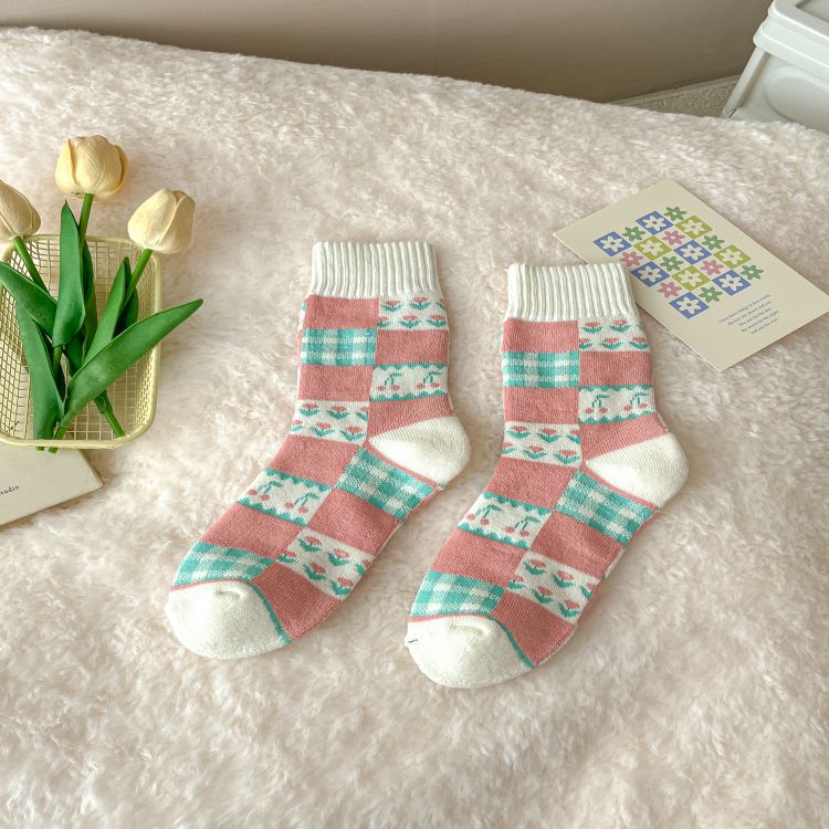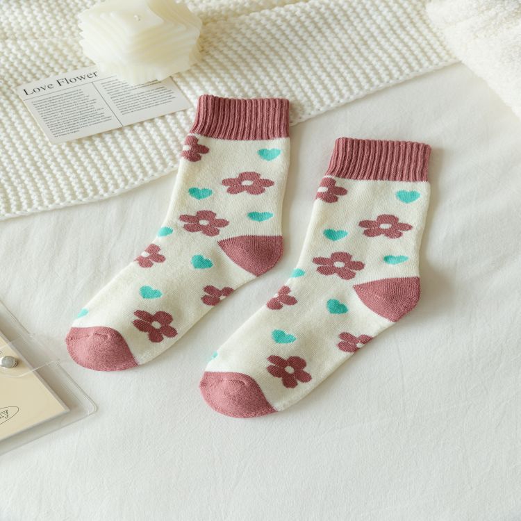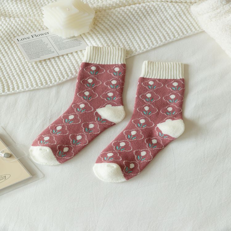 袜子女冬季新品加厚毛圈女袜保暖棉袜毛巾袜女士彩色系女中筒松罗