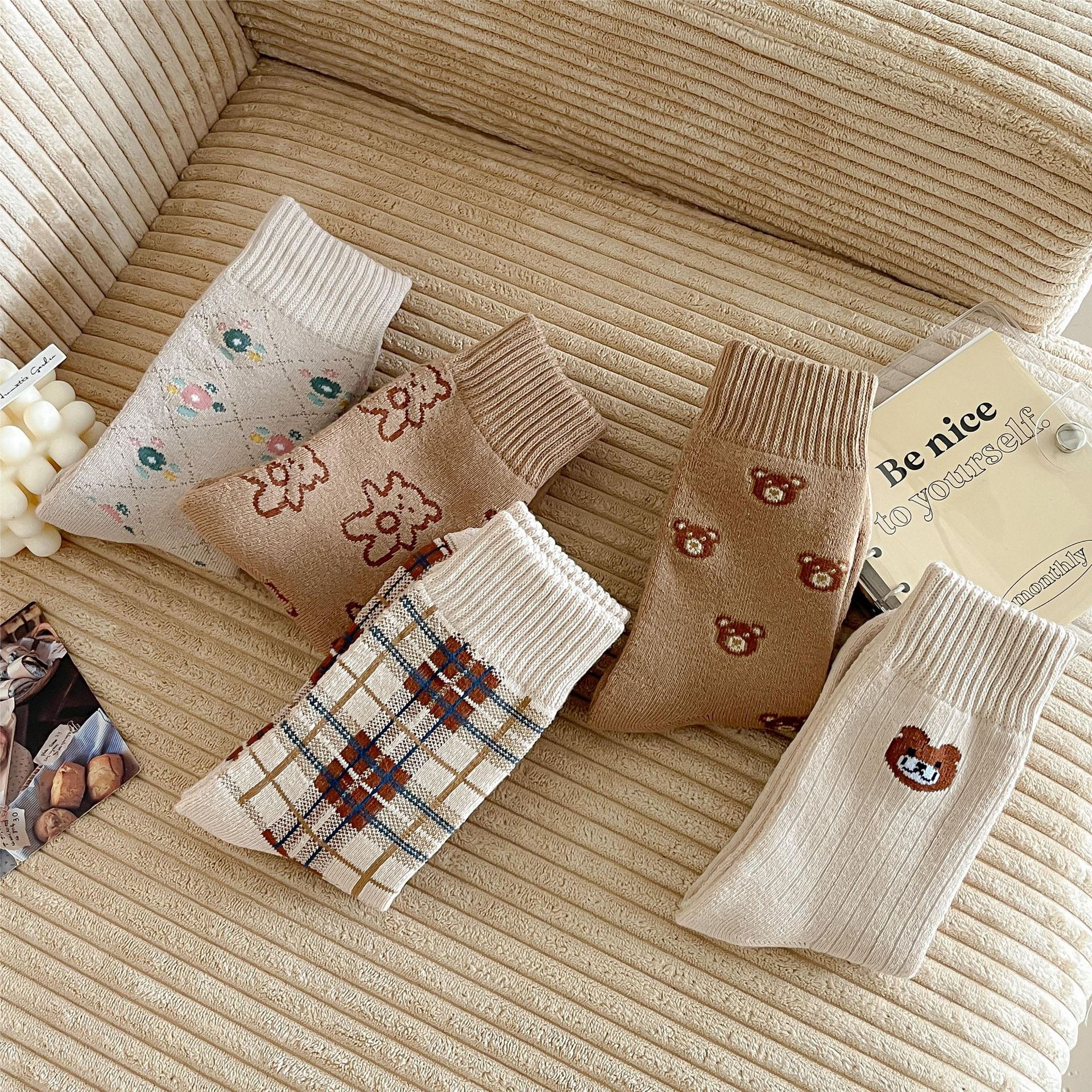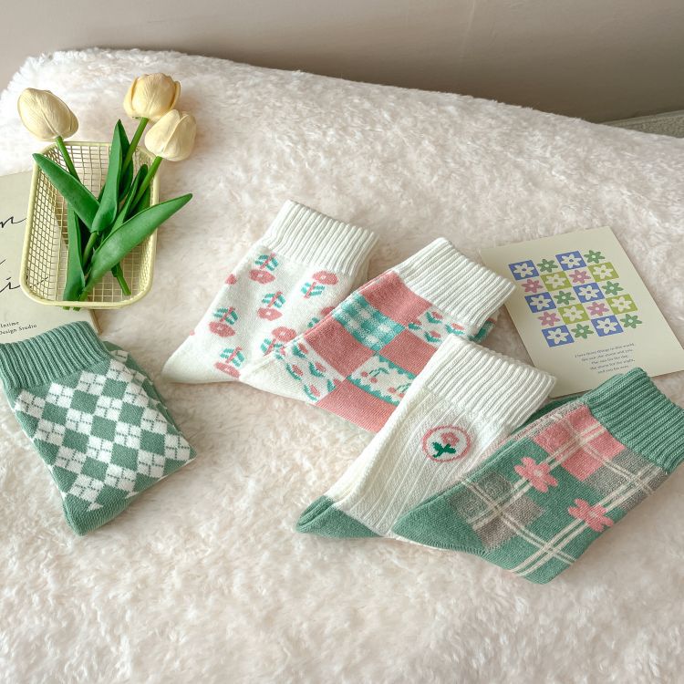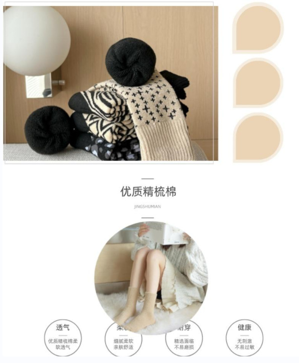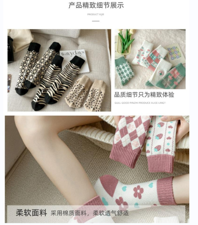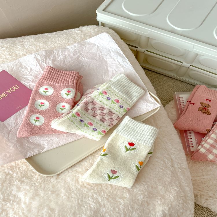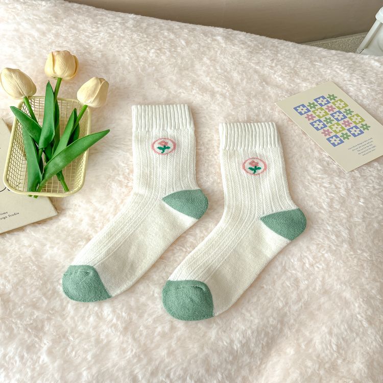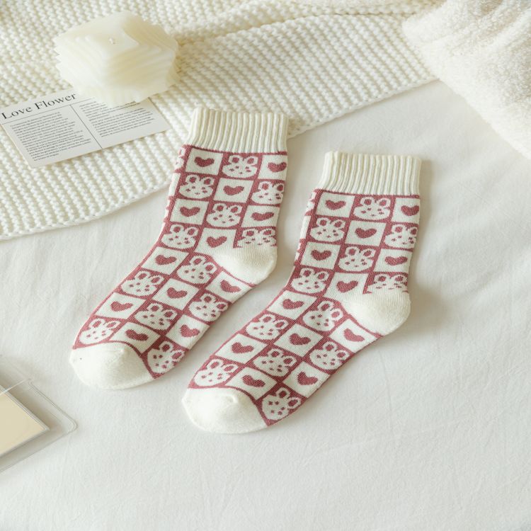 袜子女冬季新品加厚毛圈女袜保暖棉袜毛巾袜女士彩色系女中筒松罗