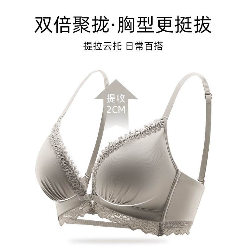 2023爆款前扣美背内衣小胸聚拢加厚平胸显大收副乳防下垂文胸罩女