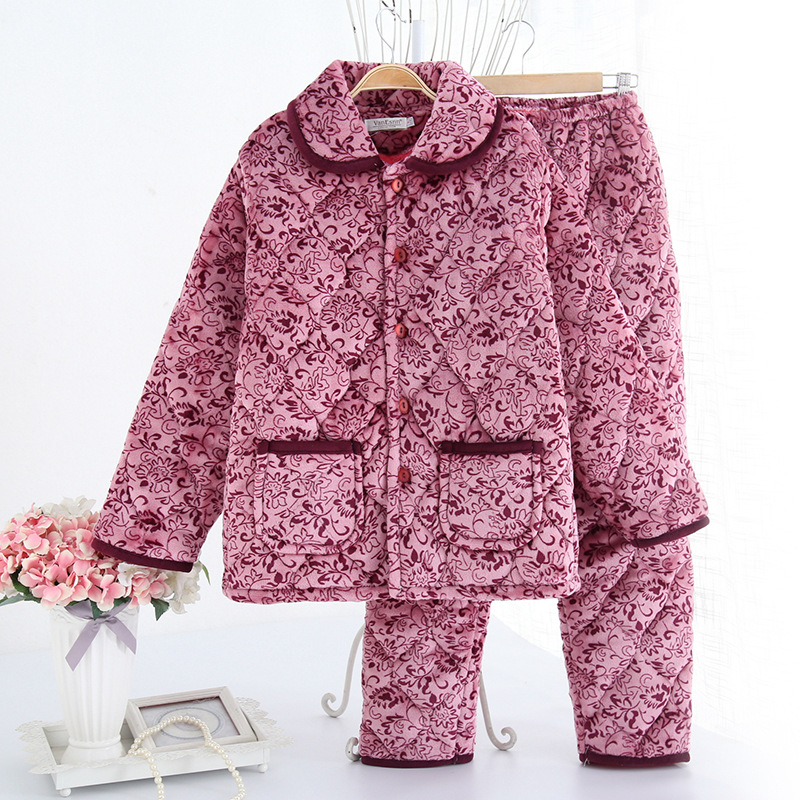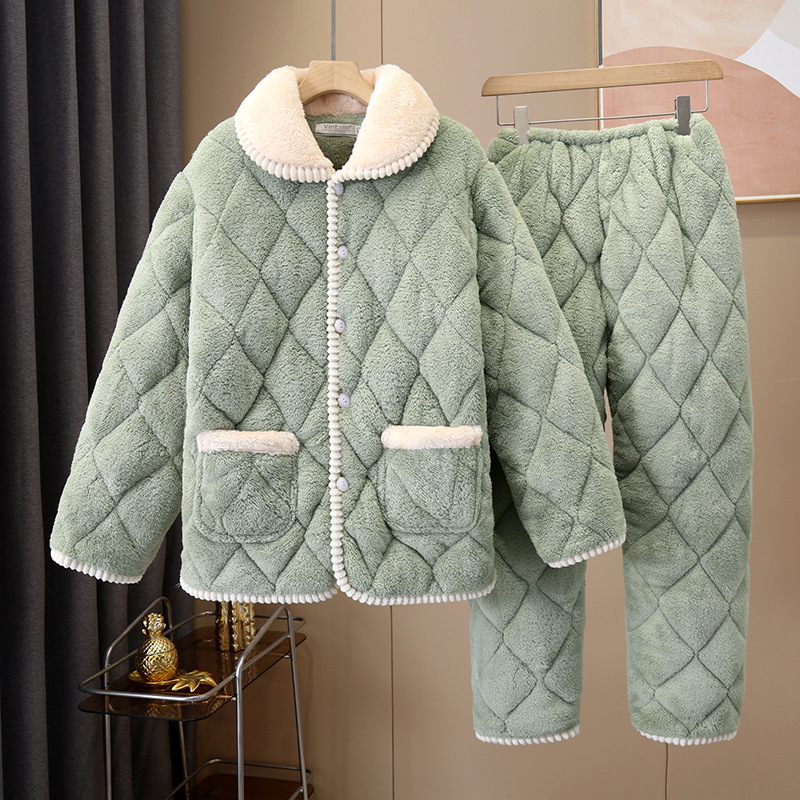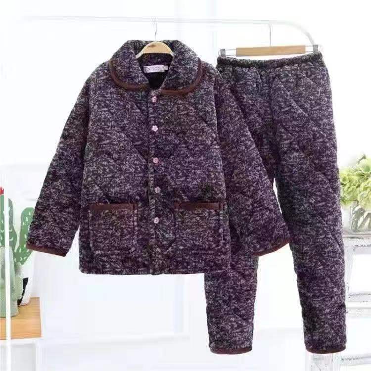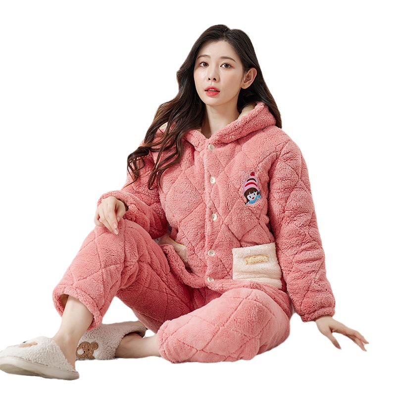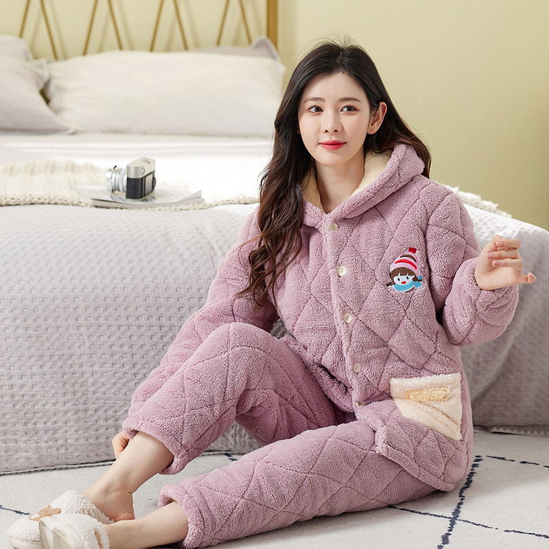 一件代发女士冬季睡衣三层加厚夹棉法兰绒保暖加绒珊瑚绒棉衣棉袄