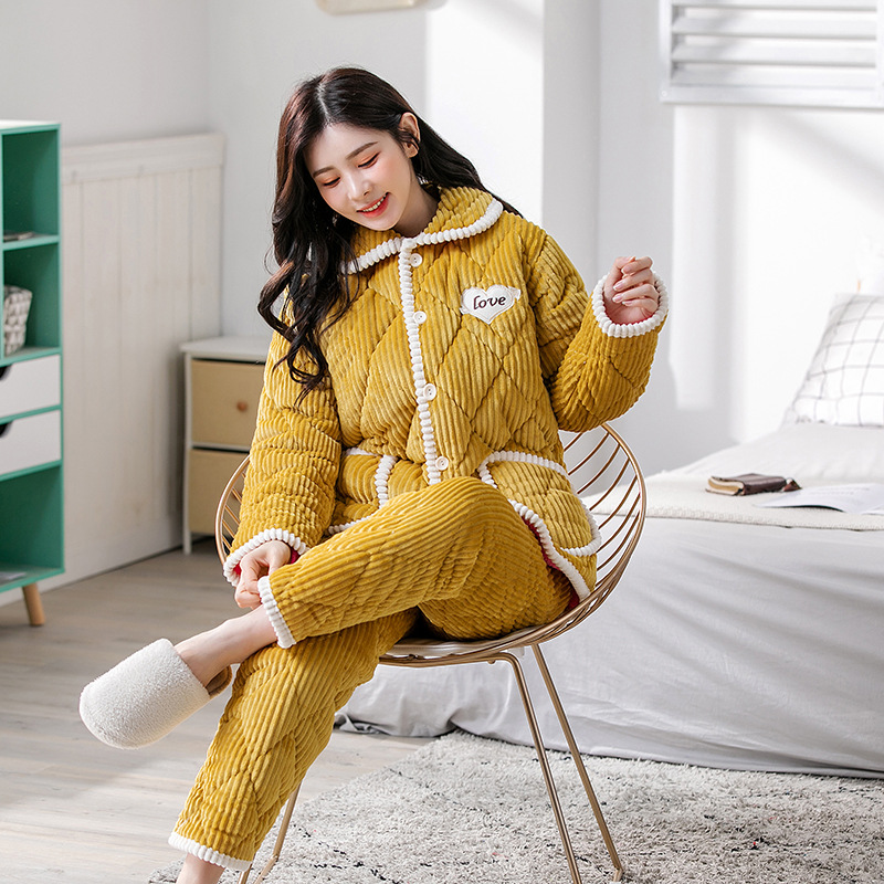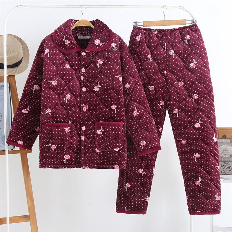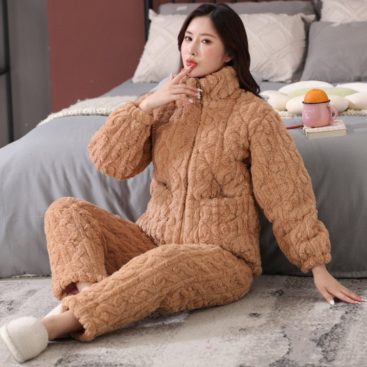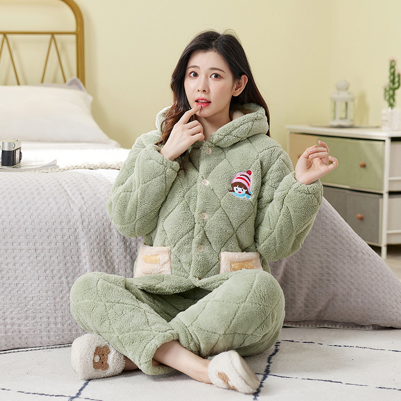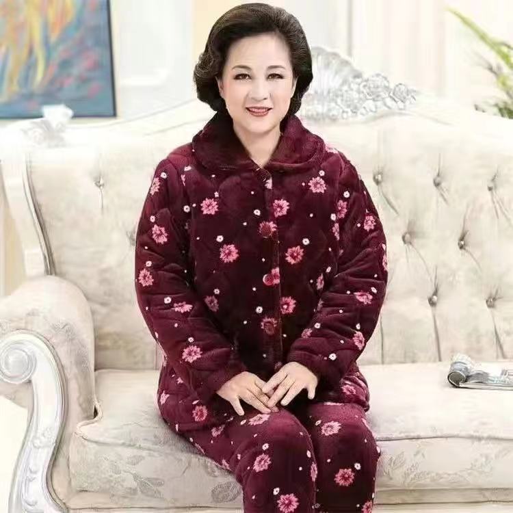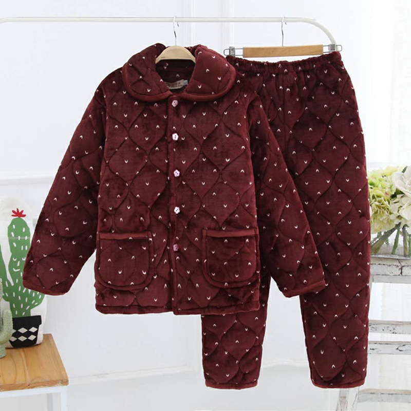 一件代发女士冬季睡衣三层加厚夹棉法兰绒保暖加绒珊瑚绒棉衣棉袄