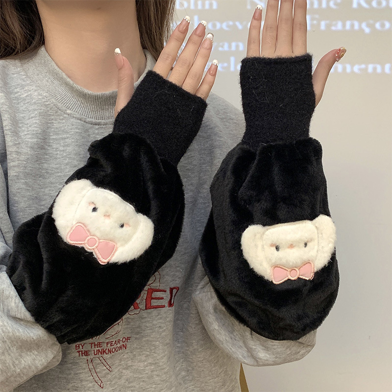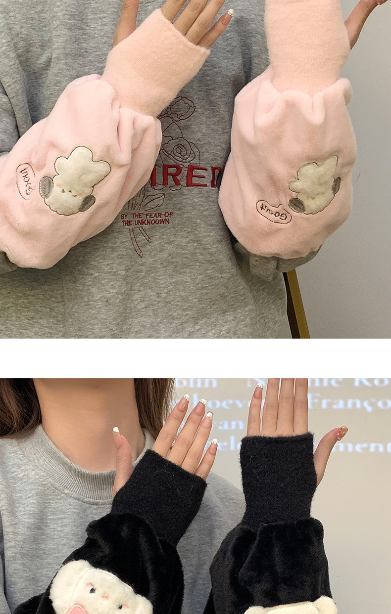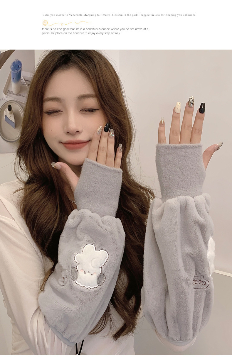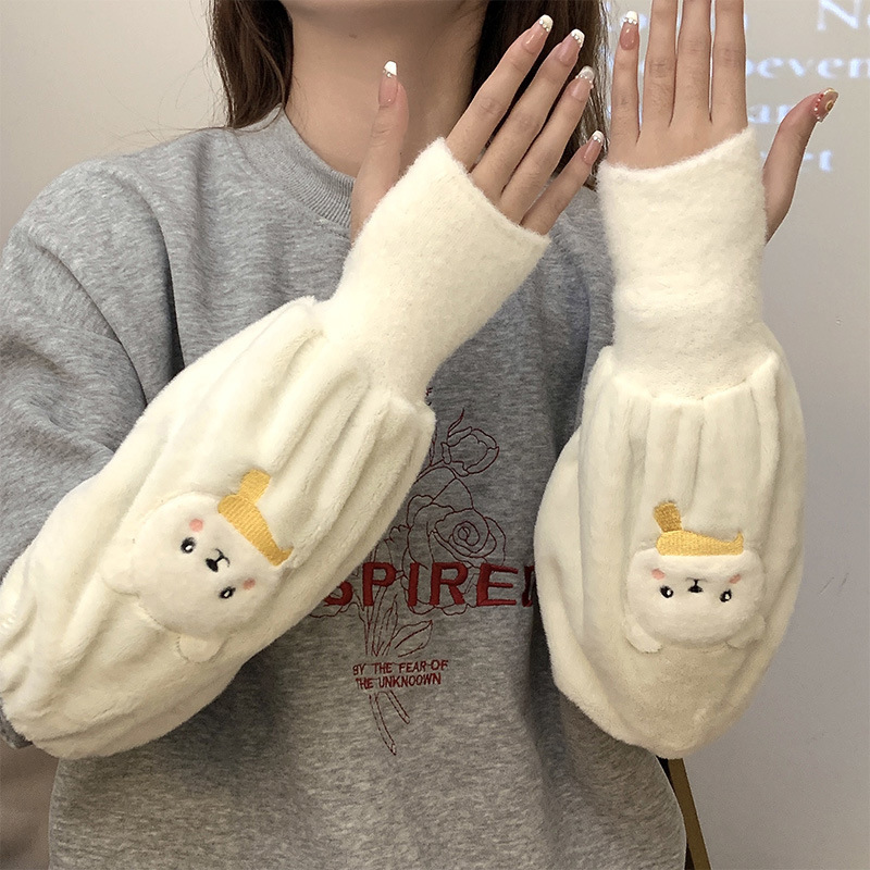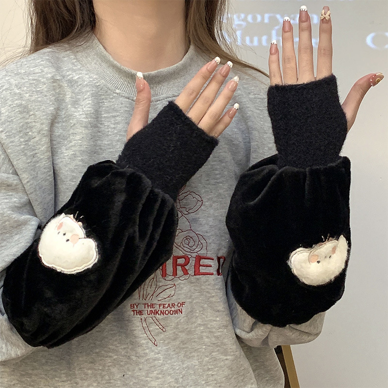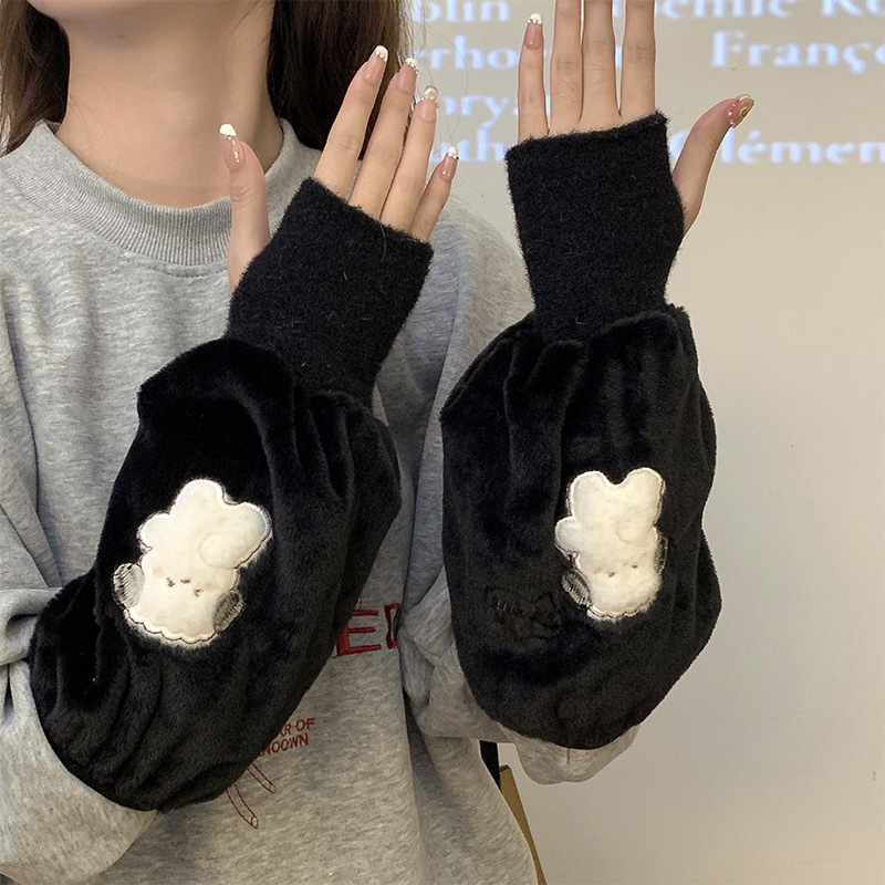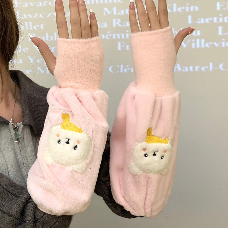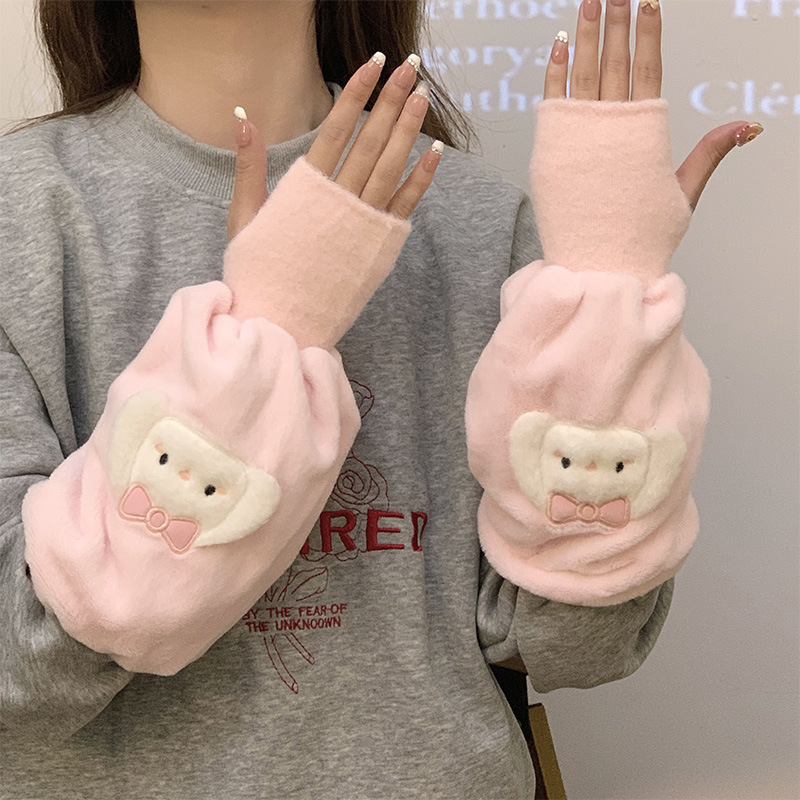 袖套手套二合一秋冬毛绒保暖套袖耐脏学生卡通暖手护袖女新款袖头