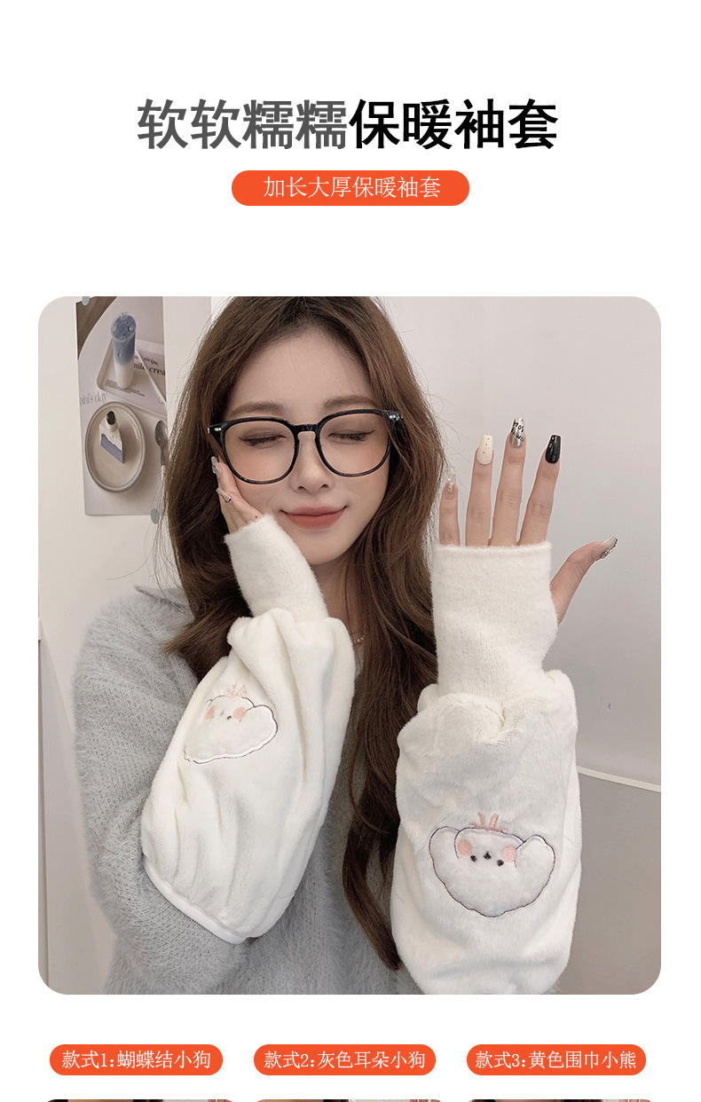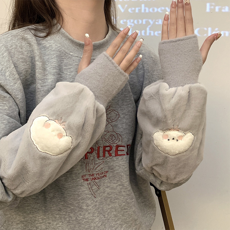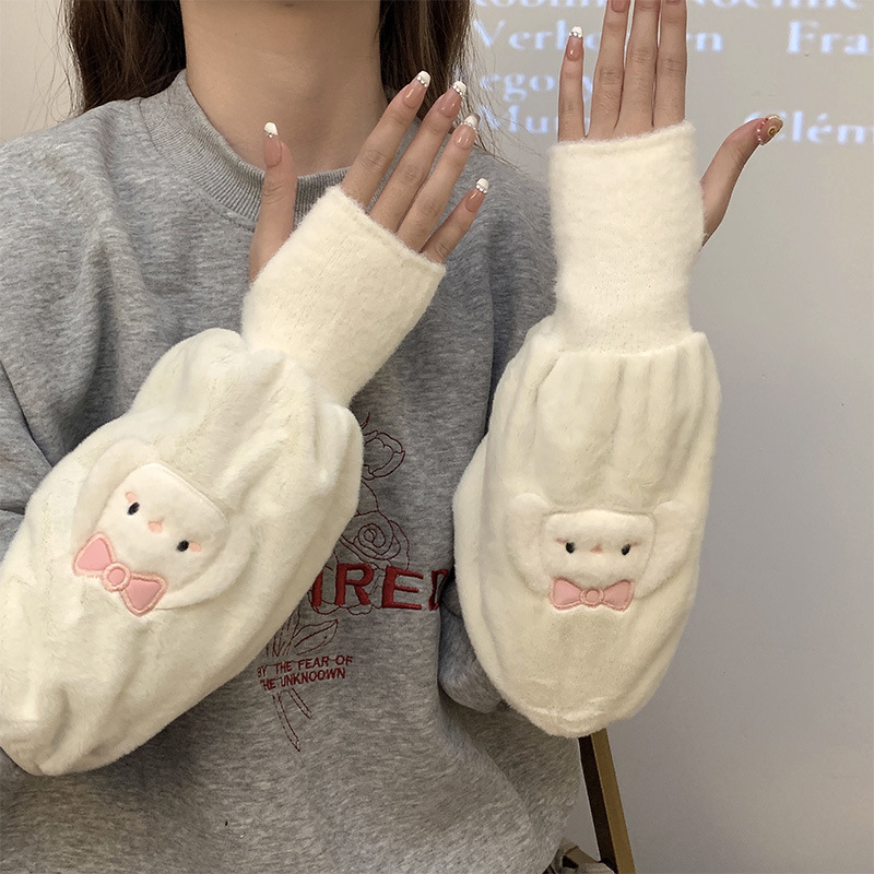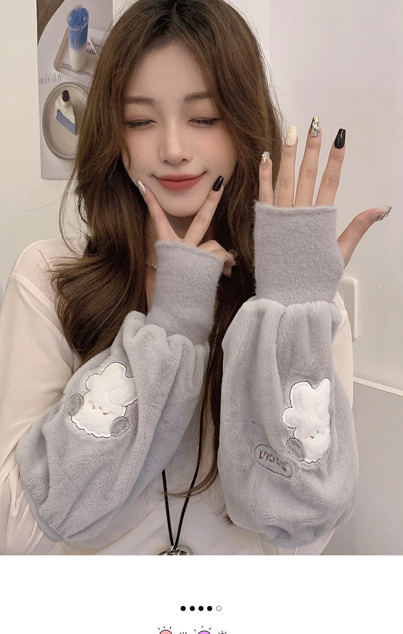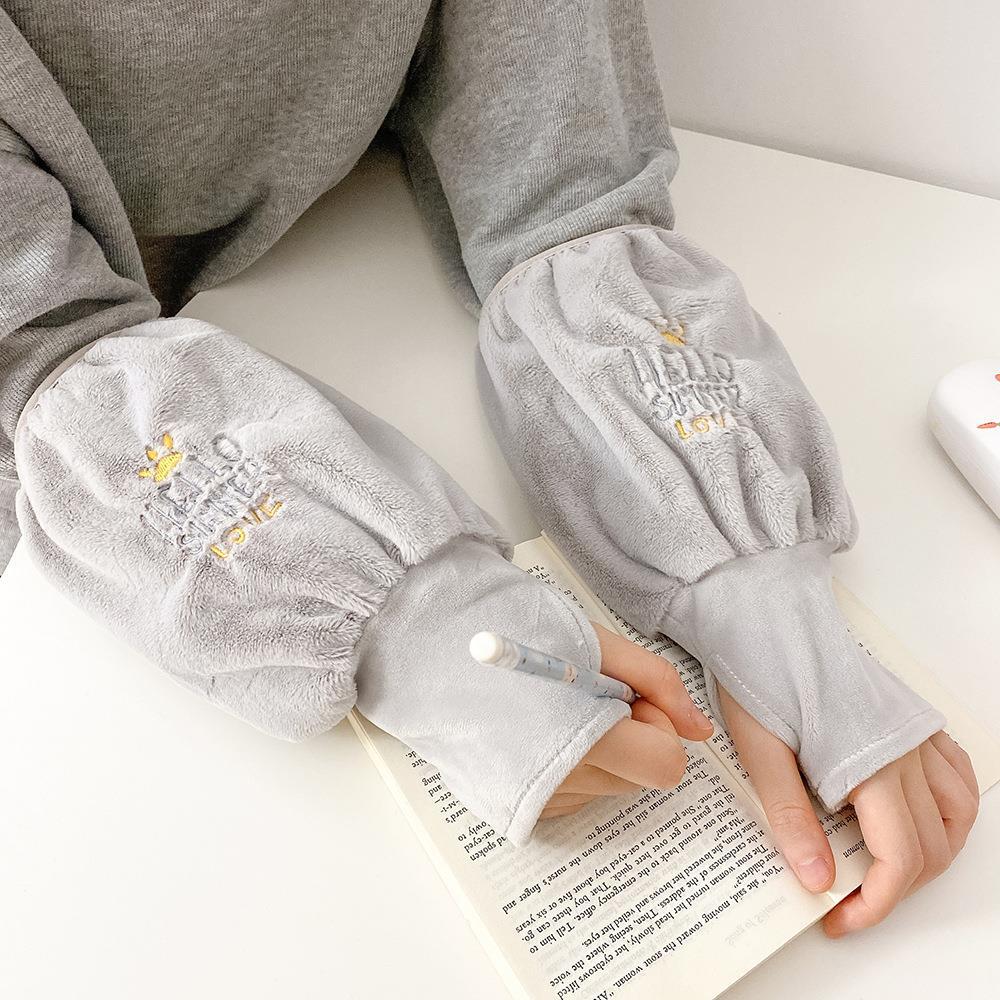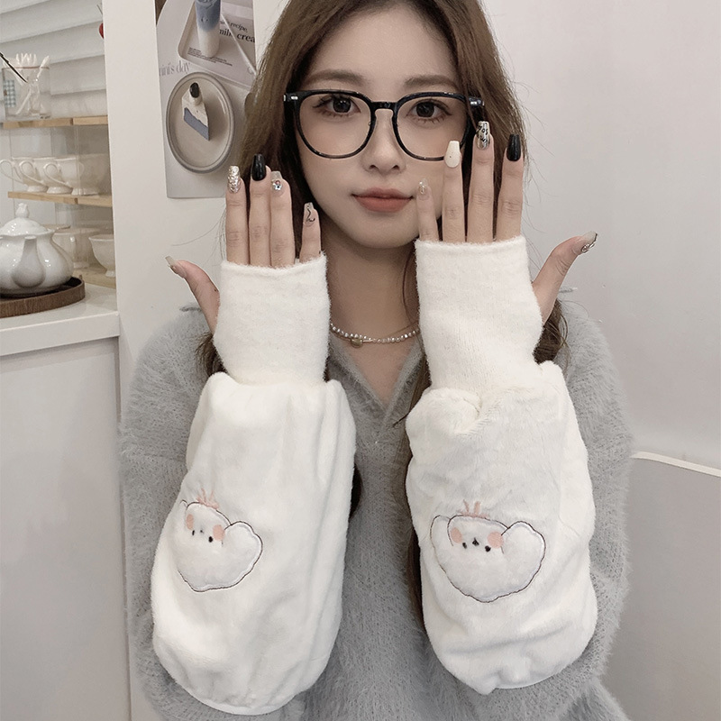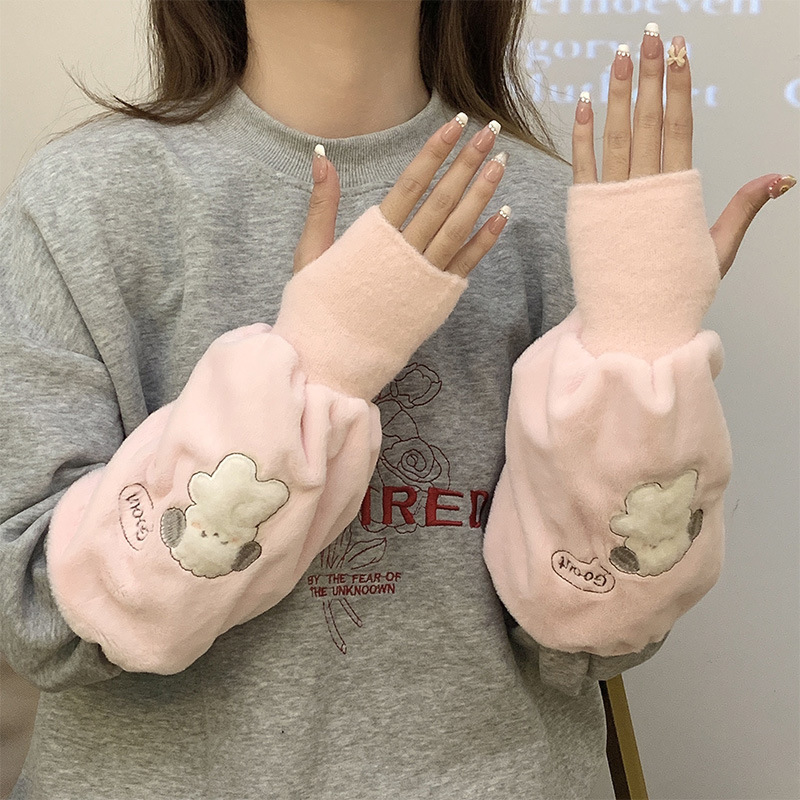 袖套手套二合一秋冬毛绒保暖套袖耐脏学生卡通暖手护袖女新款袖头