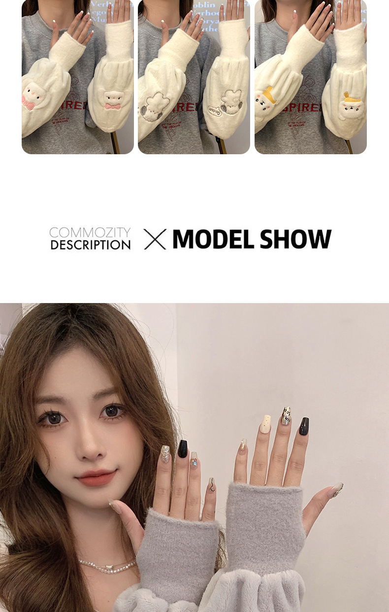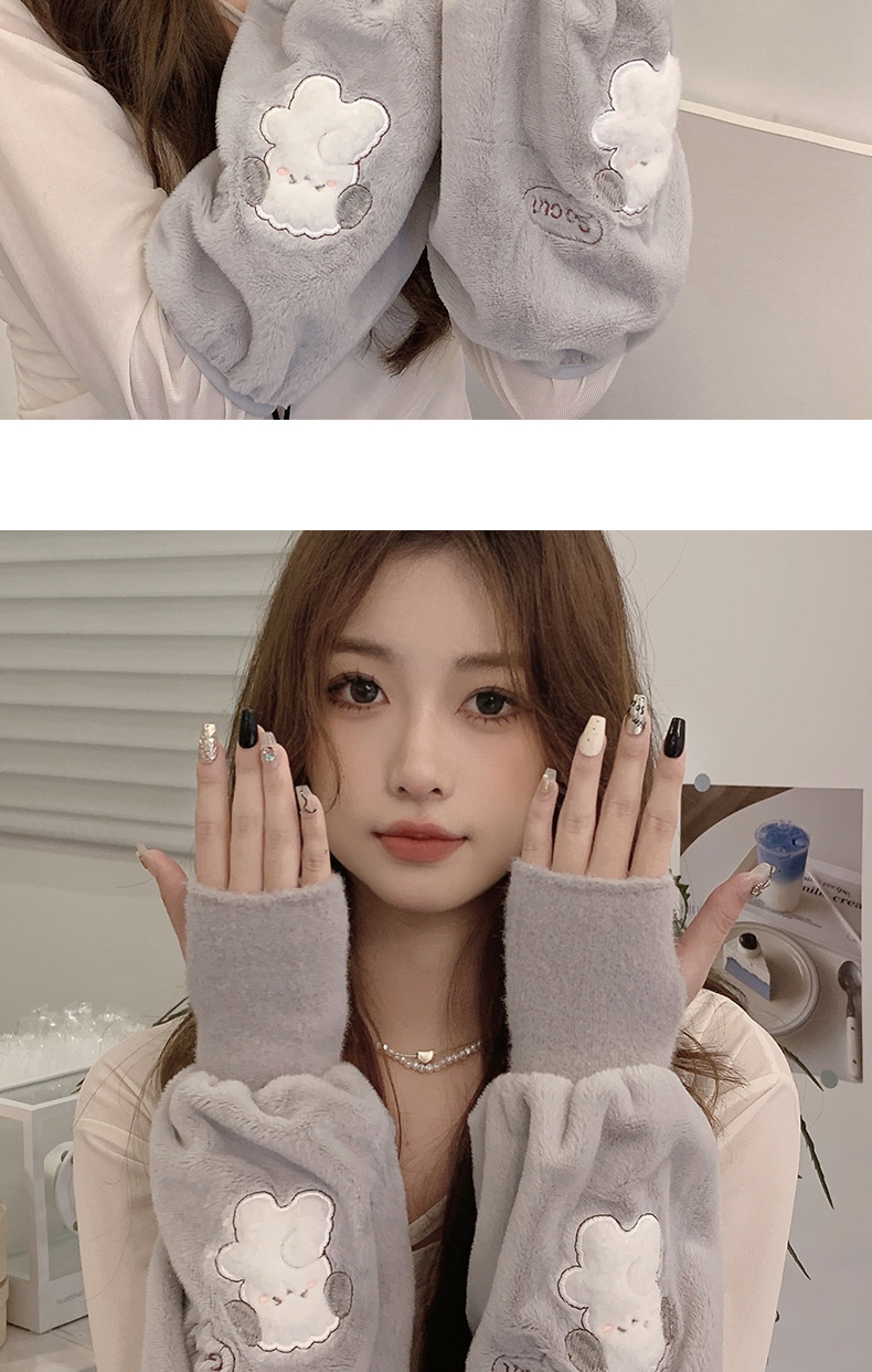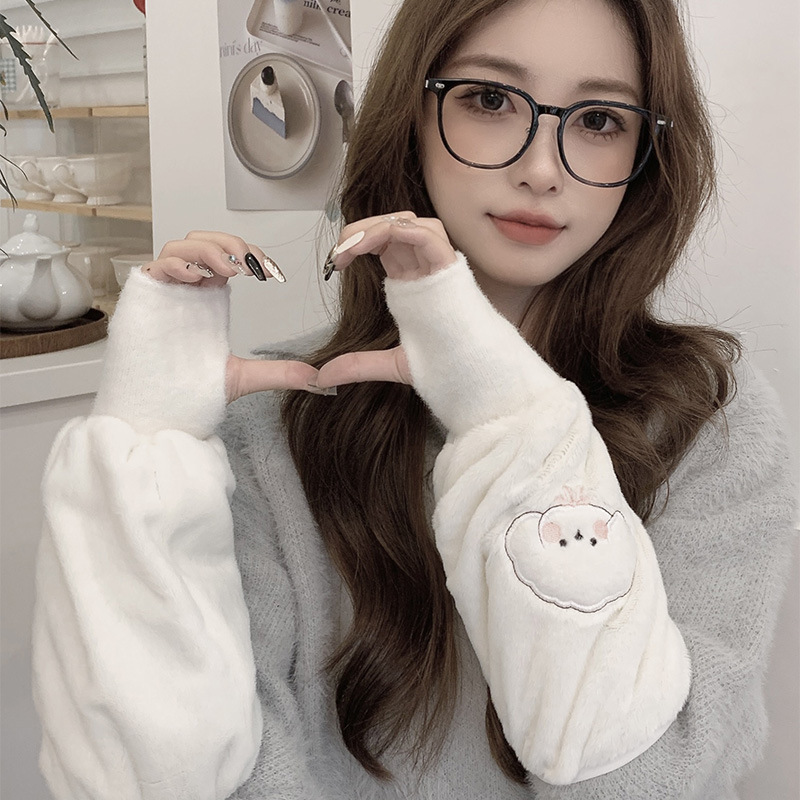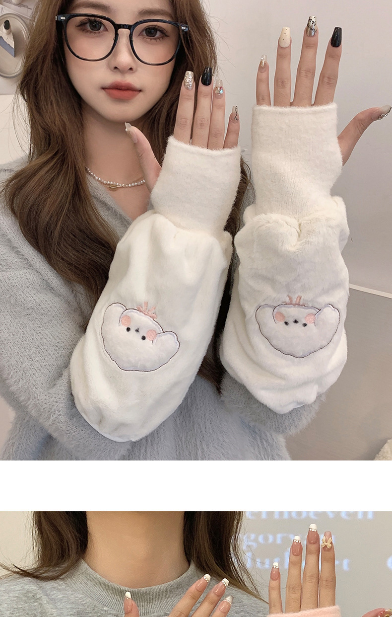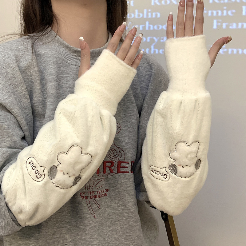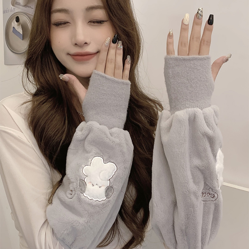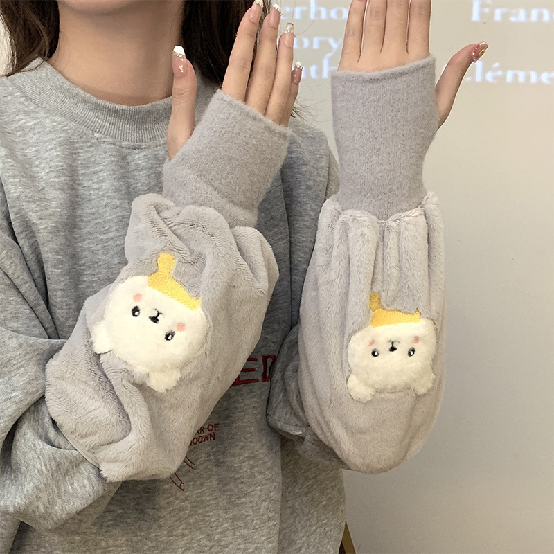 袖套手套二合一秋冬毛绒保暖套袖耐脏学生卡通暖手护袖女新款袖头