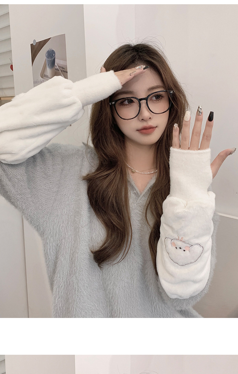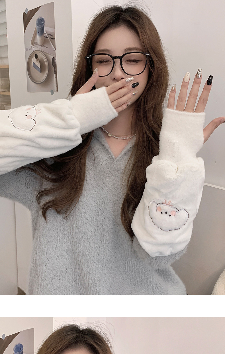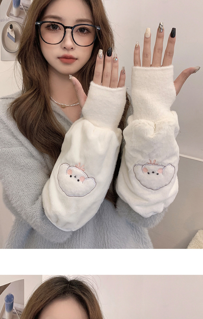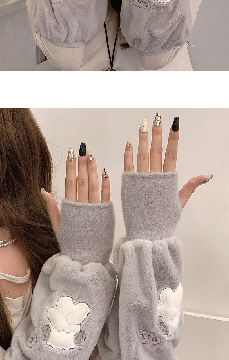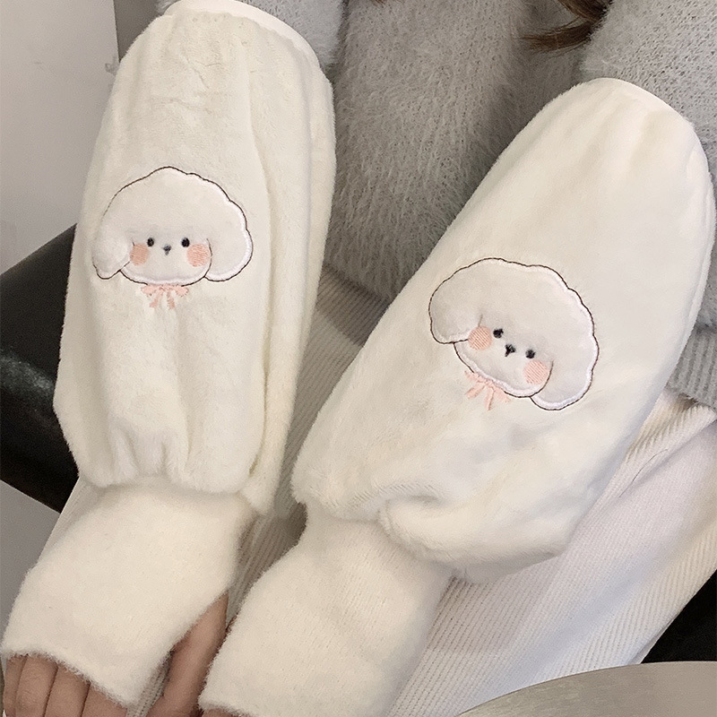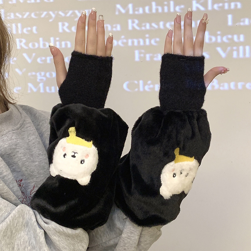 袖套手套二合一秋冬毛绒保暖套袖耐脏学生卡通暖手护袖女新款袖头