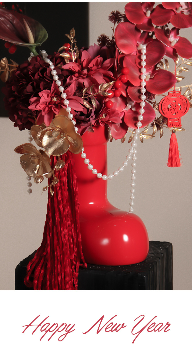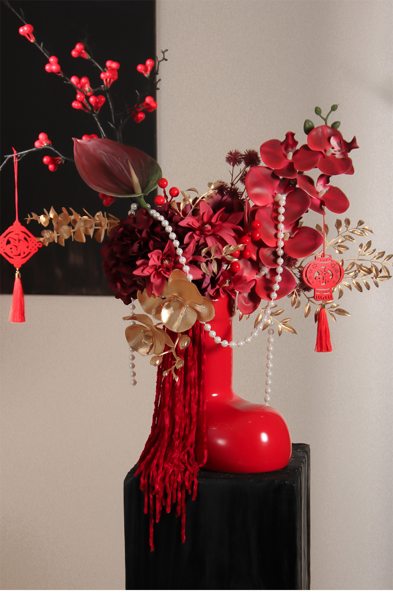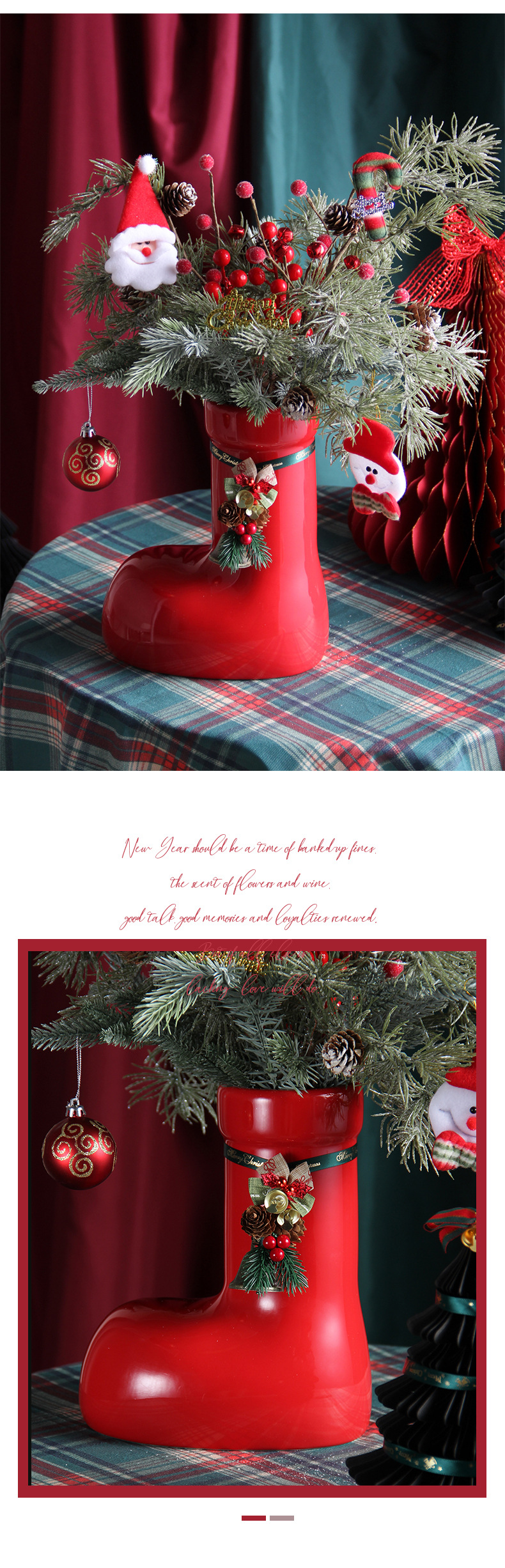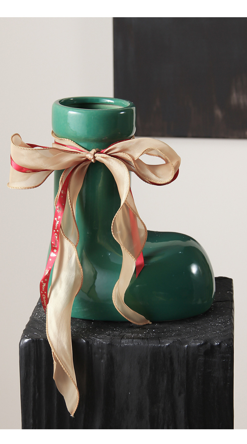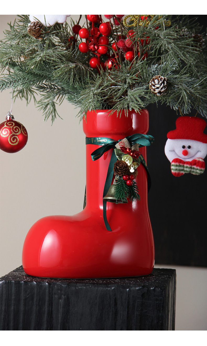 红鞋子陶瓷花瓶高级感ins风高颜值红色插花瓶简约摆件圣诞节礼物