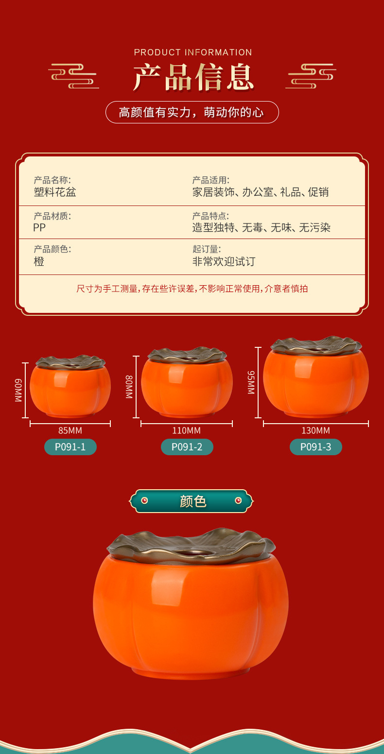 红果发财果盆栽柿子装饰花瓶喜庆柿柿如意盆新中式新年塑料花盆