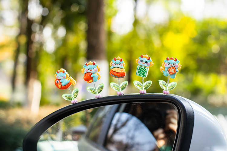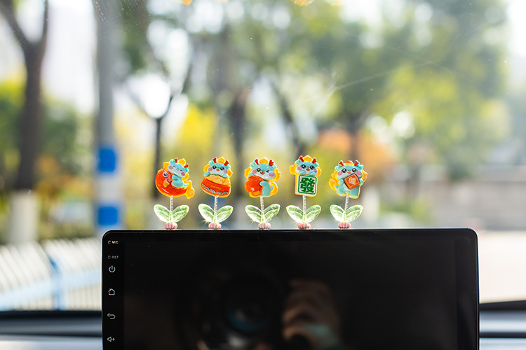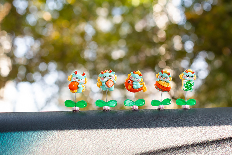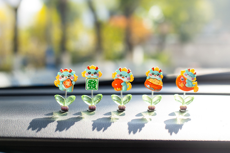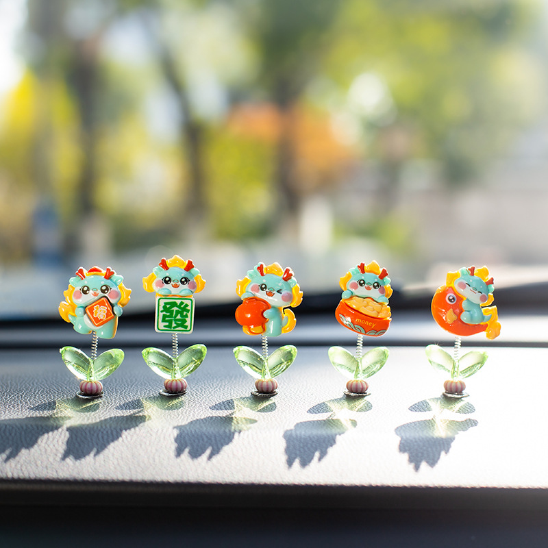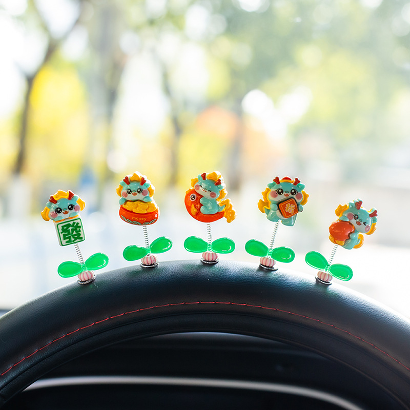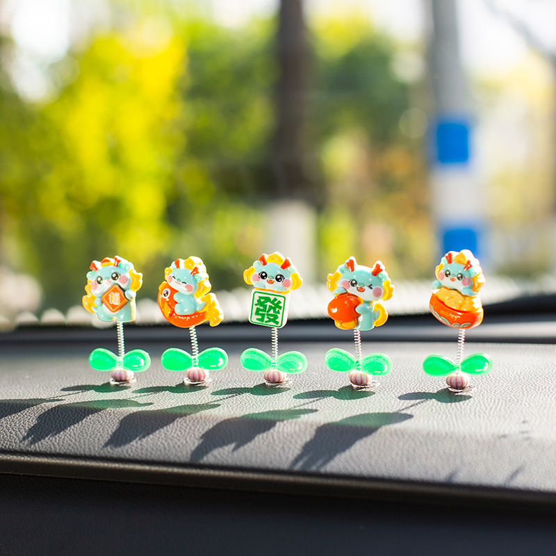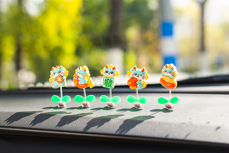 汽车摇头小摆件创意喜庆小青龙车载中控台太阳花可爱装饰品女生