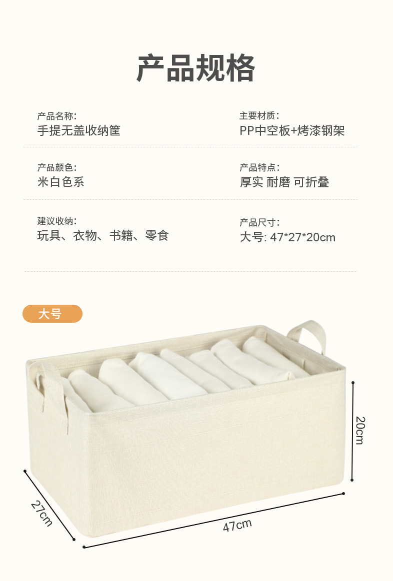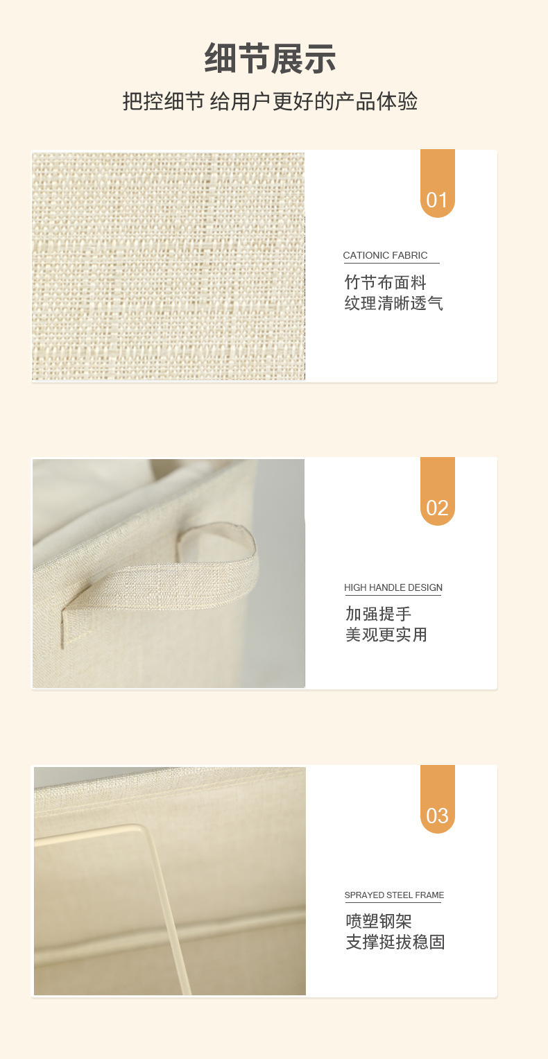 竹节棉钢架收纳盒pp板整理箱衣物杂物储物箱可水洗收纳盒子批发
