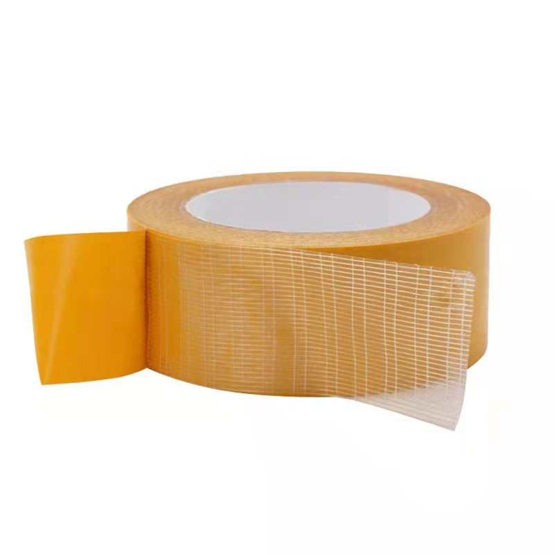 外贸批发网格纤维双面胶防水皮革面料黄色高粘度双面网格纤维胶带