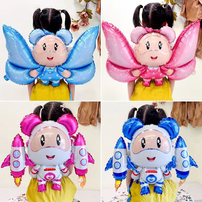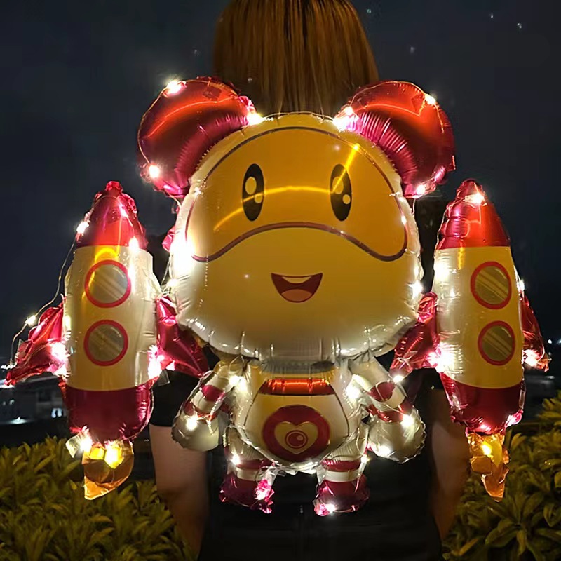 发光充气星际熊翅膀气球闪光背饰气球夜市摆摊地推卡通铝膜气球