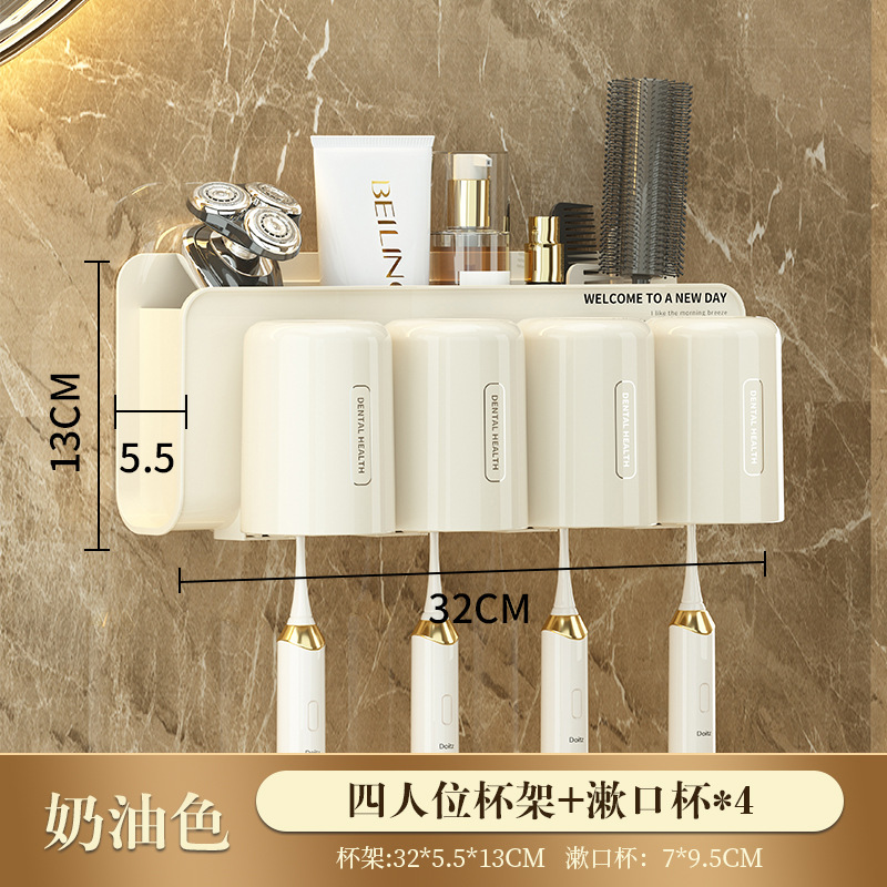 牙刷架子置物架免打孔壁挂式漱口刷牙杯子浴室卫生间洗漱台收纳盒