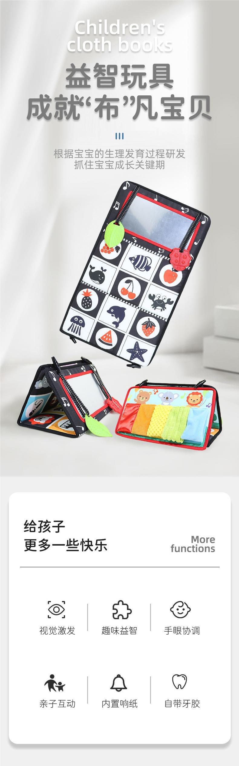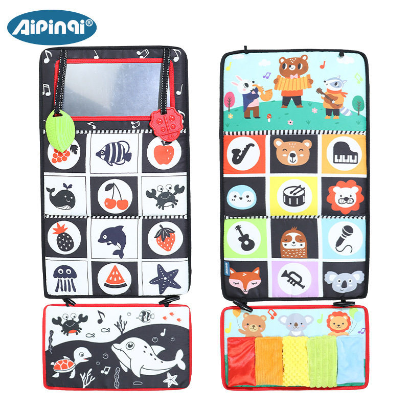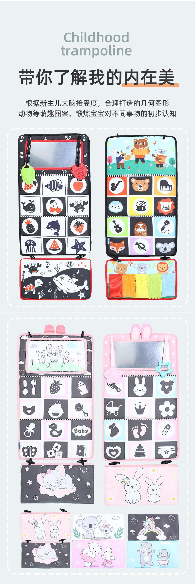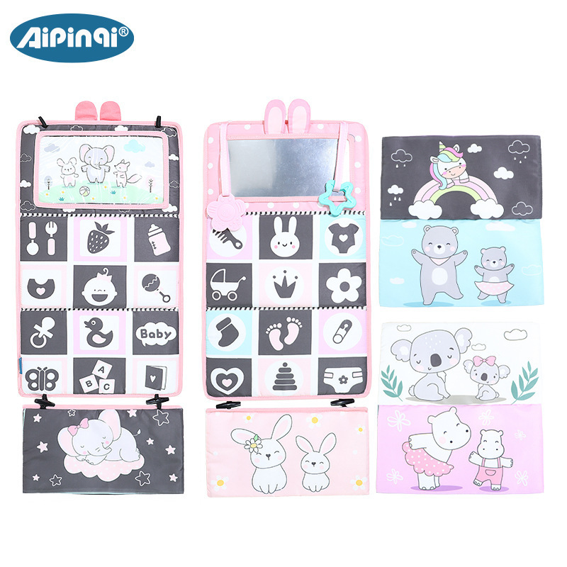 哈哈镜布书汽车挂件折叠抬头训练宝宝认知色彩婴幼儿床围早教布书