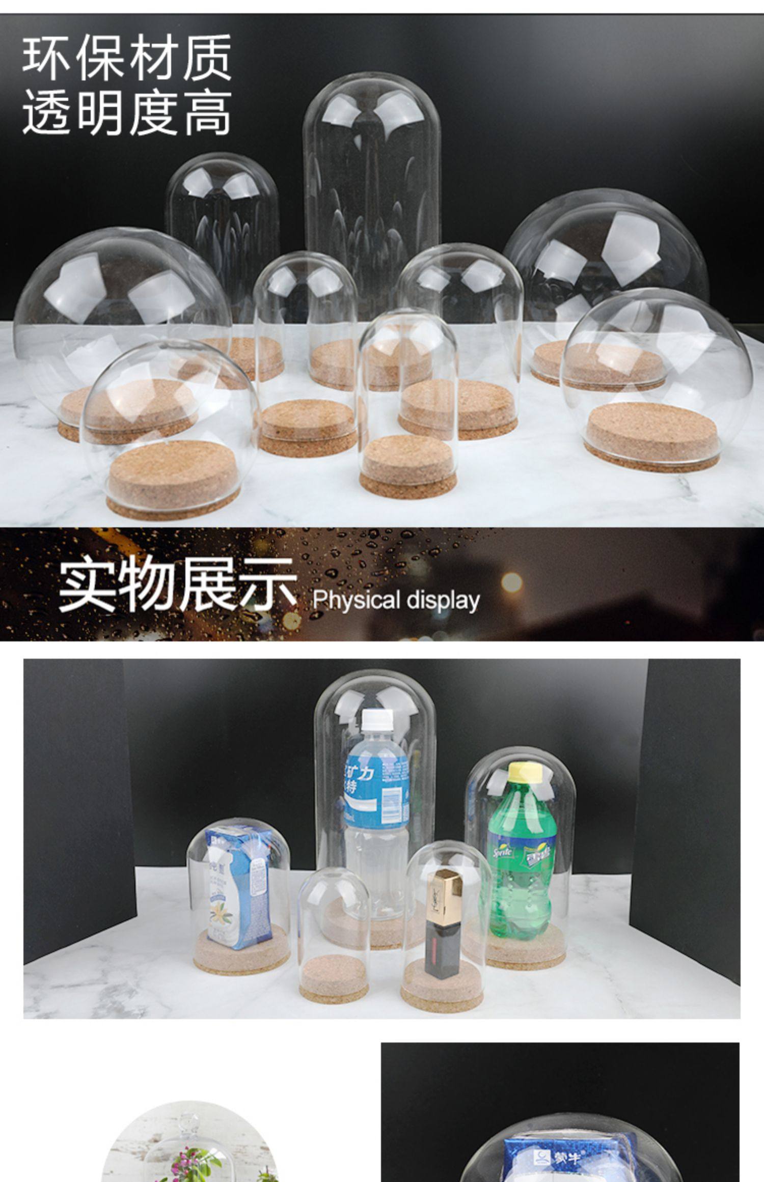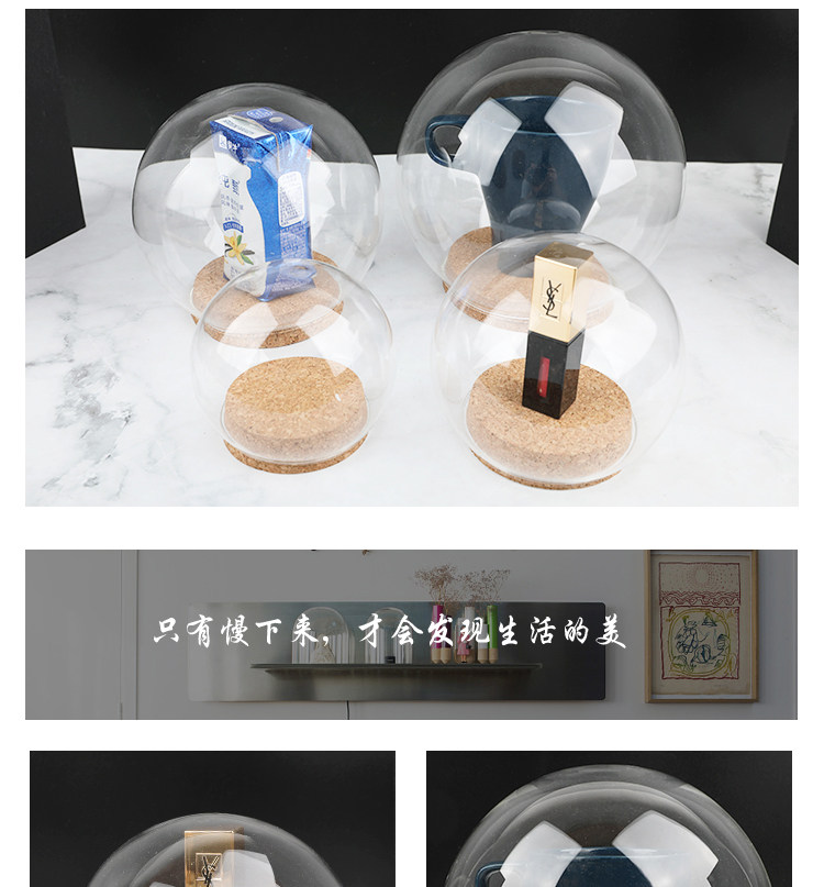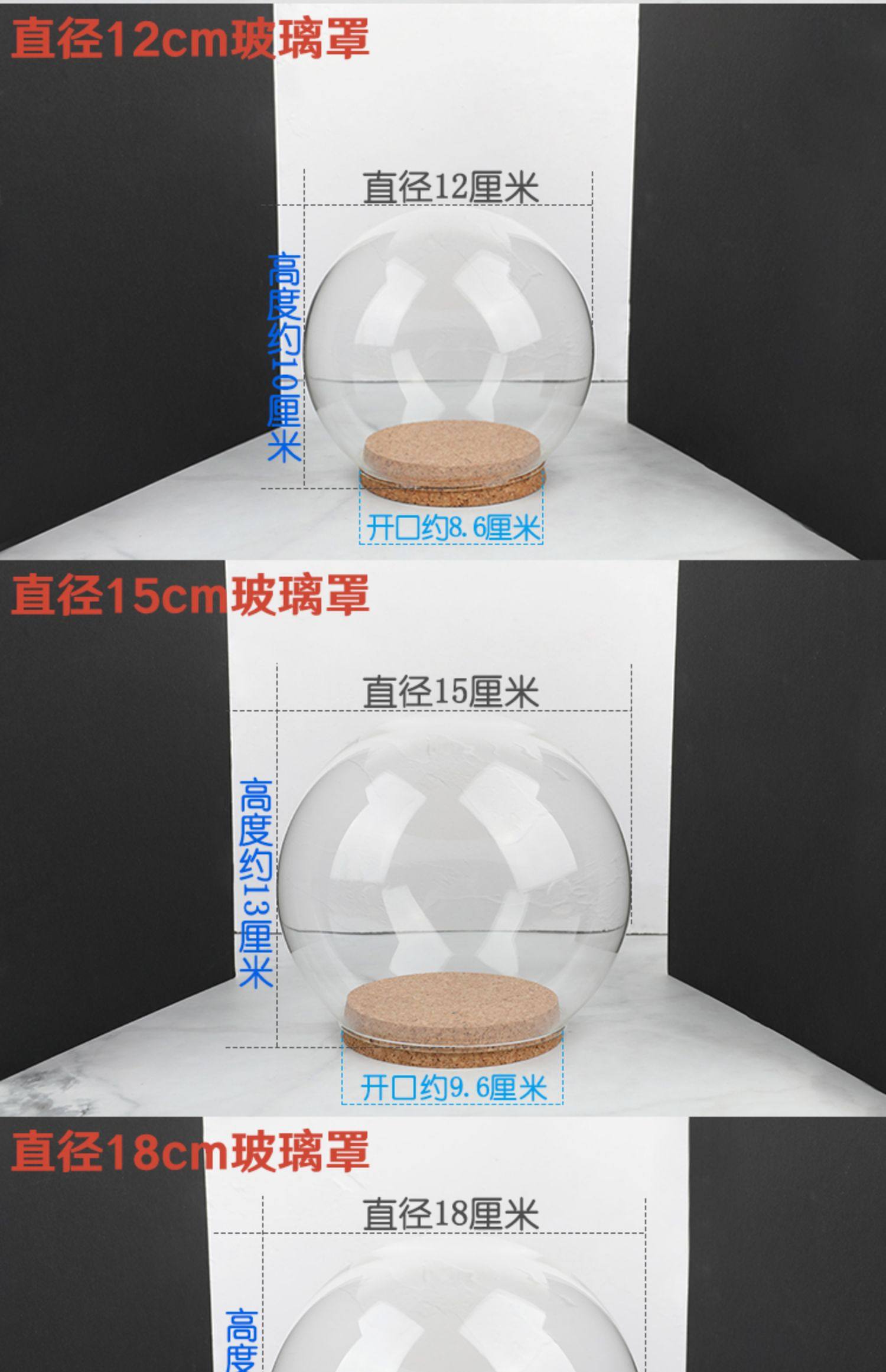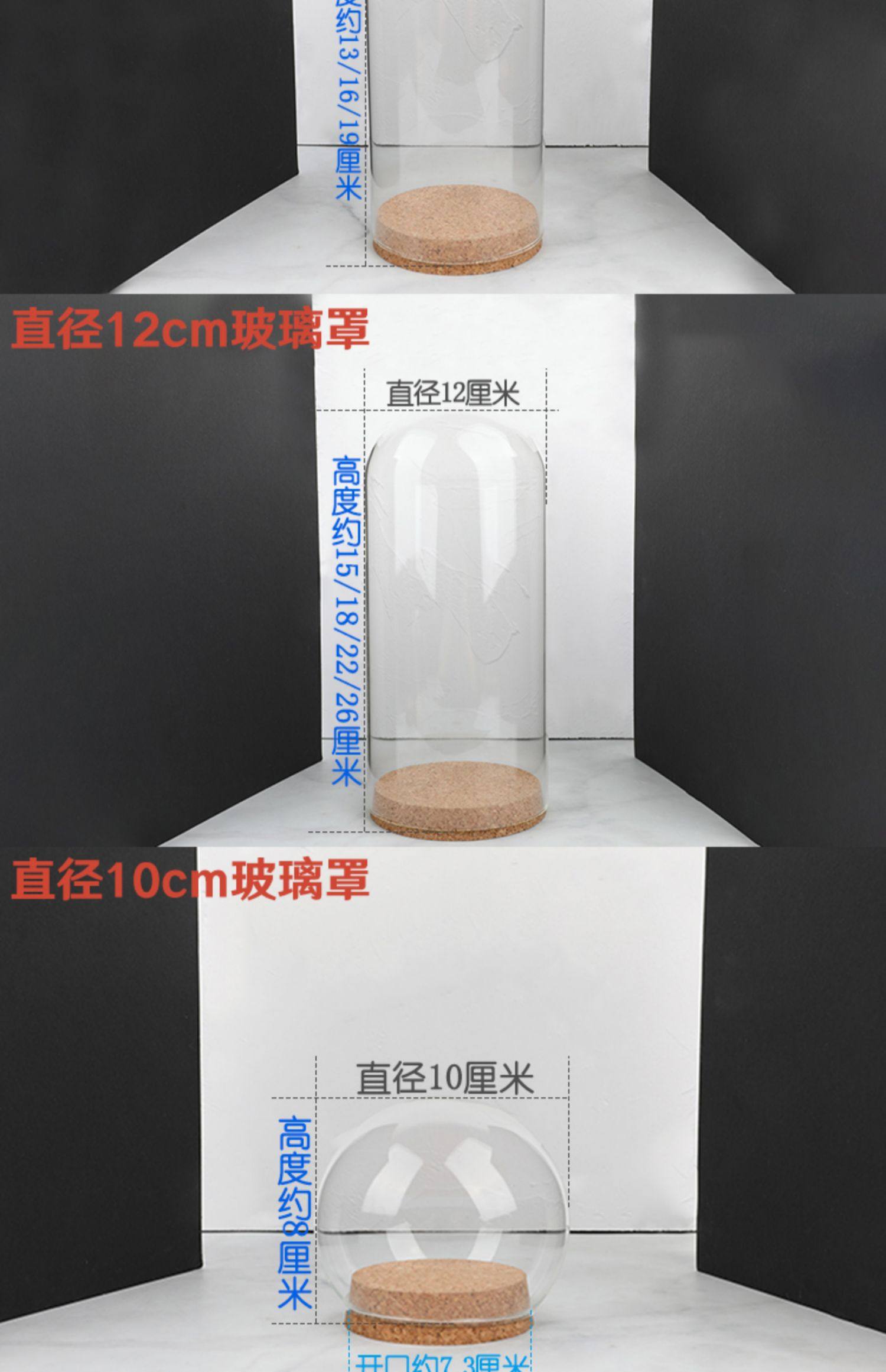 花玻璃罩展示盒创意防尘罩摆件软木塞玻璃罩3石膏手模
